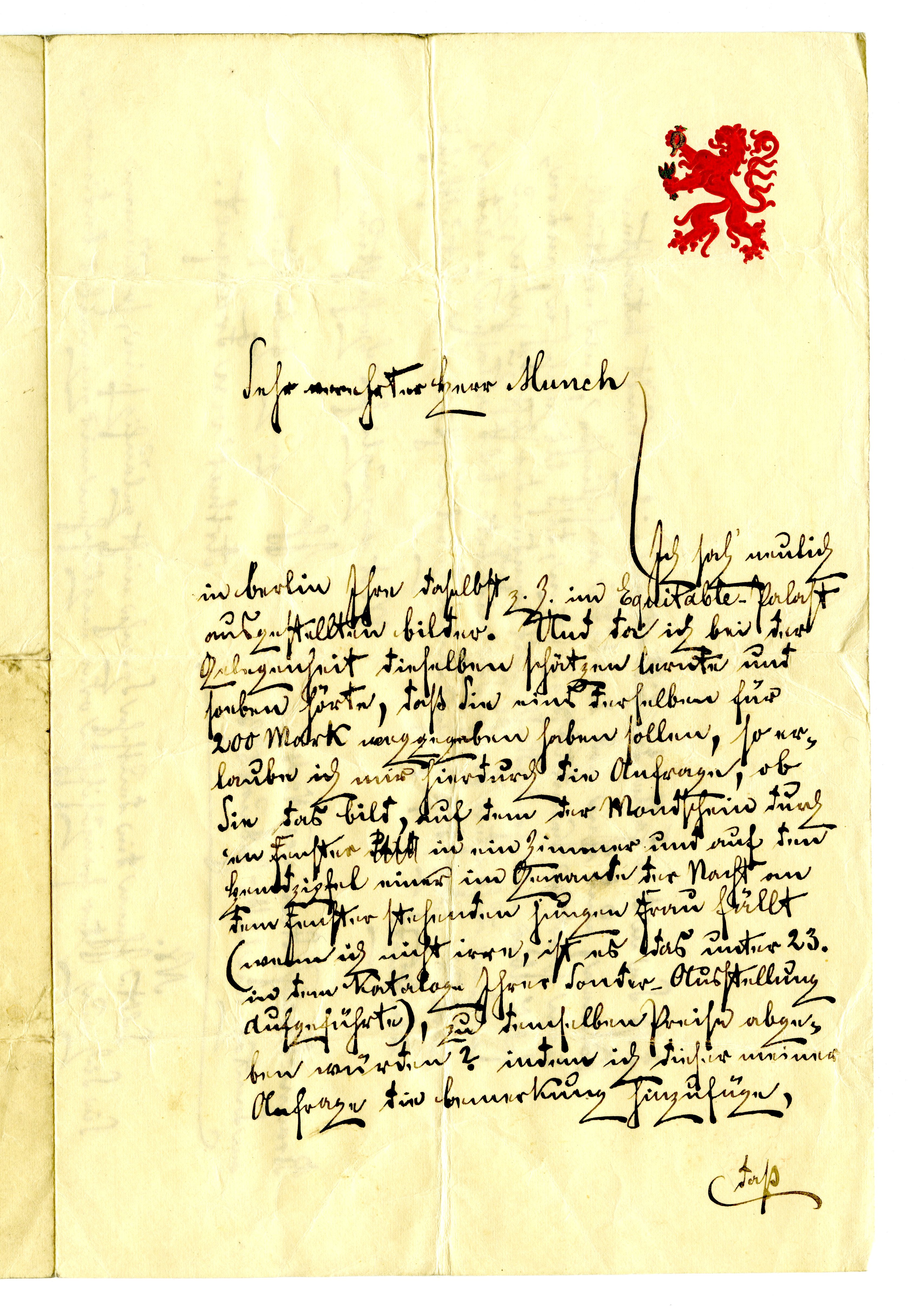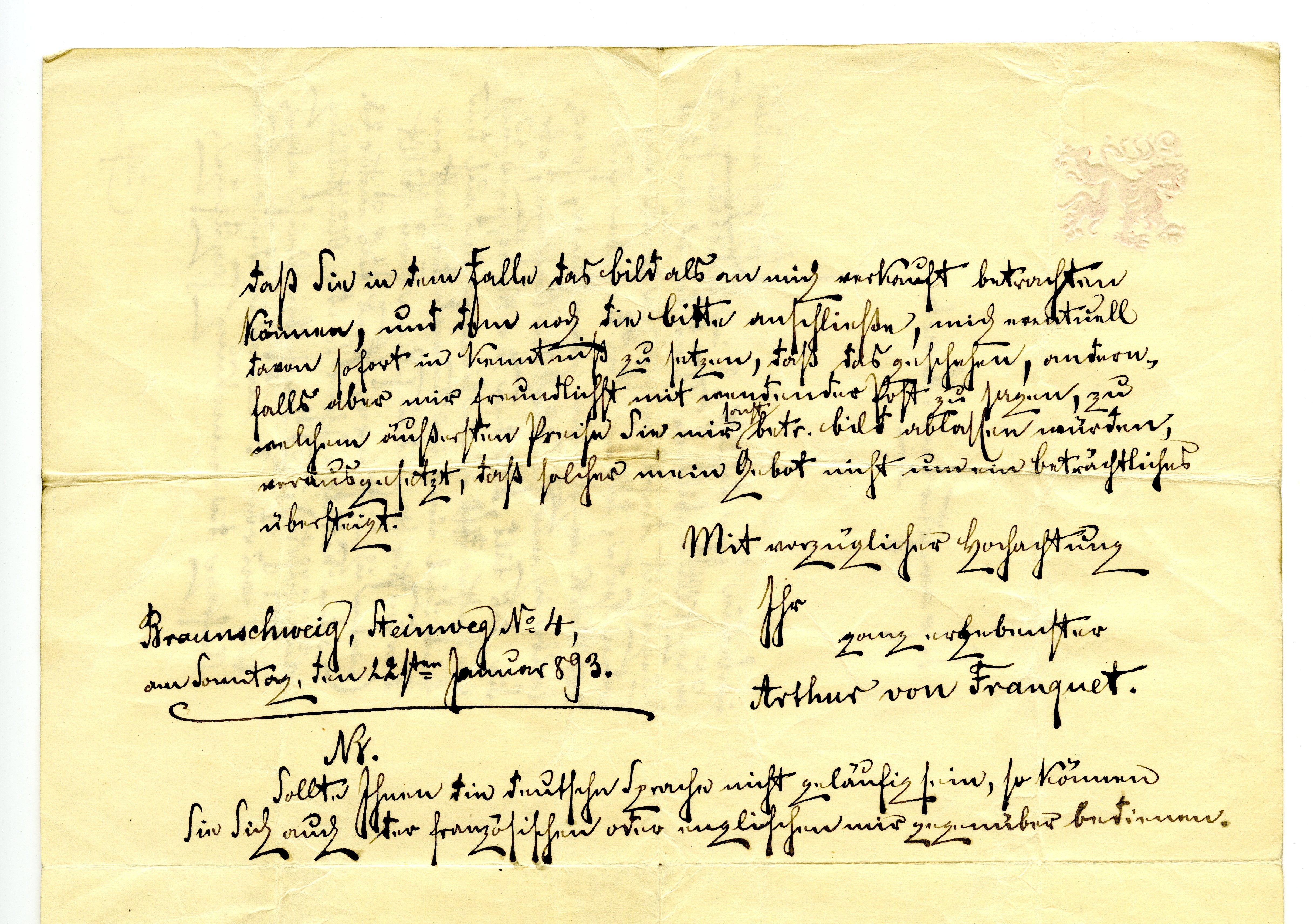 MM K 2223, Munchmuseet. Datert 22.01.1893. Brev fra Arthur von. Franquet.