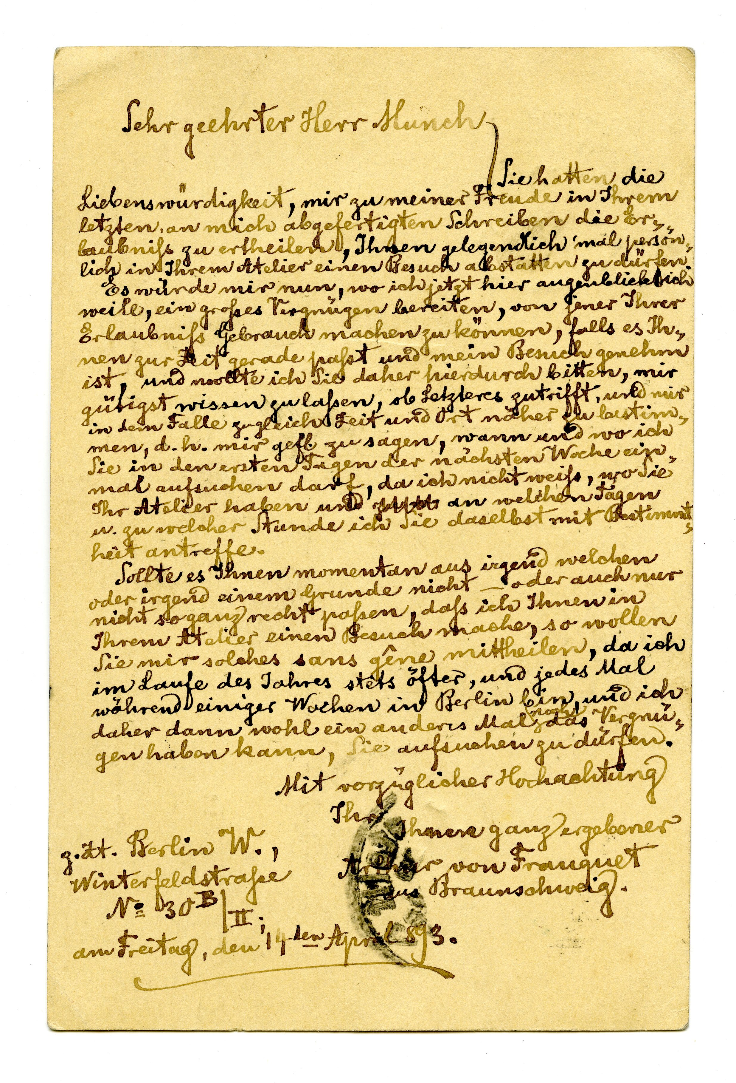 MM K 2225, Munchmuseet. Datert 14.04.1893. Brev fra Arthur von. Franquet.