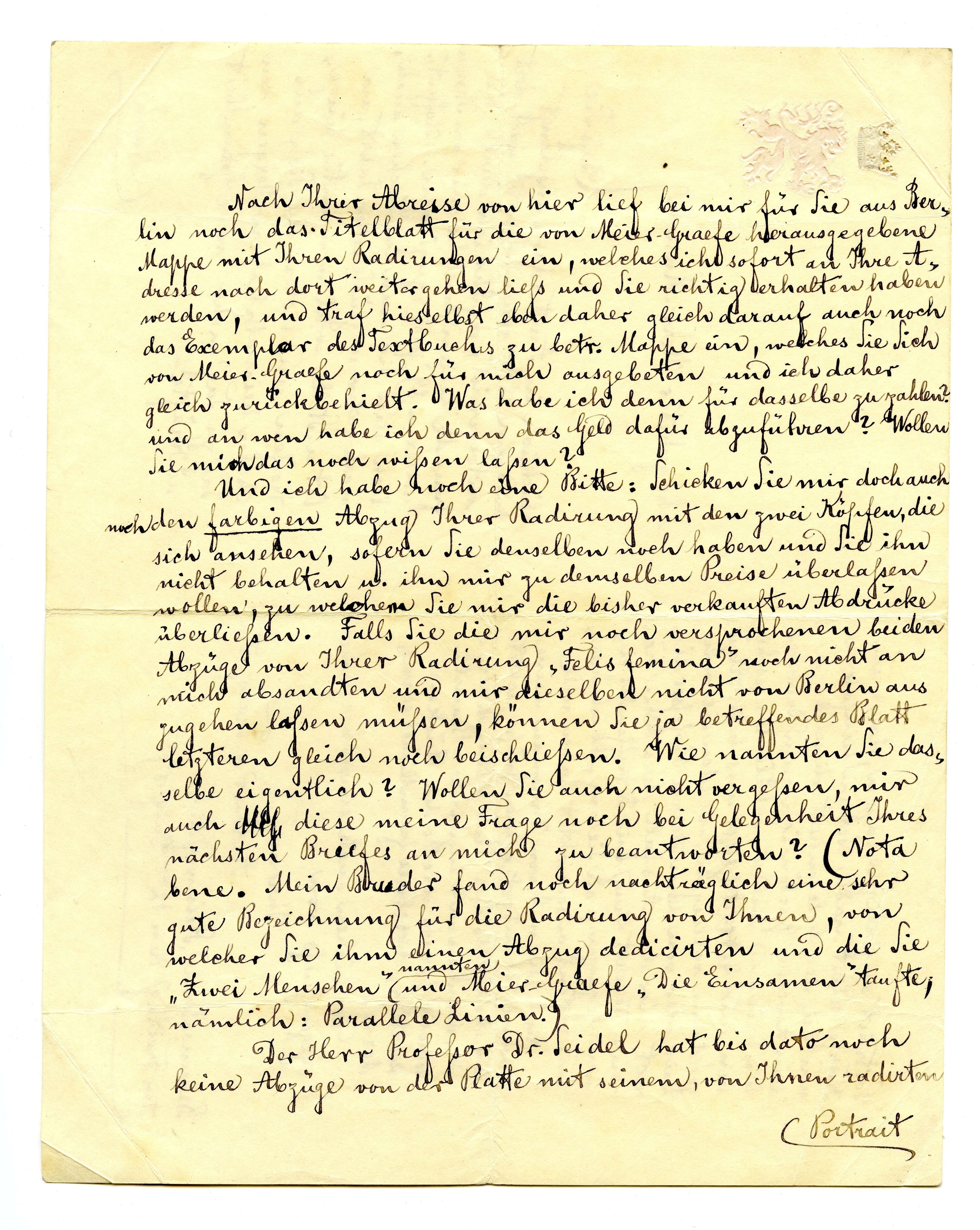 Mappe mit Ihren Radirungen ein, welches ich sofort an Ihre A-