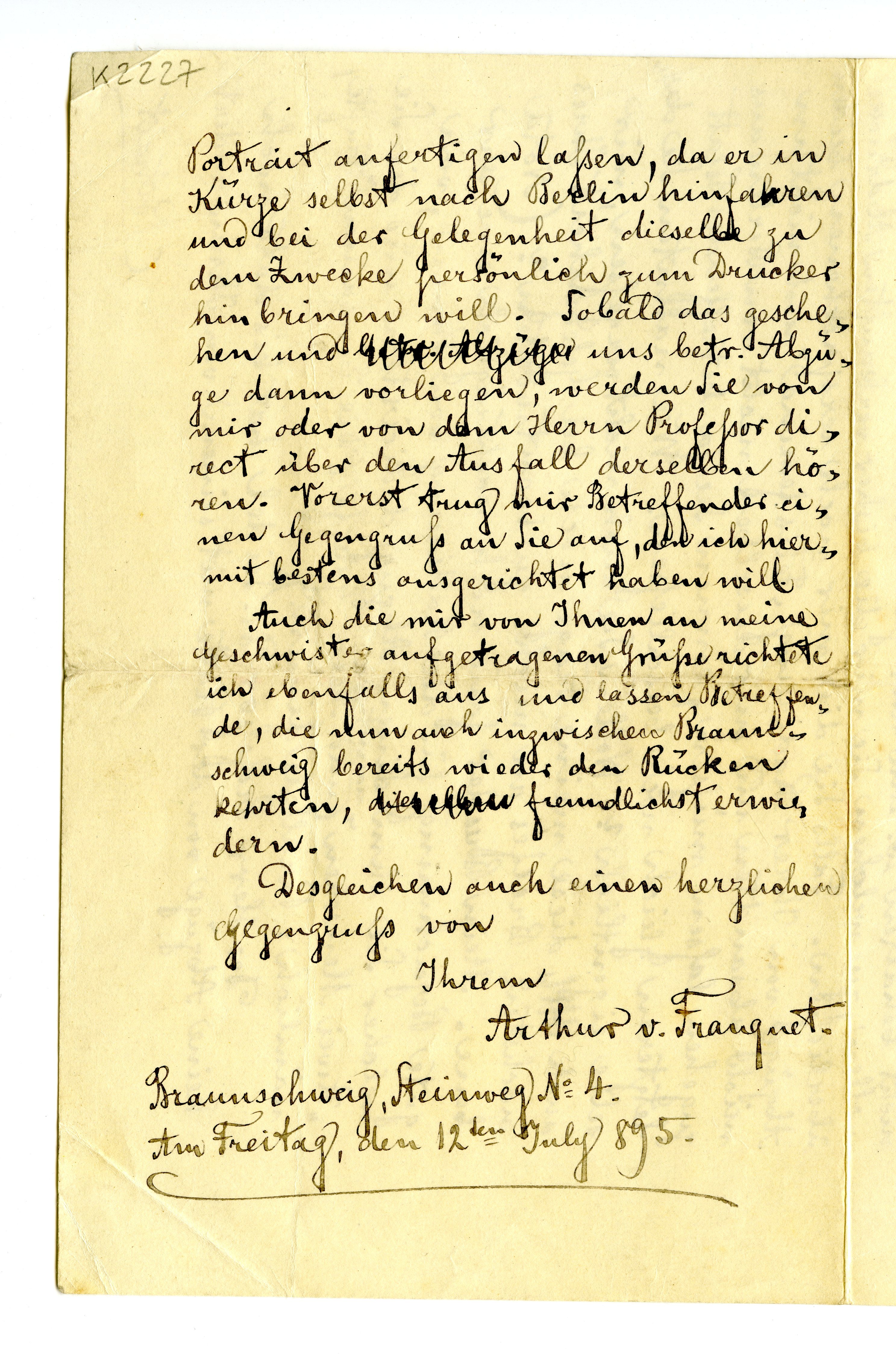 MM K 2227, Munchmuseet. Datert 12.07.1895. Brev fra Arthur von. Franquet.