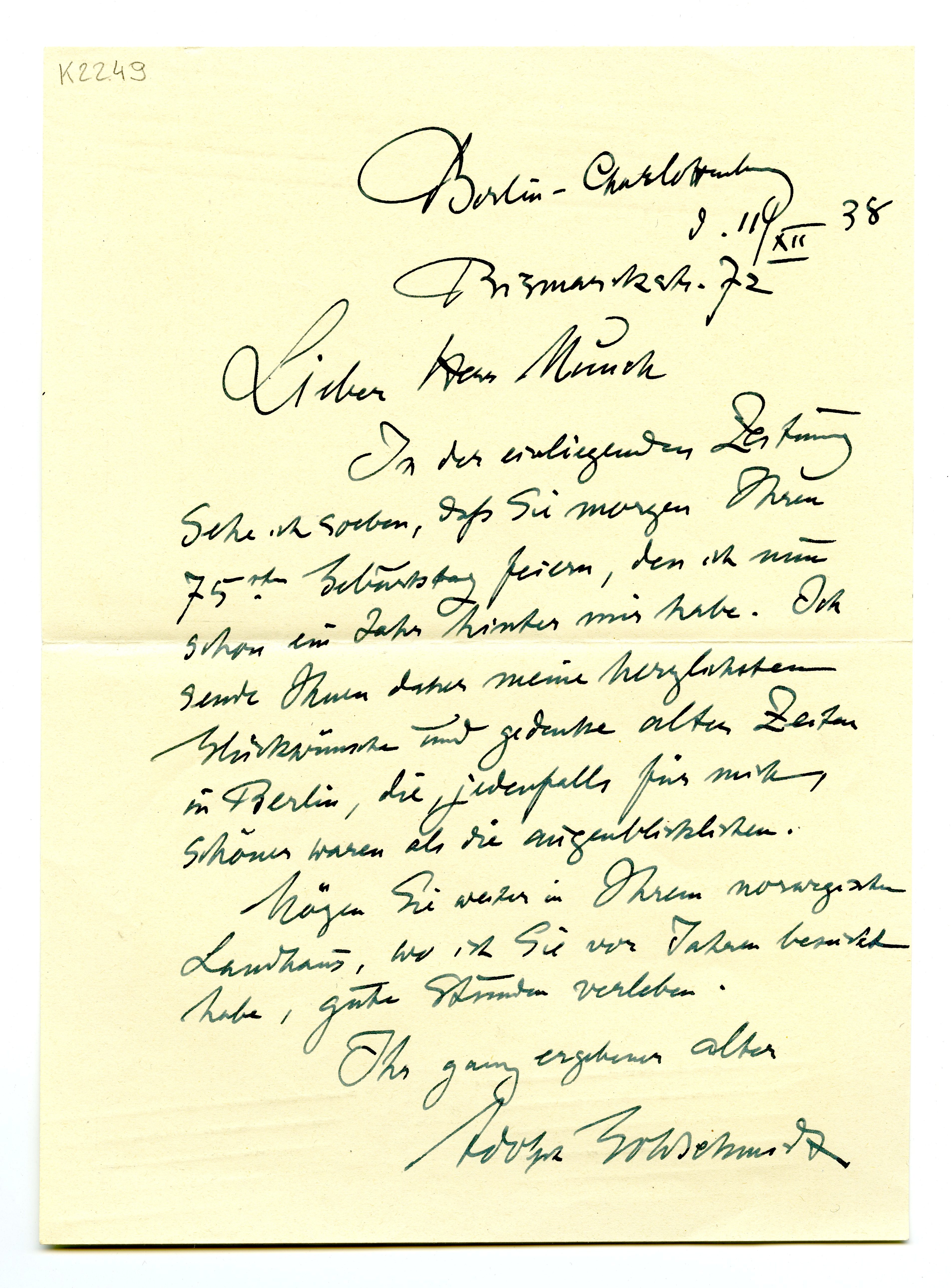MM K 2249, Munchmuseet. Datert 11.12.1938. Brev fra Adolph Goldschmidt.