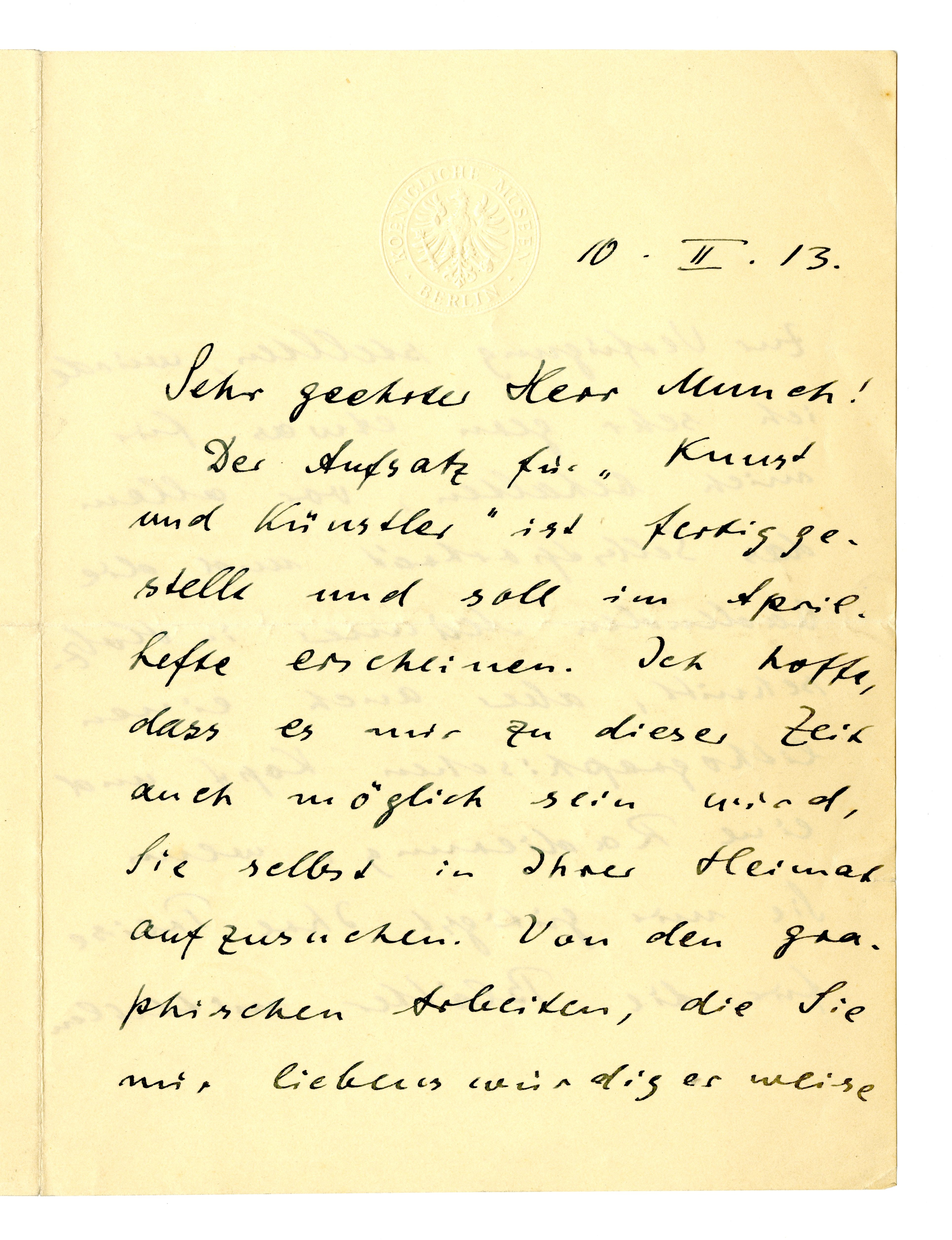 MM K 2261, Munchmuseet. Datert 10.02.1913. Brev fra Curt Glaser.