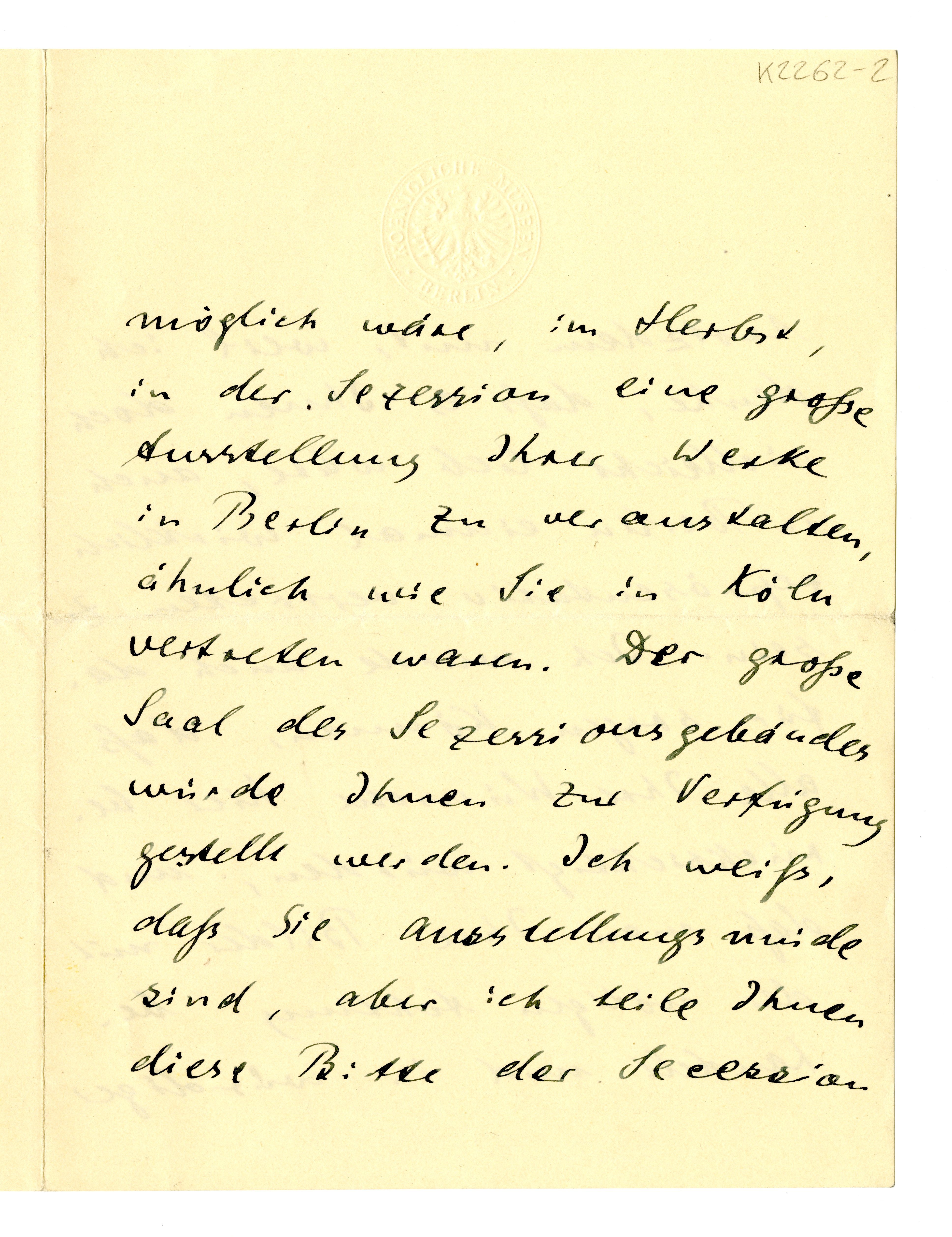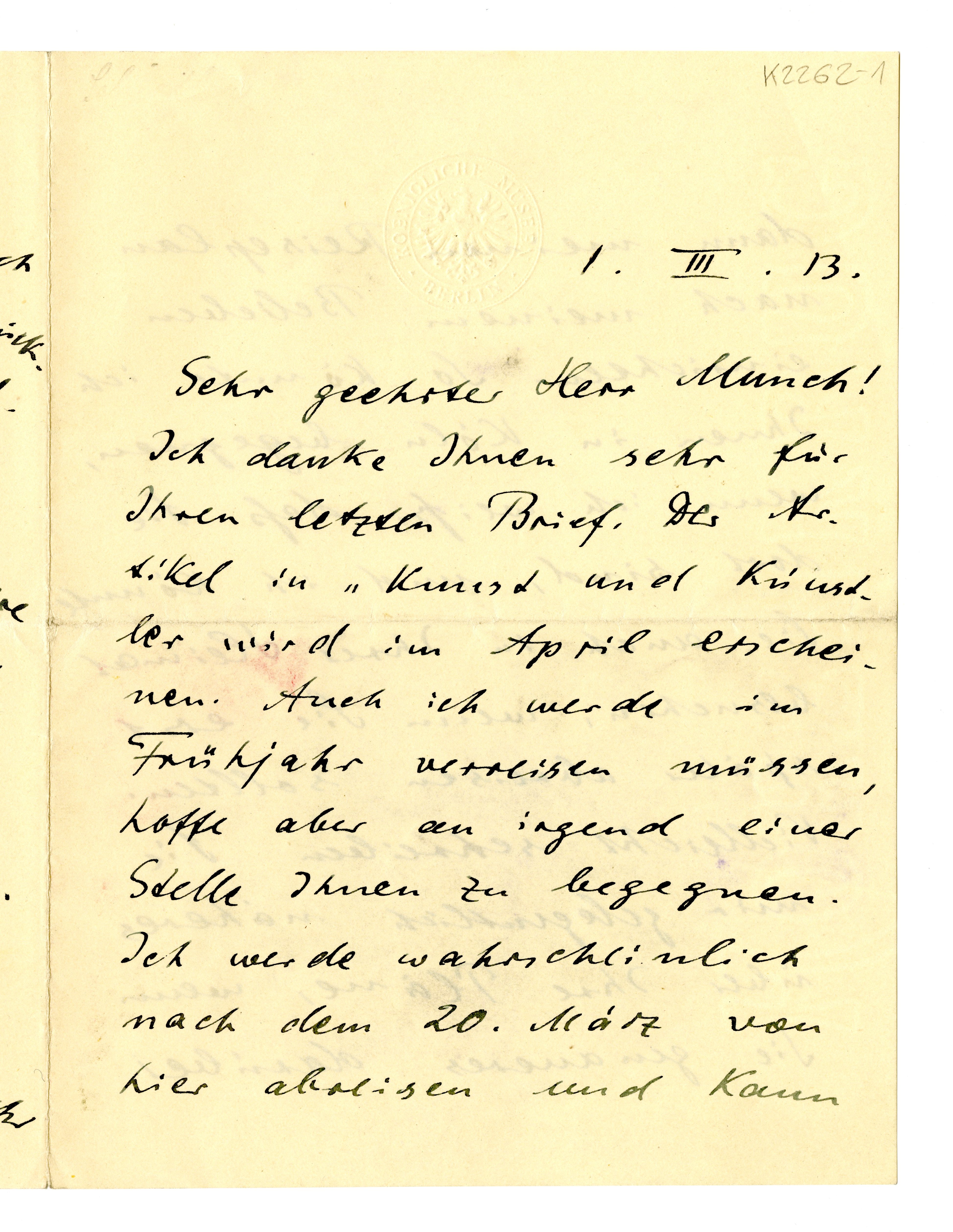 MM K 2262, Munchmuseet. Datert 01.03.1913. Brev fra Curt Glaser.