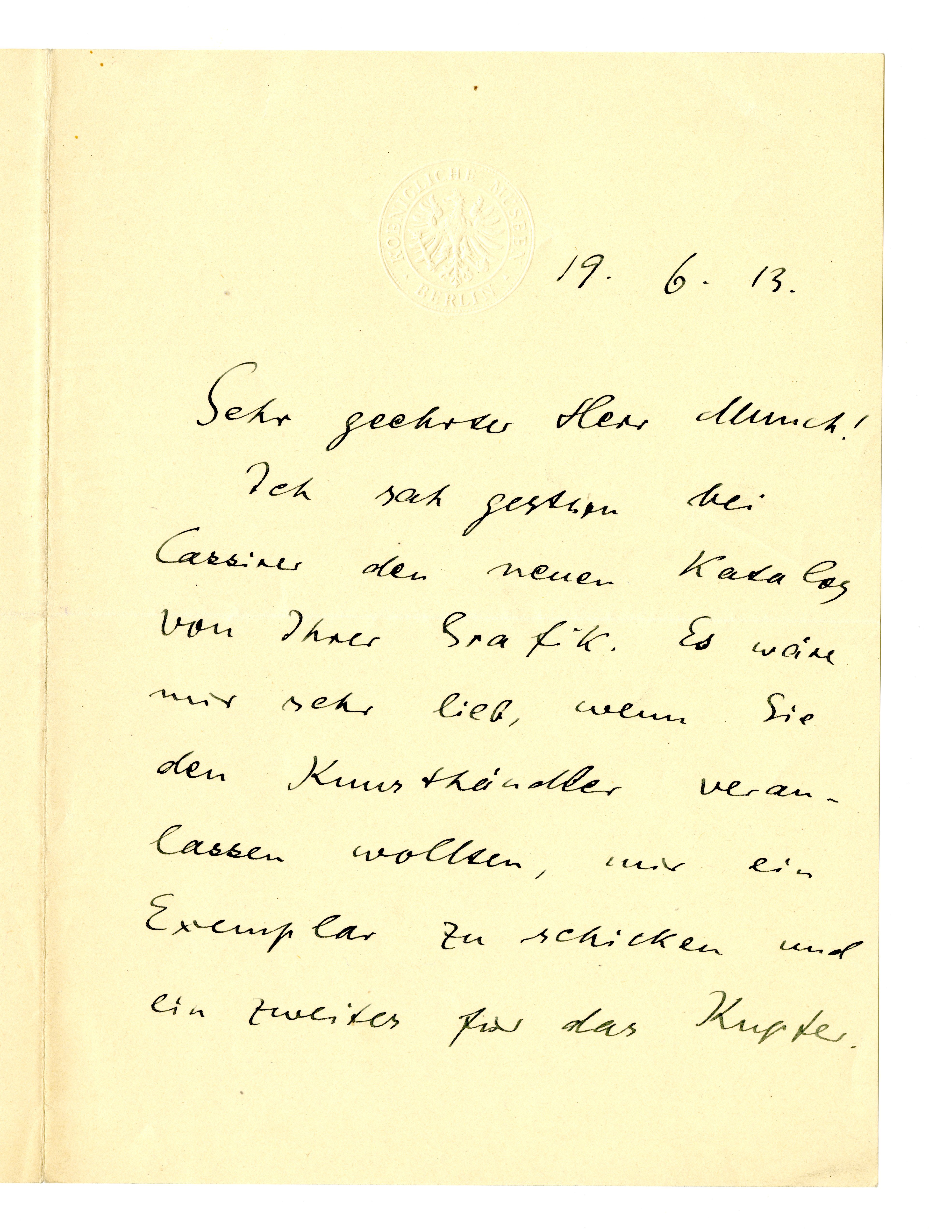 MM K 2267, Munchmuseet. Datert 19.06.1913. Brev fra Curt Glaser.