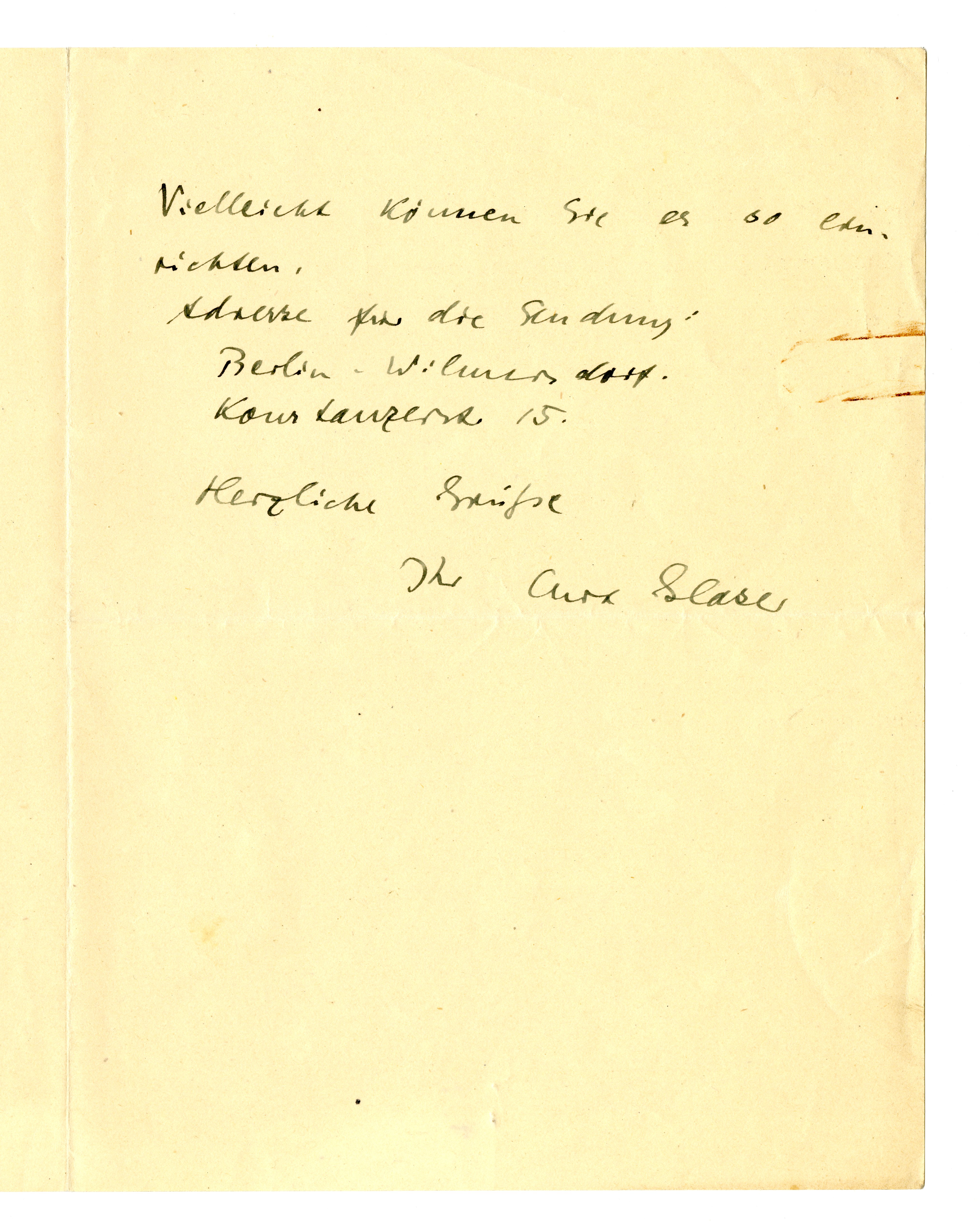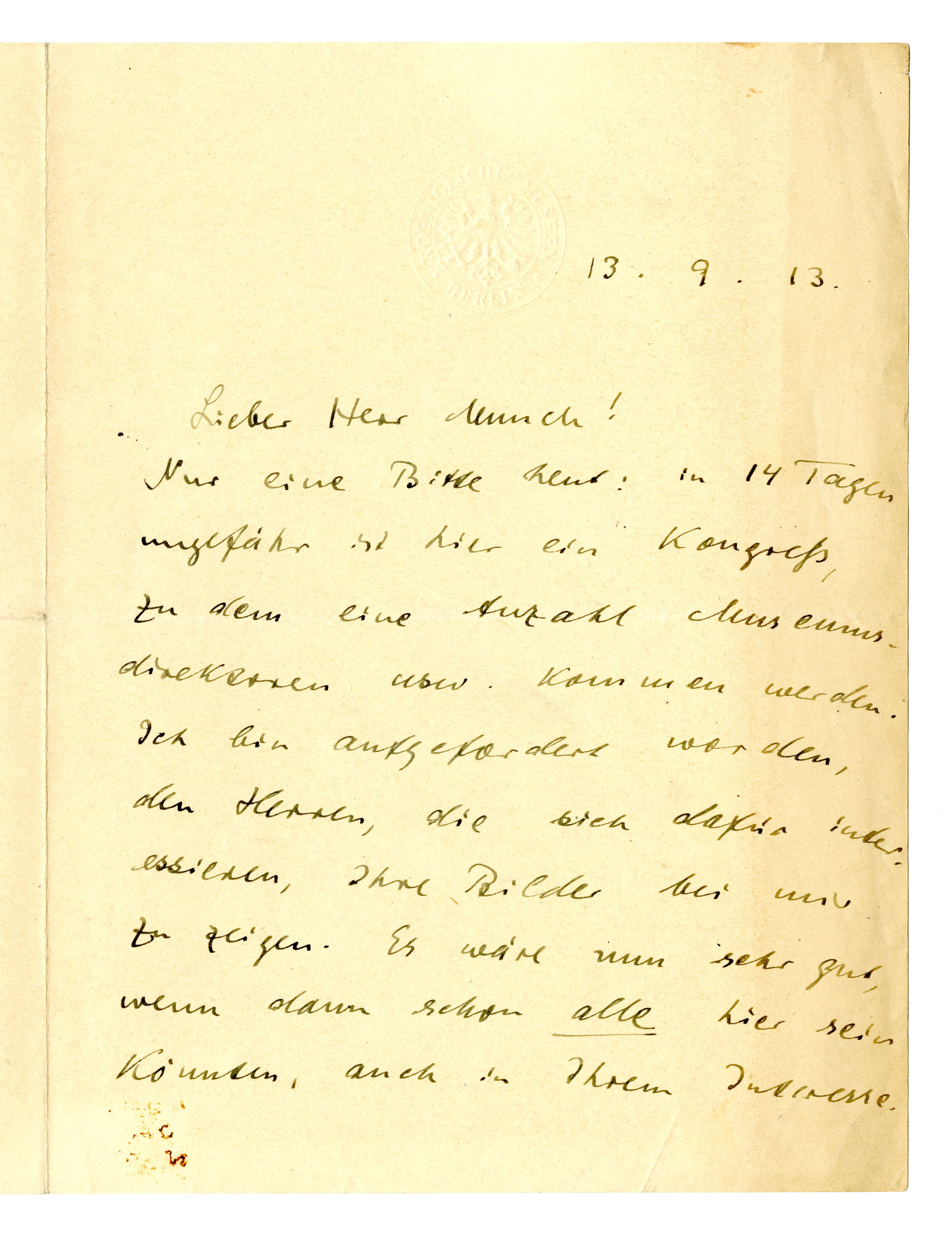 MM K 2272, Munchmuseet. Datert 13.09.1913. Brev fra Curt Glaser.