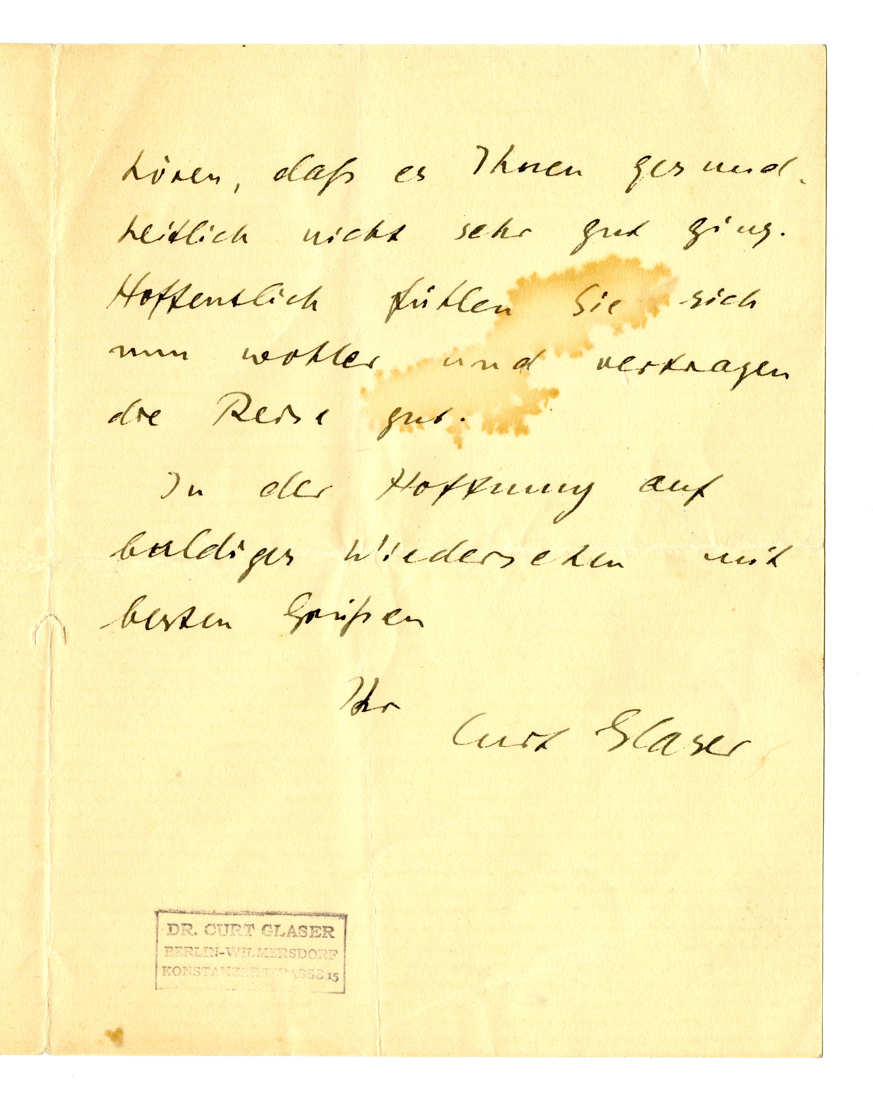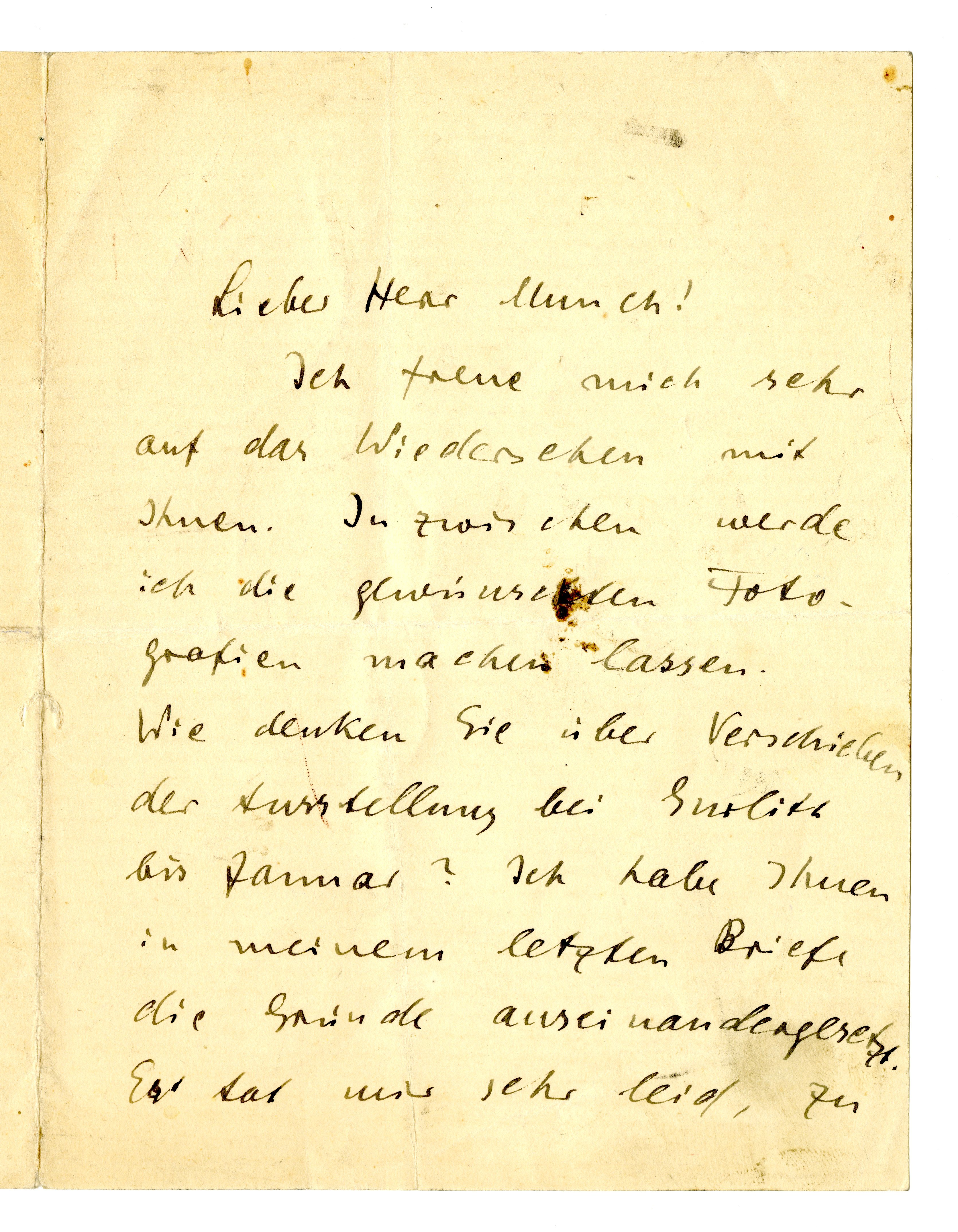 MM K 2275, Munchmuseet. Ikke datert. Brev fra Curt Glaser.