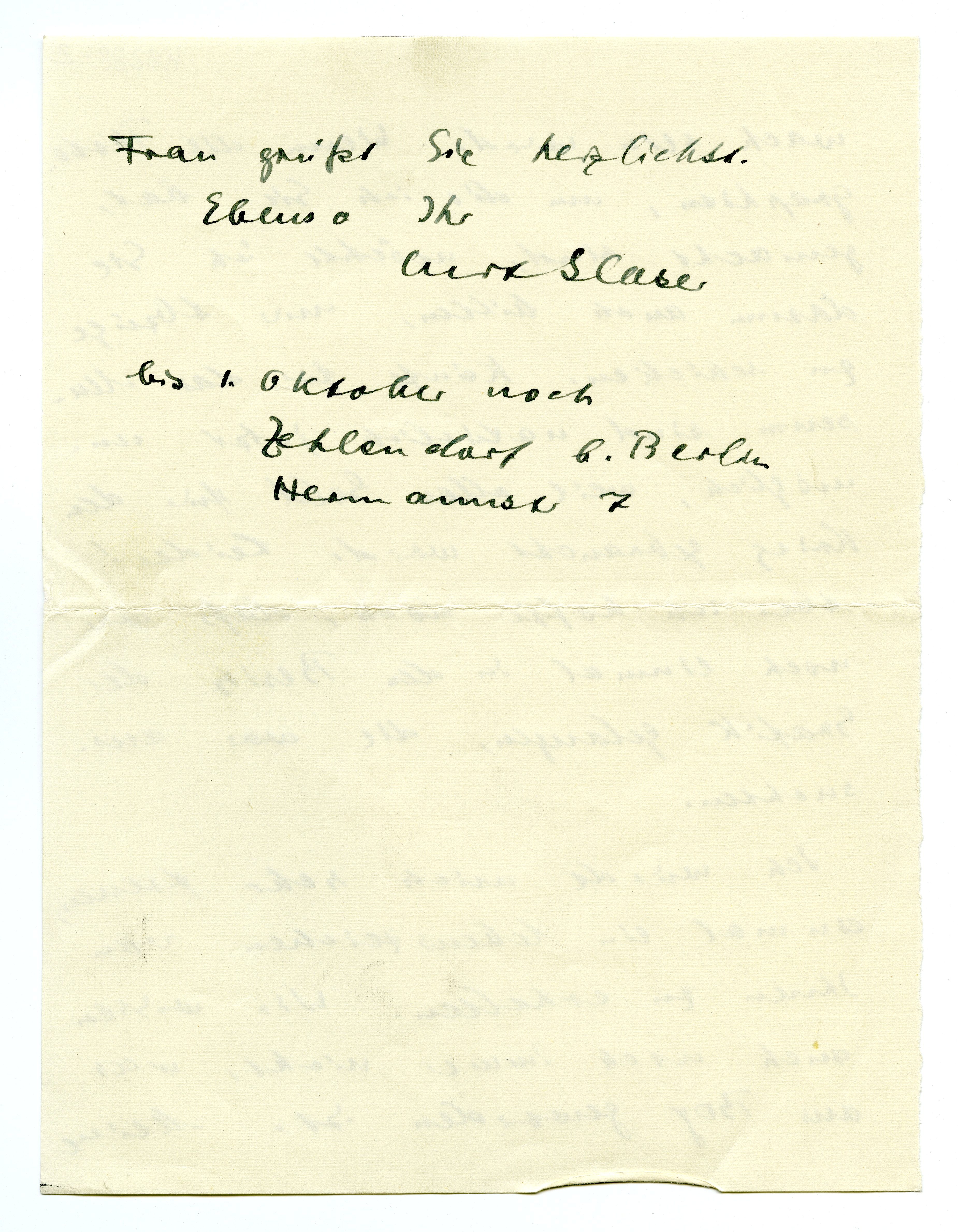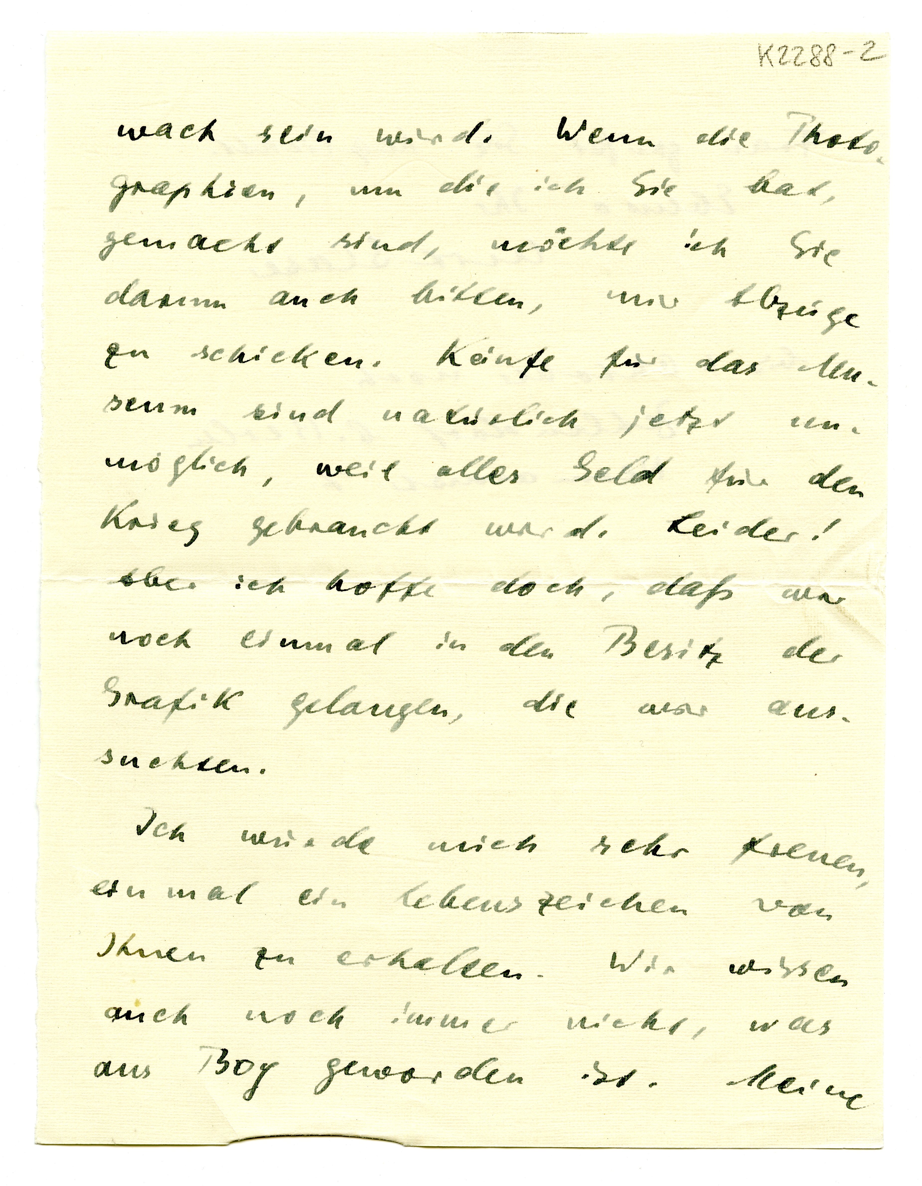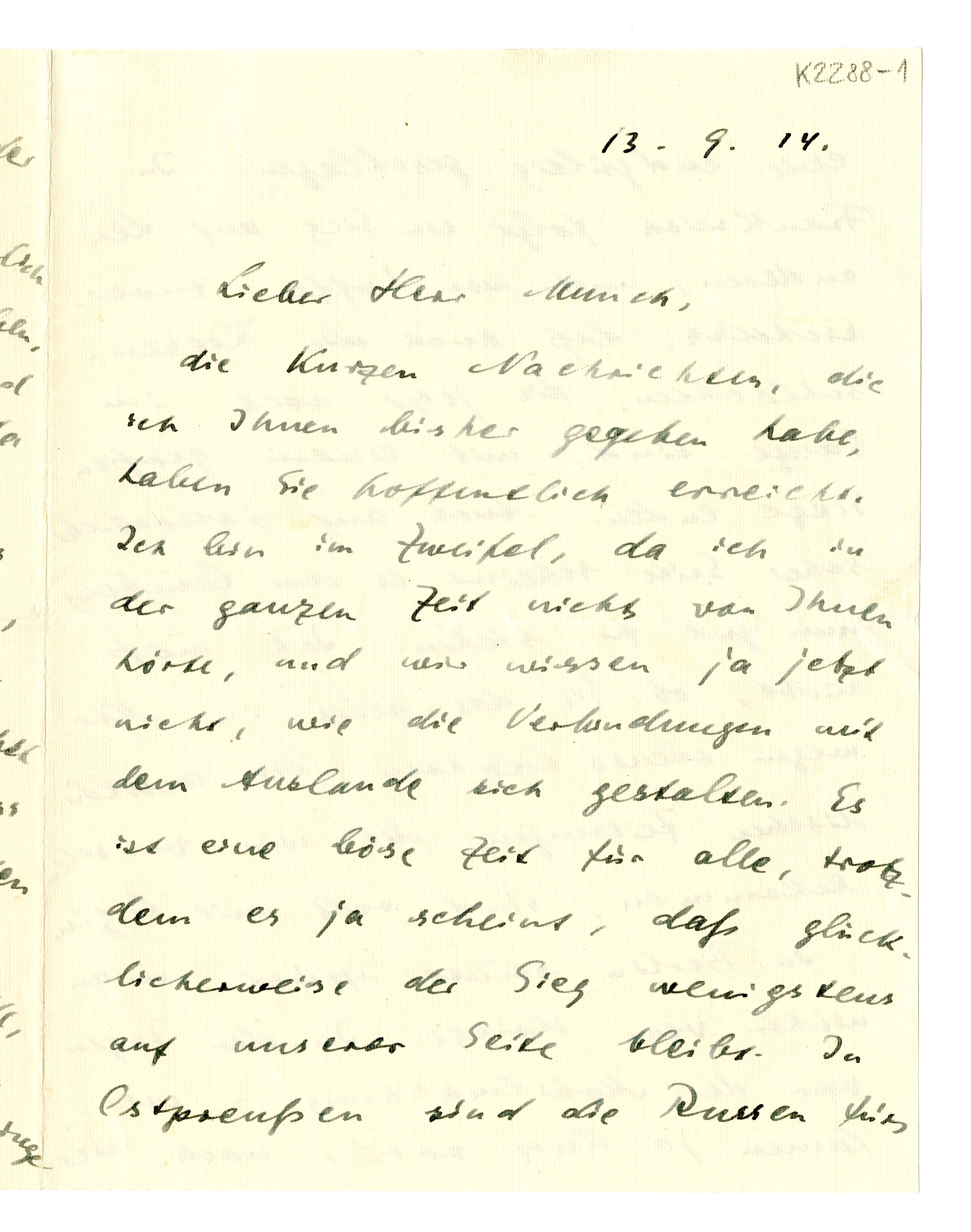 MM K 2288, Munchmuseet. Datert 13.09.1914. Brev fra Curt Glaser.