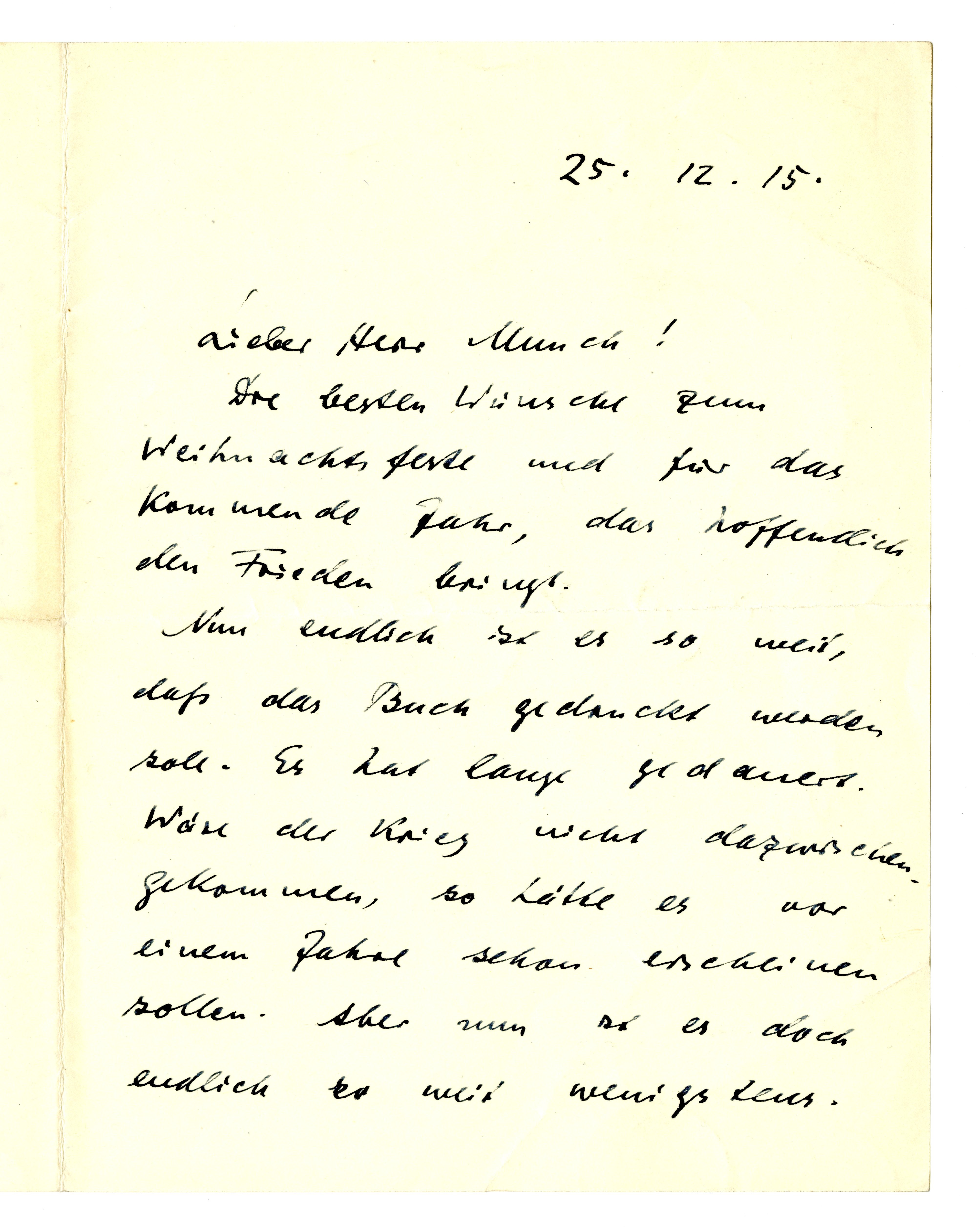 MM K 2304, Munchmuseet. Datert 25.12.1915. Brev fra Curt Glaser.