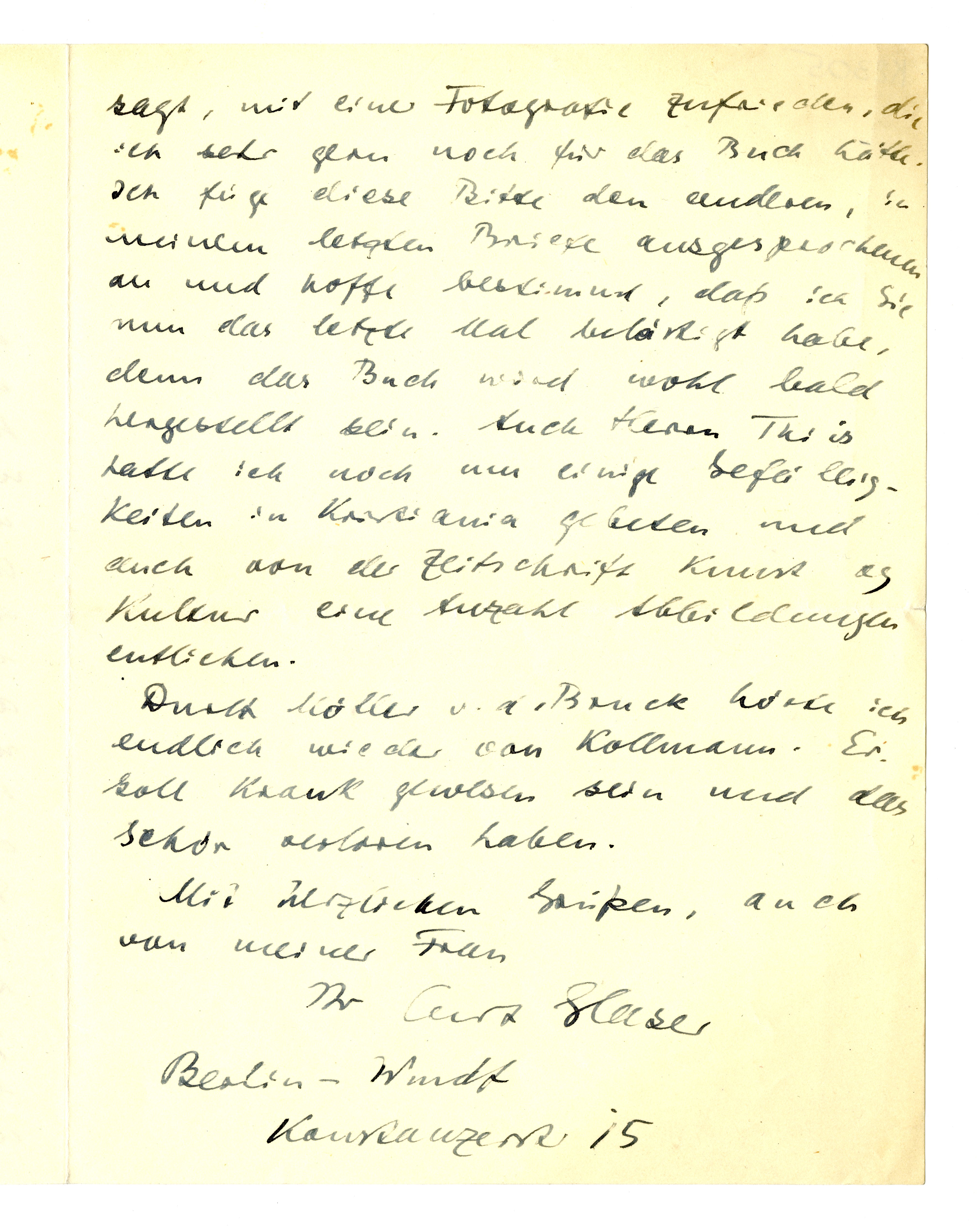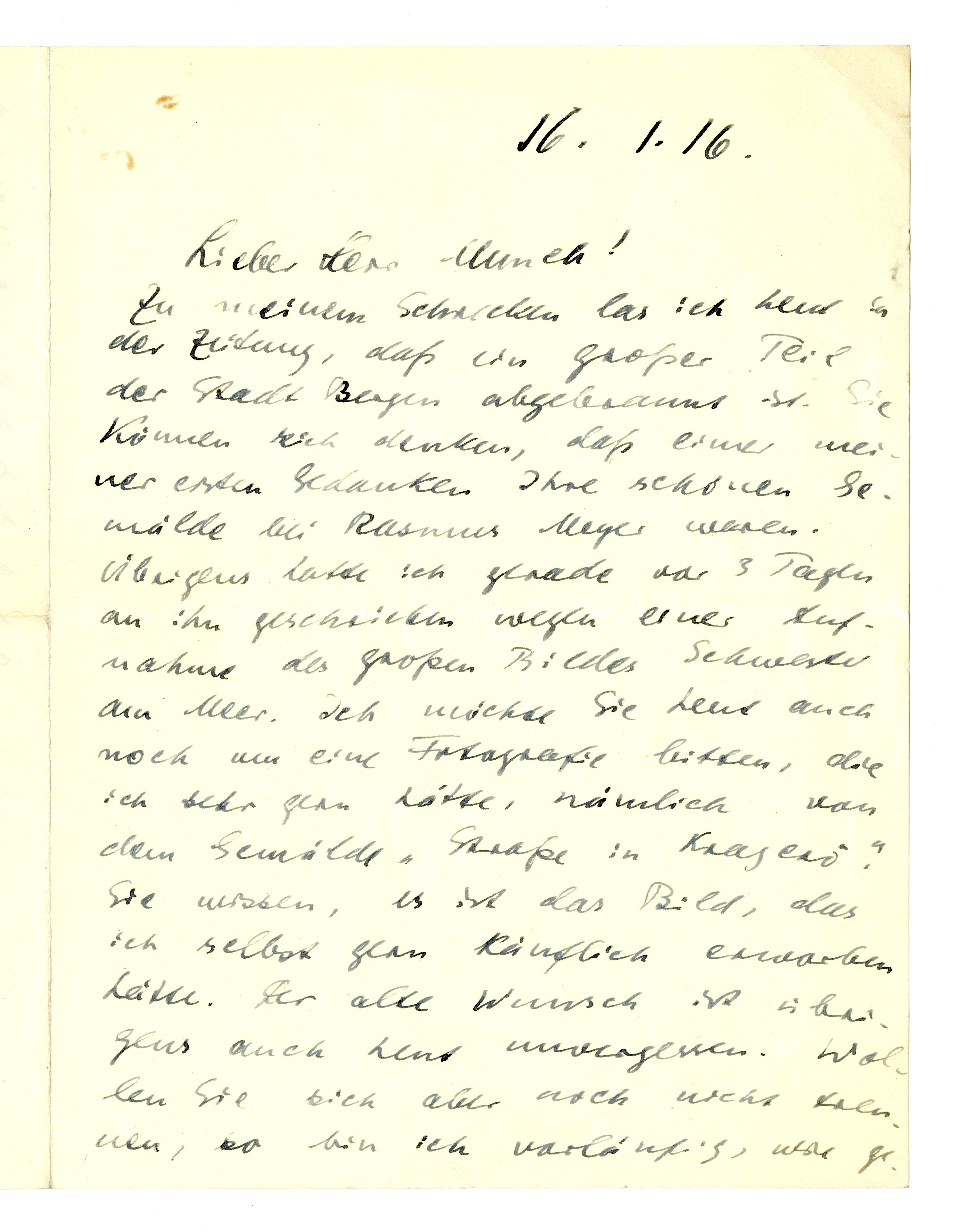 MM K 2305, Munchmuseet. Datert 16.01.1916. Brev fra Curt Glaser.