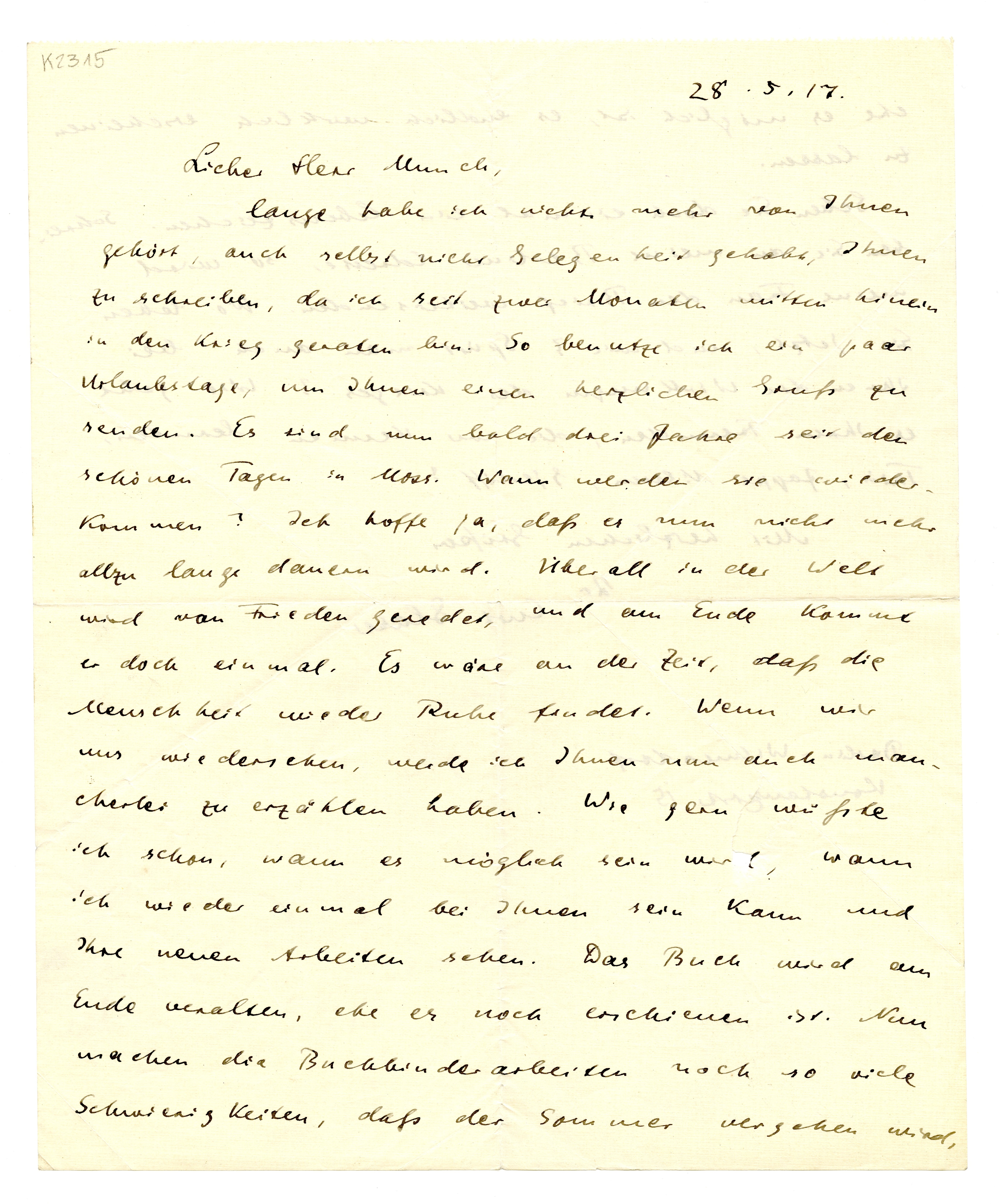 MM K 2315, Munchmuseet. Datert 28.05.1917. Brev fra Curt Glaser.