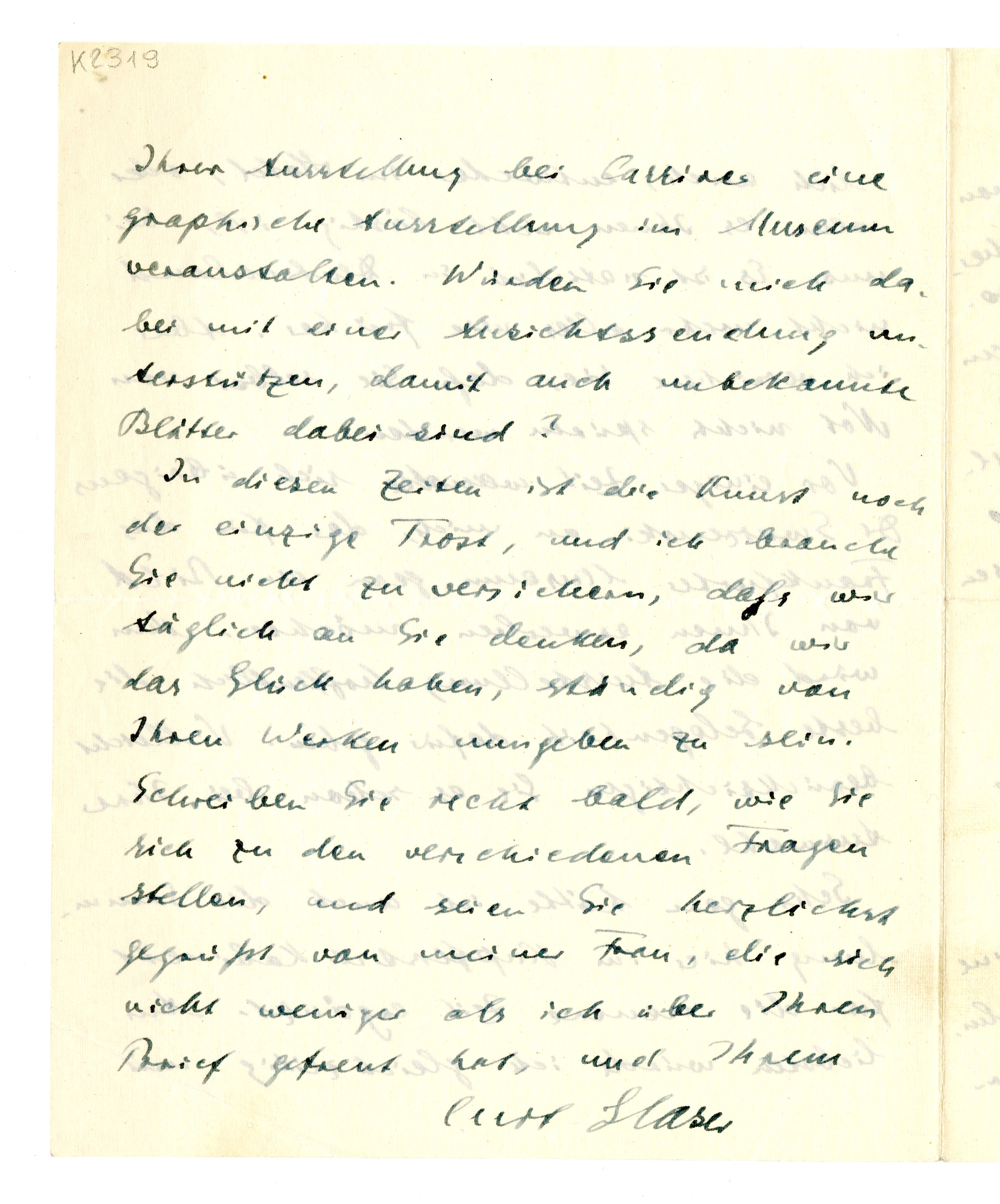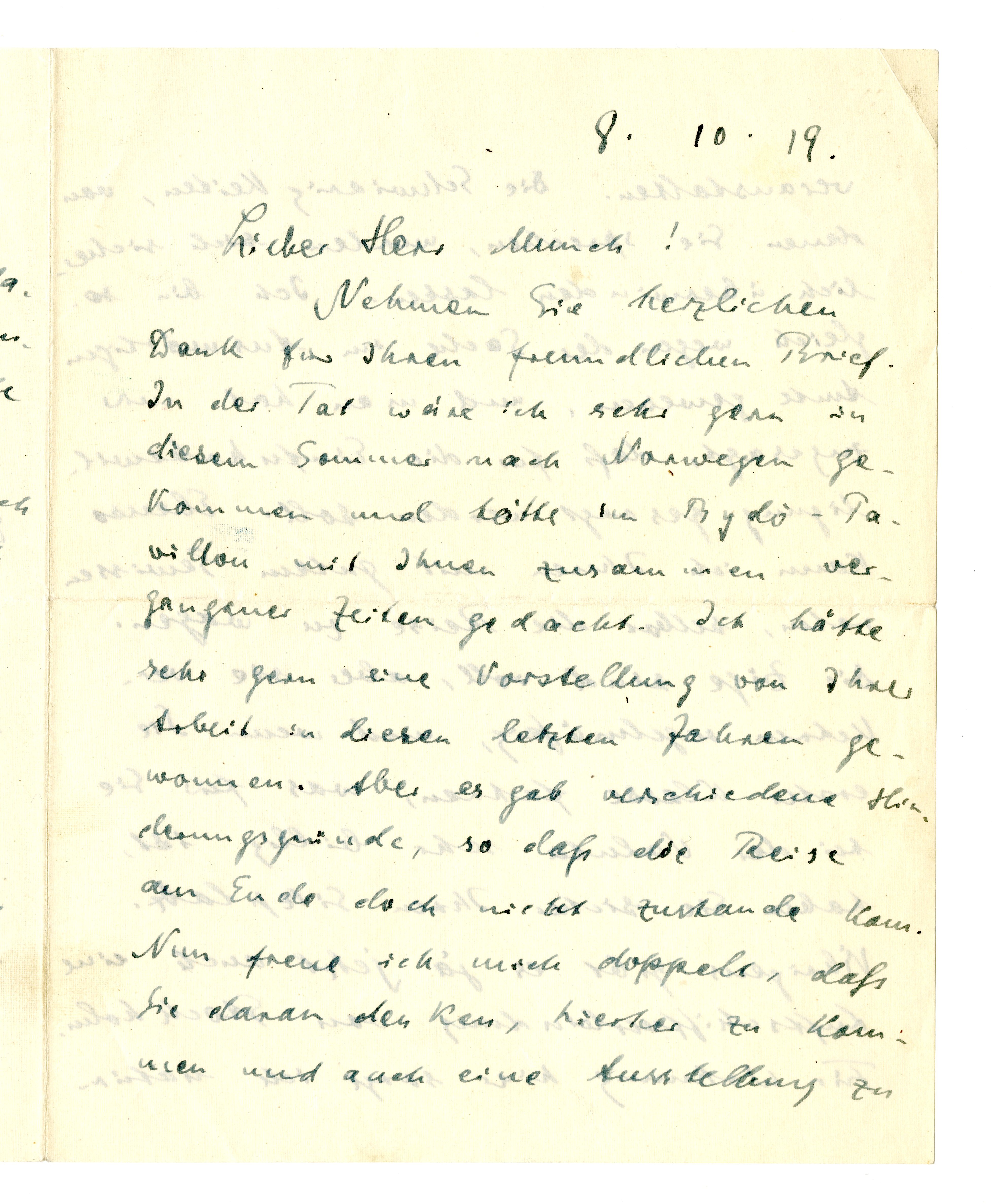 MM K 2319, Munchmuseet. Datert 08.10.1919. Brev fra Curt Glaser.