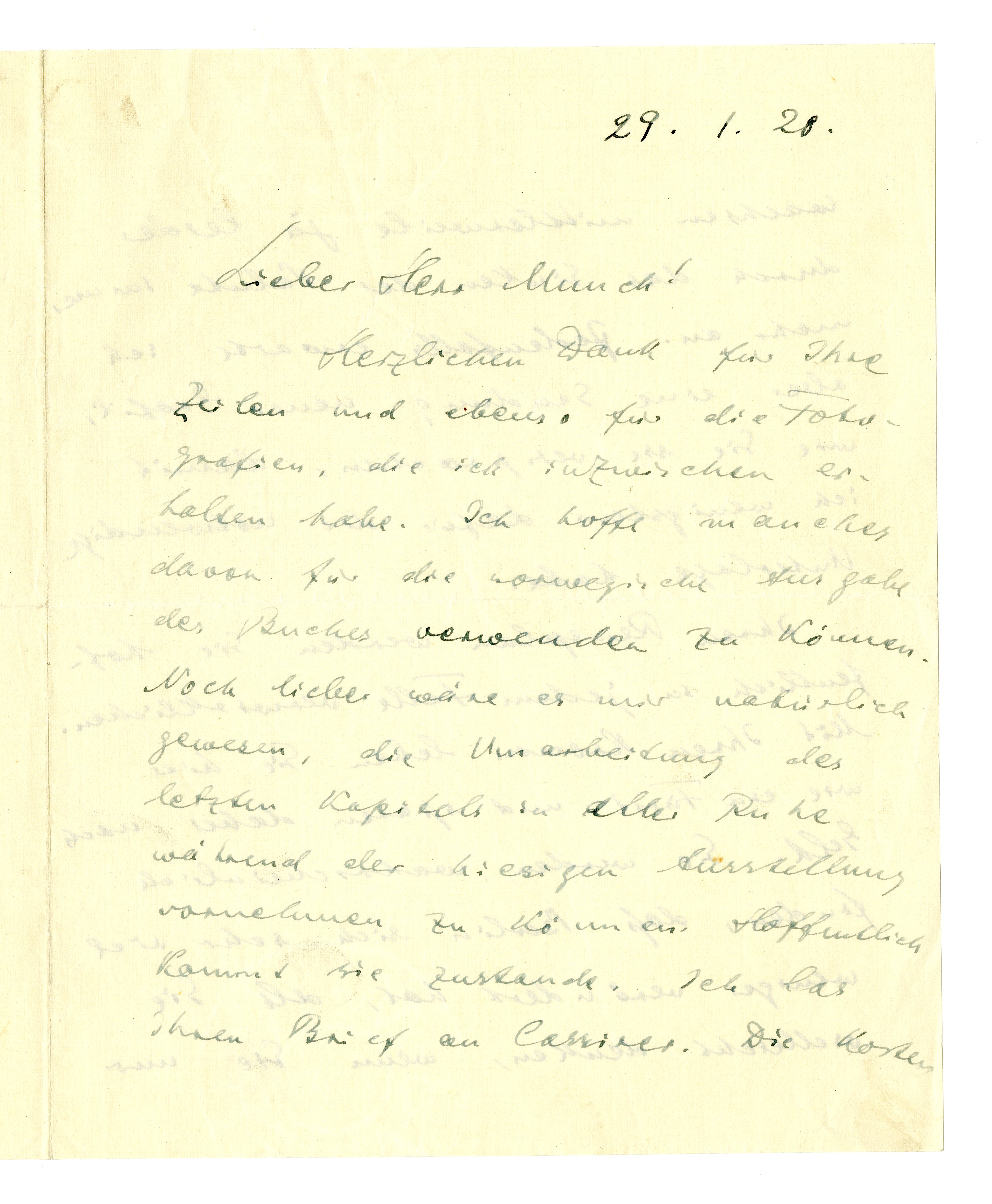 MM K 2323, Munchmuseet. Datert 29.01.1920. Brev fra Curt Glaser.