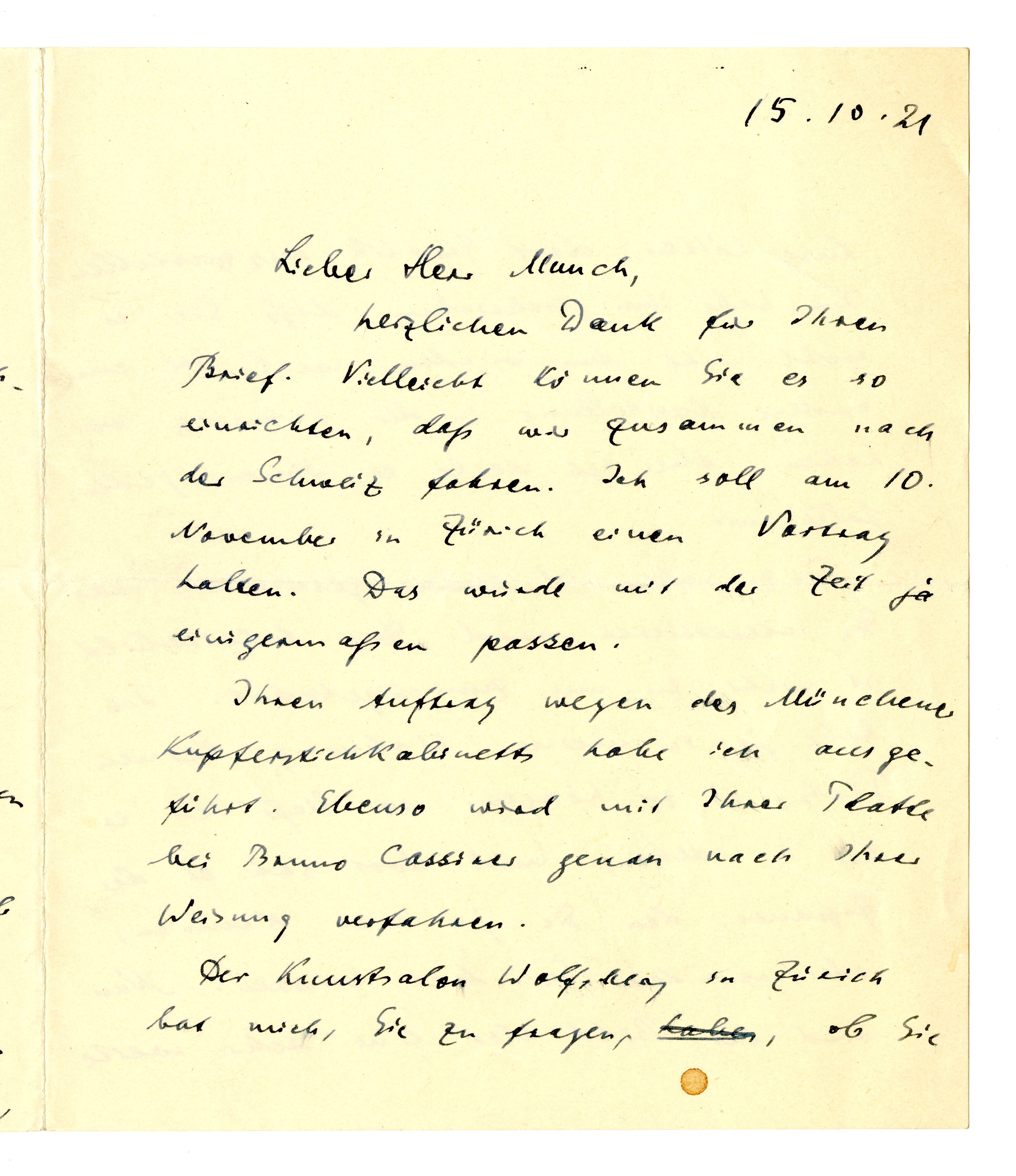 MM K 2329, Munchmuseet. Datert 15.10.1921. Brev fra Curt Glaser.
