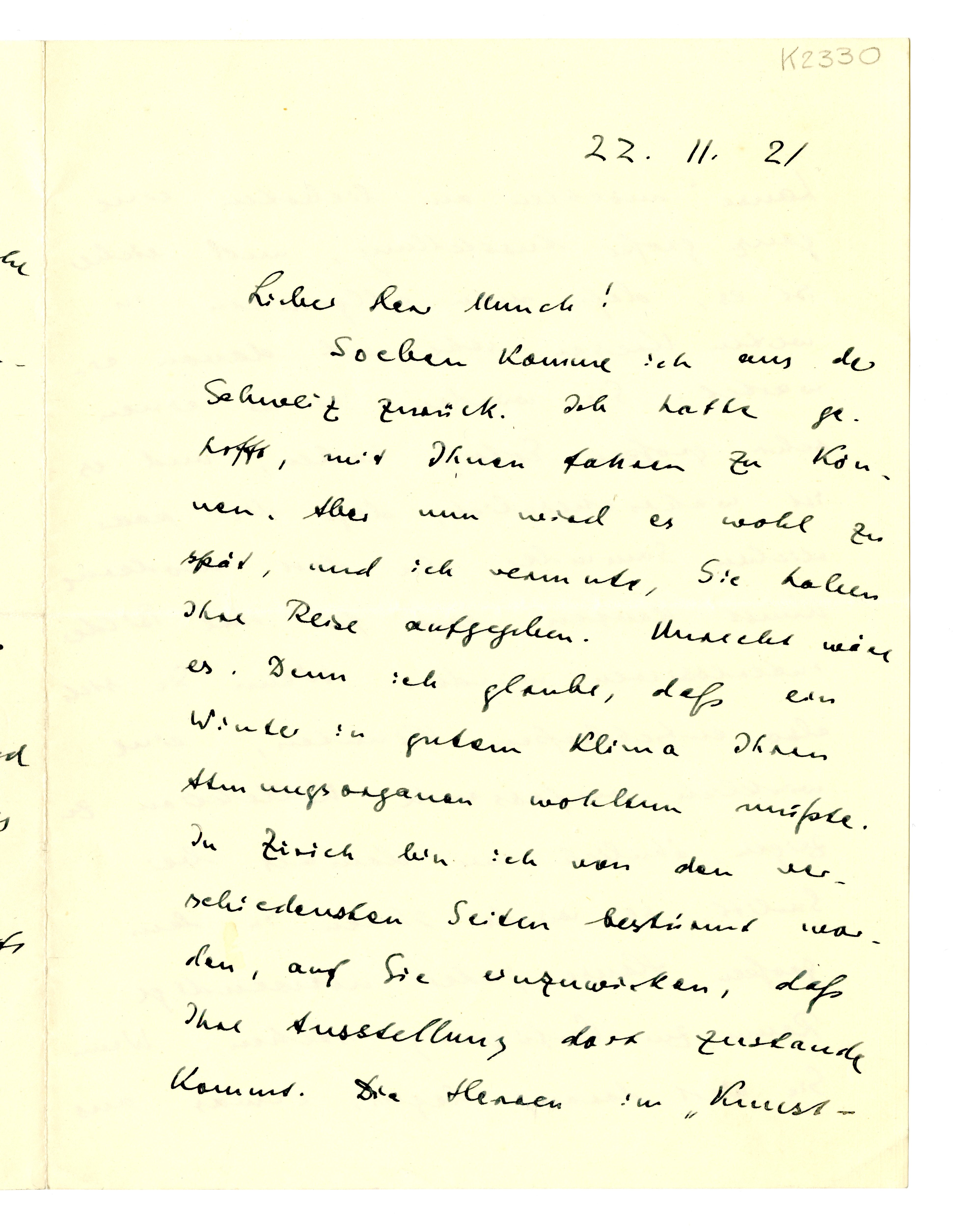 MM K 2330, Munchmuseet. Datert 22.11.1921. Brev fra Curt Glaser.