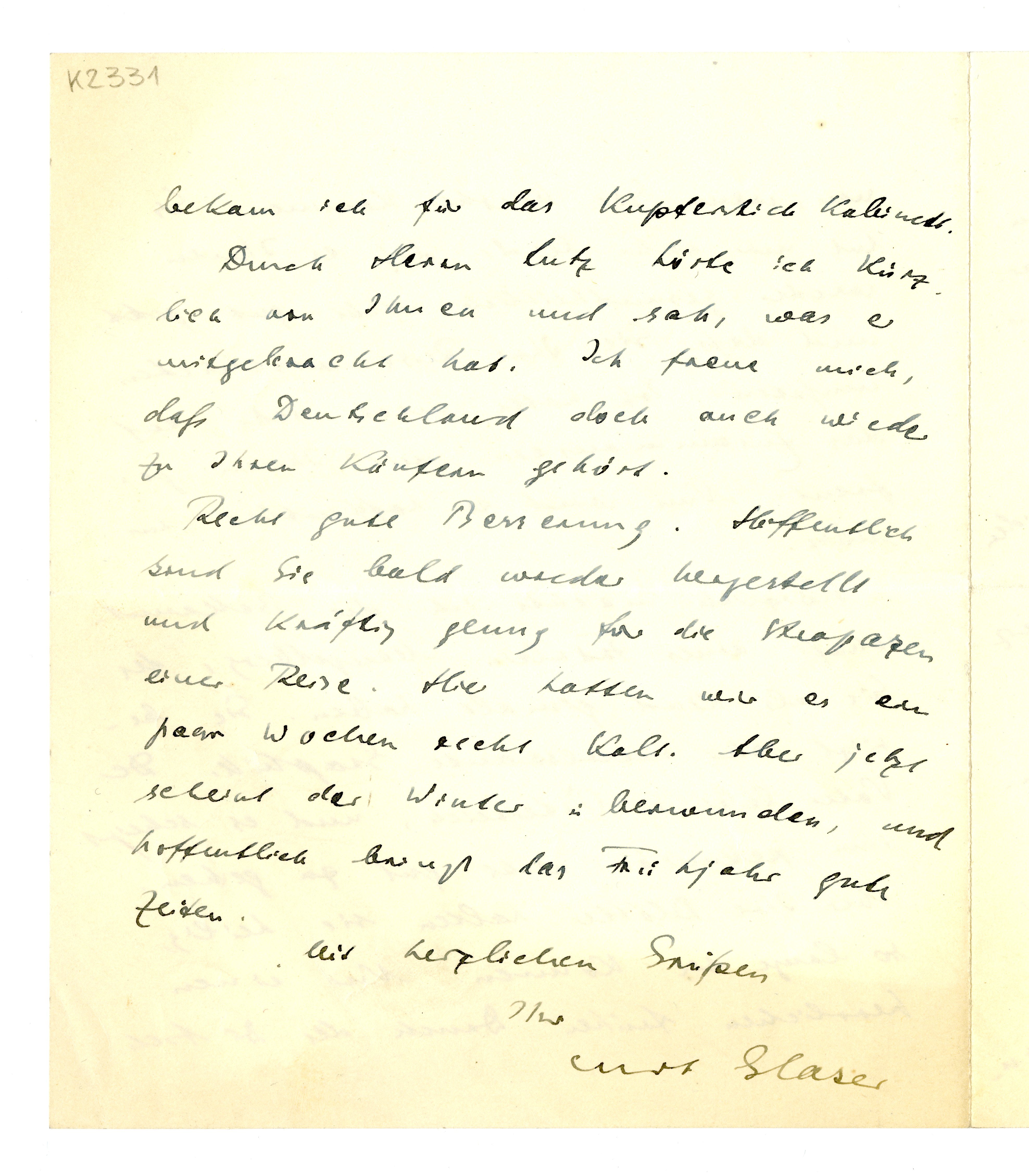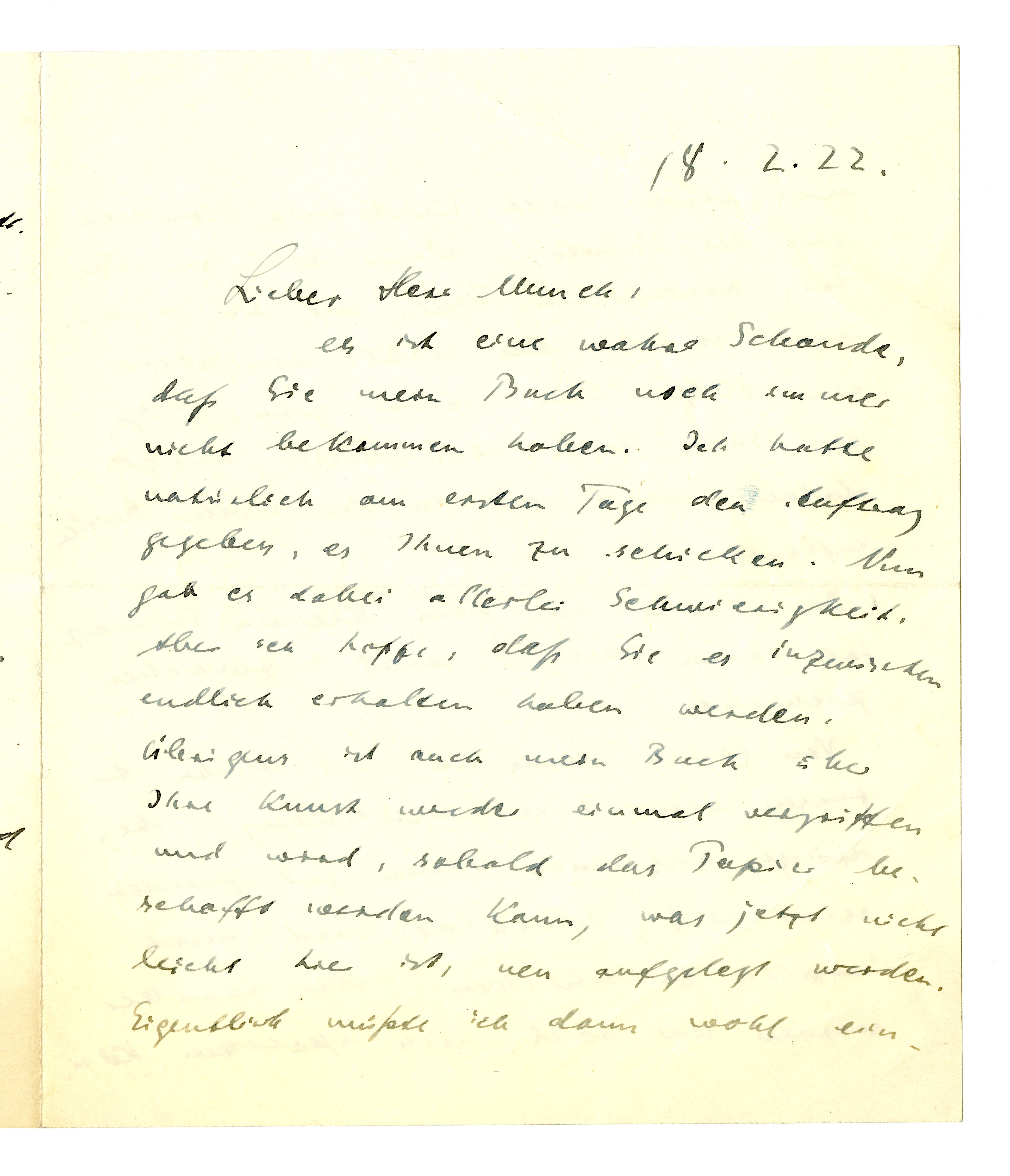 MM K 2331, Munchmuseet. Datert 18.02.1922. Brev fra Curt Glaser.