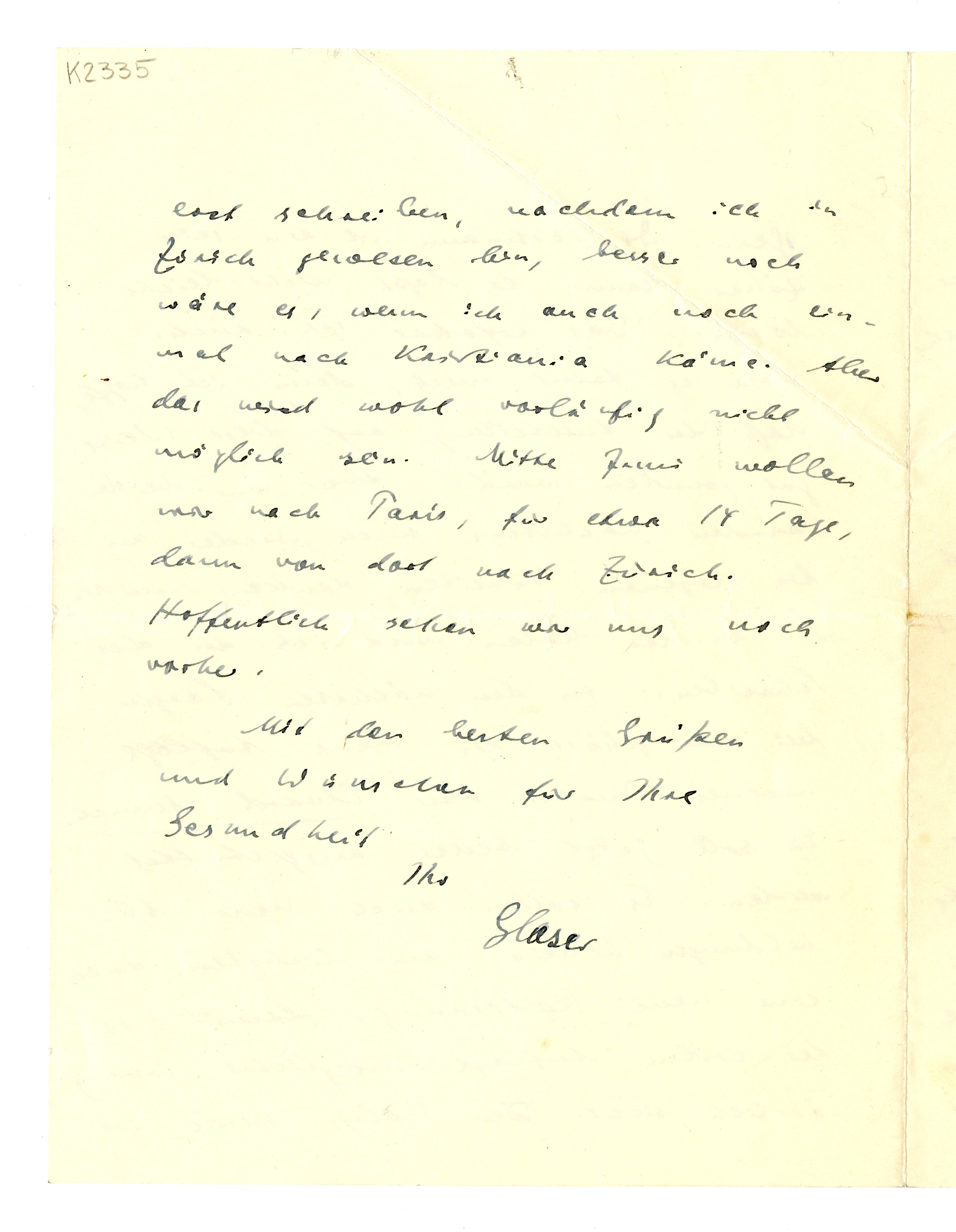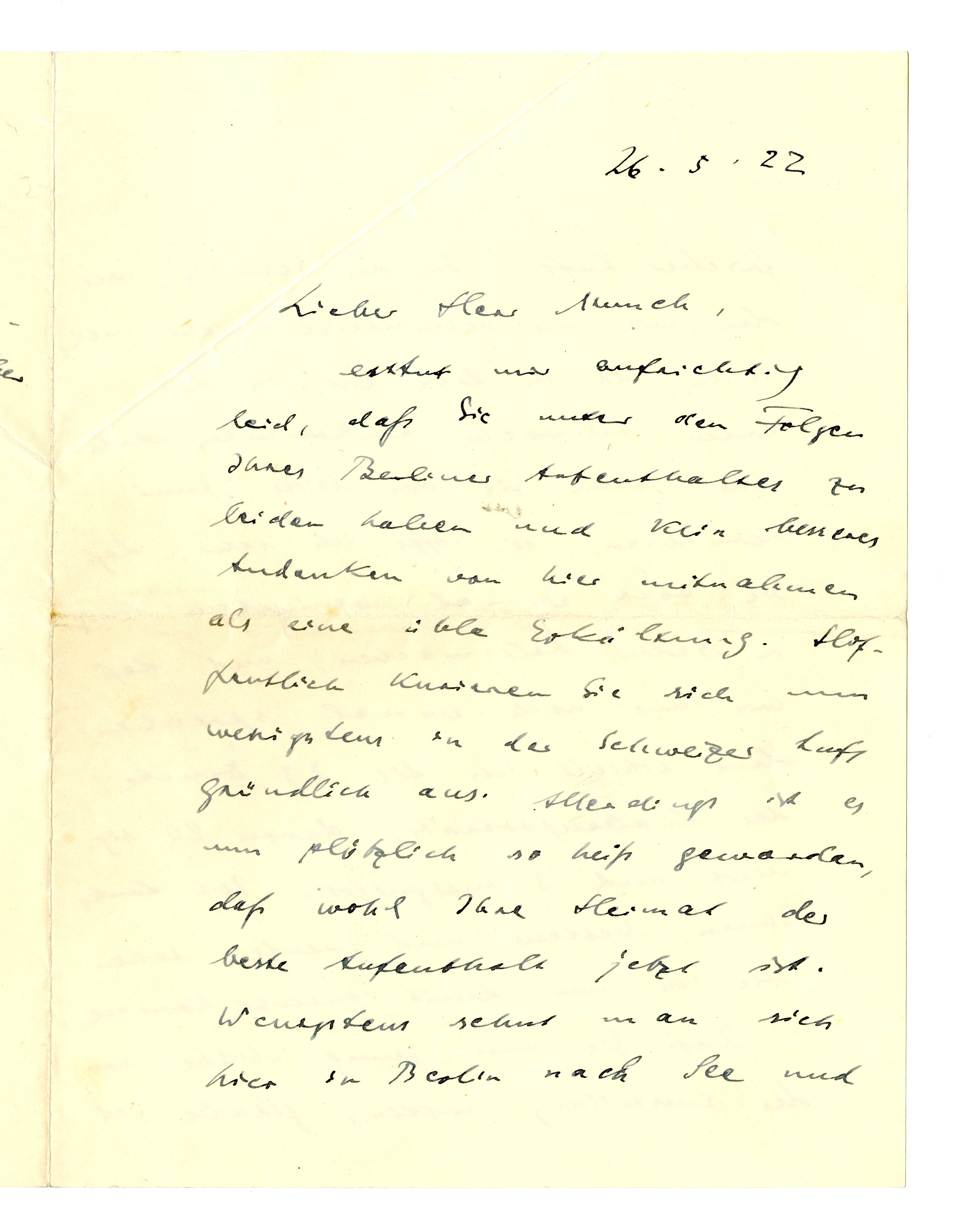 MM K 2335, Munchmuseet. Datert 26.05.1922. Brev fra Curt Glaser.