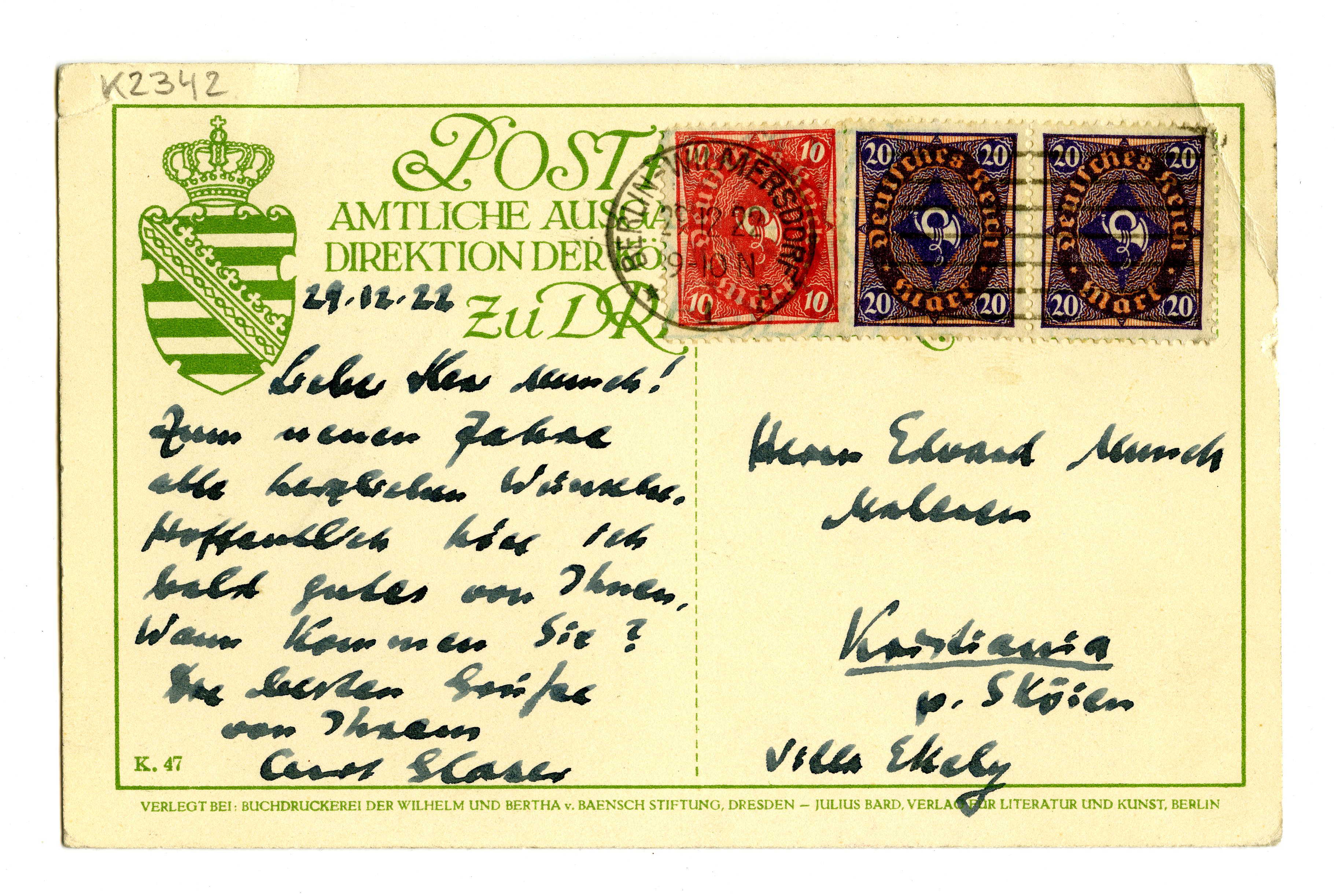 MM K 2342, Munchmuseet. Datert 29.12.1922. Brev fra Curt Glaser, Elsa Glaser.