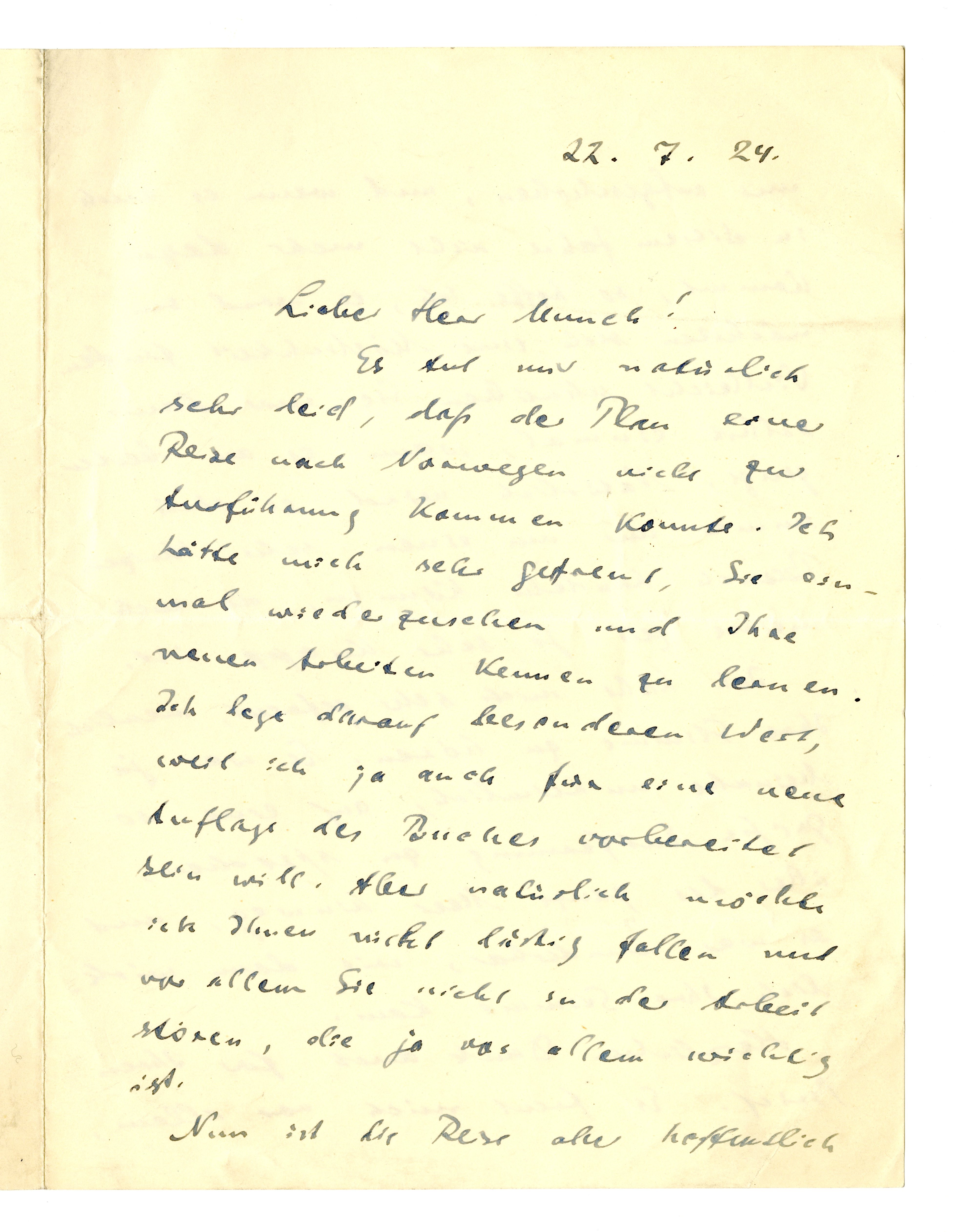 MM K 2350, Munchmuseet. Datert 22.07.1924. Brev fra Curt Glaser.