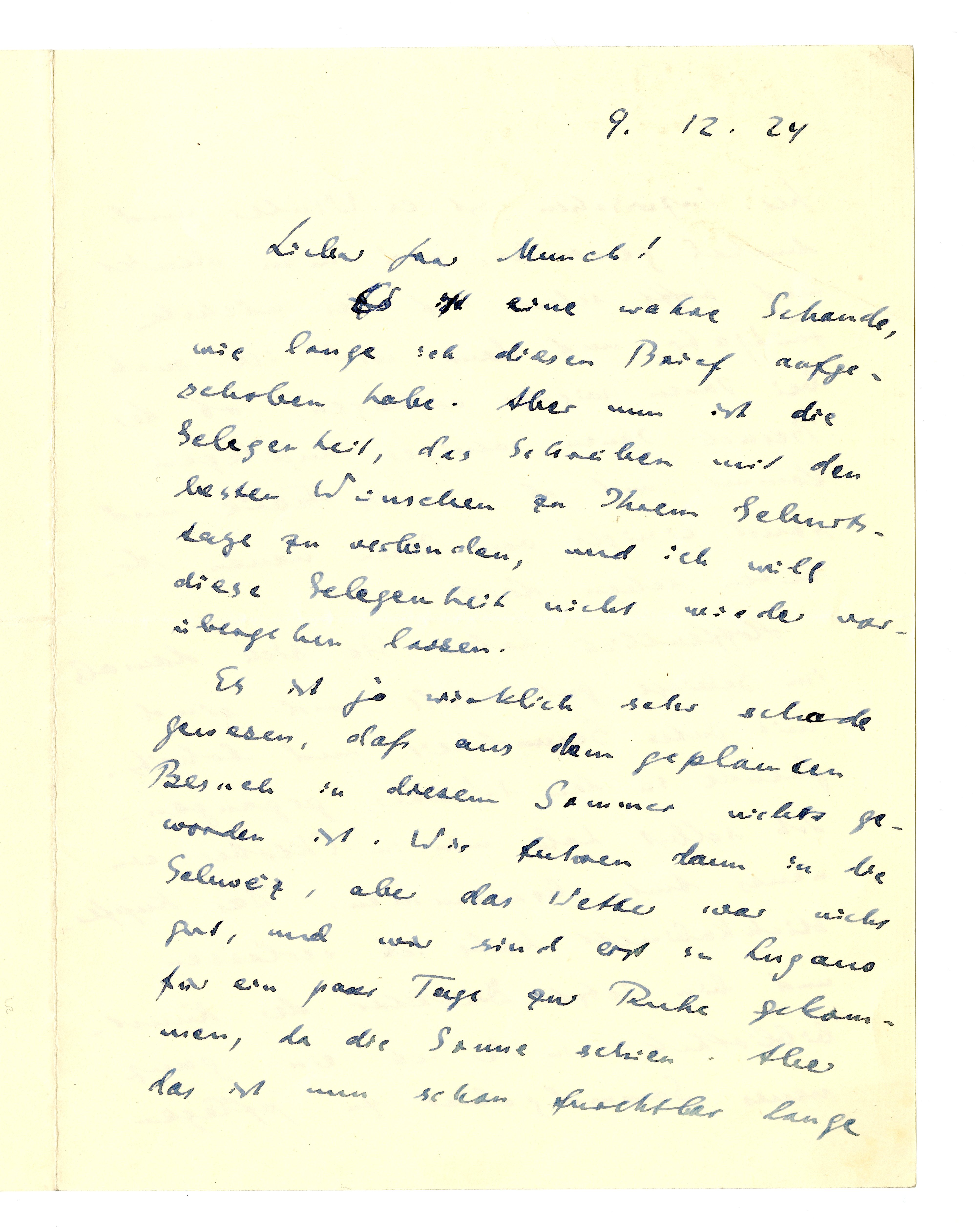 MM K 2351, Munchmuseet. Datert 09.12.1924. Brev fra Curt Glaser.