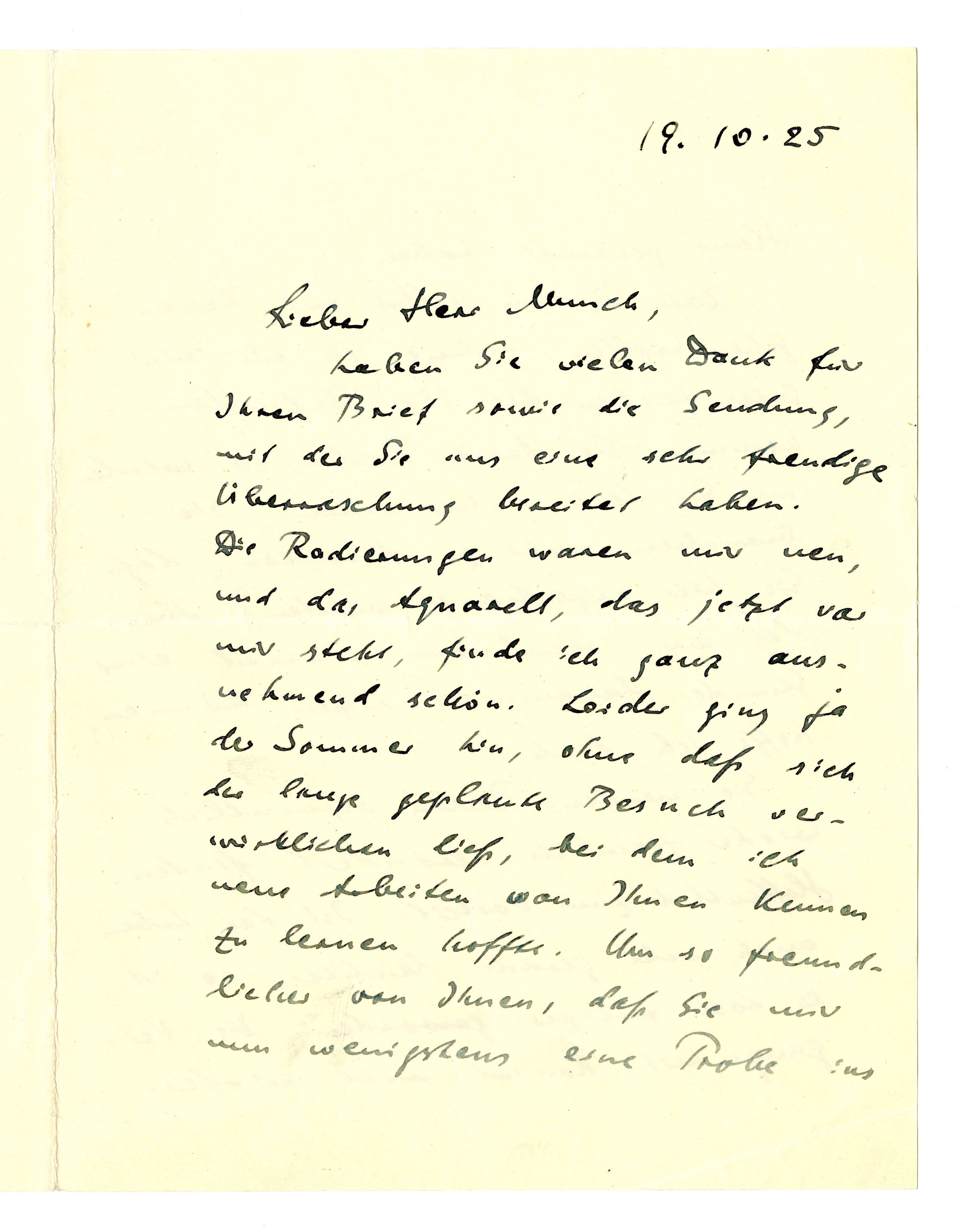 MM K 2353, Munchmuseet. Datert 19.10.1925. Brev fra Curt Glaser.