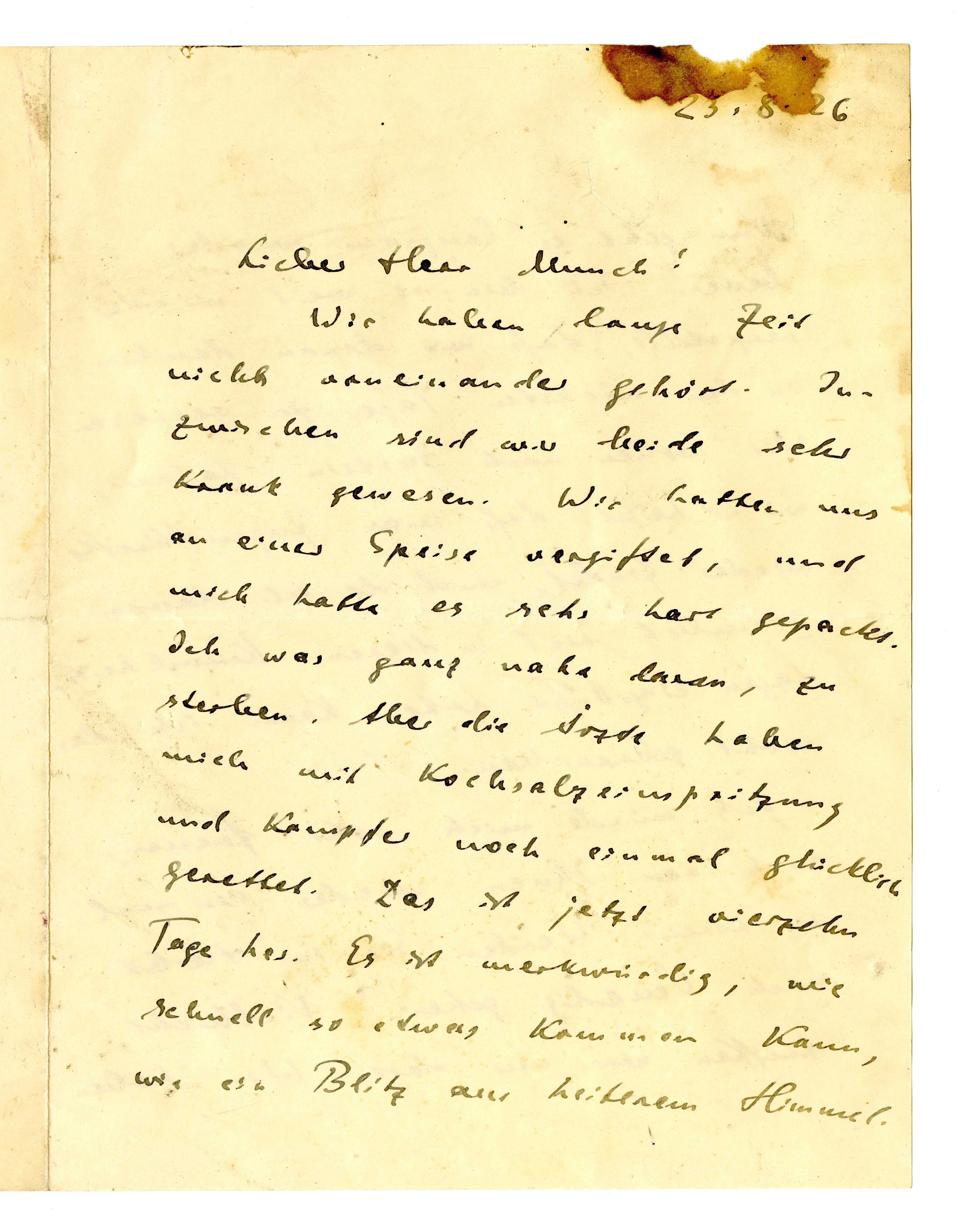 MM K 2355, Munchmuseet. Datert 23.08.1926. Brev fra Curt Glaser.