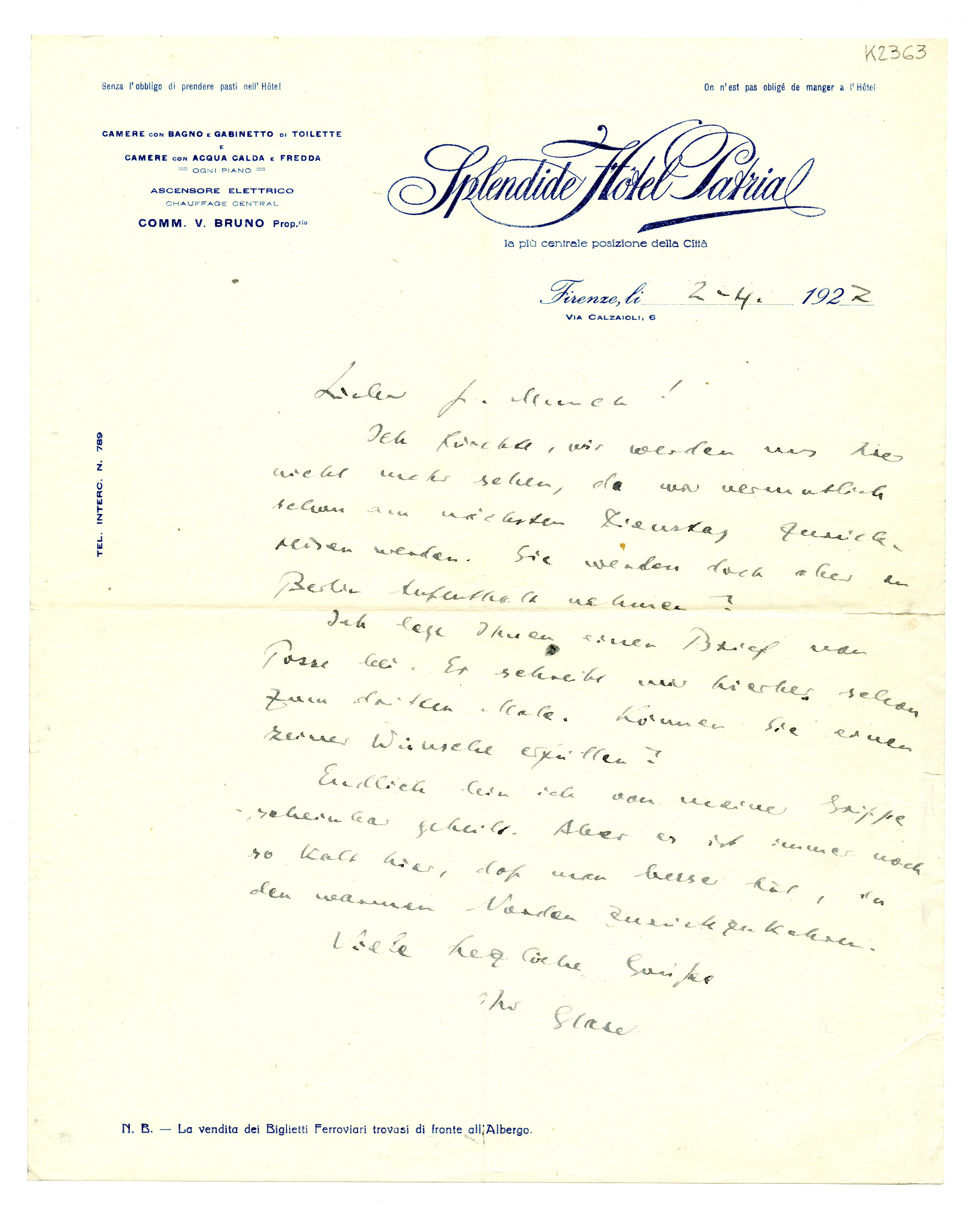 MM K 2363, Munchmuseet. Datert 02.04.1927. Brev fra Curt Glaser.