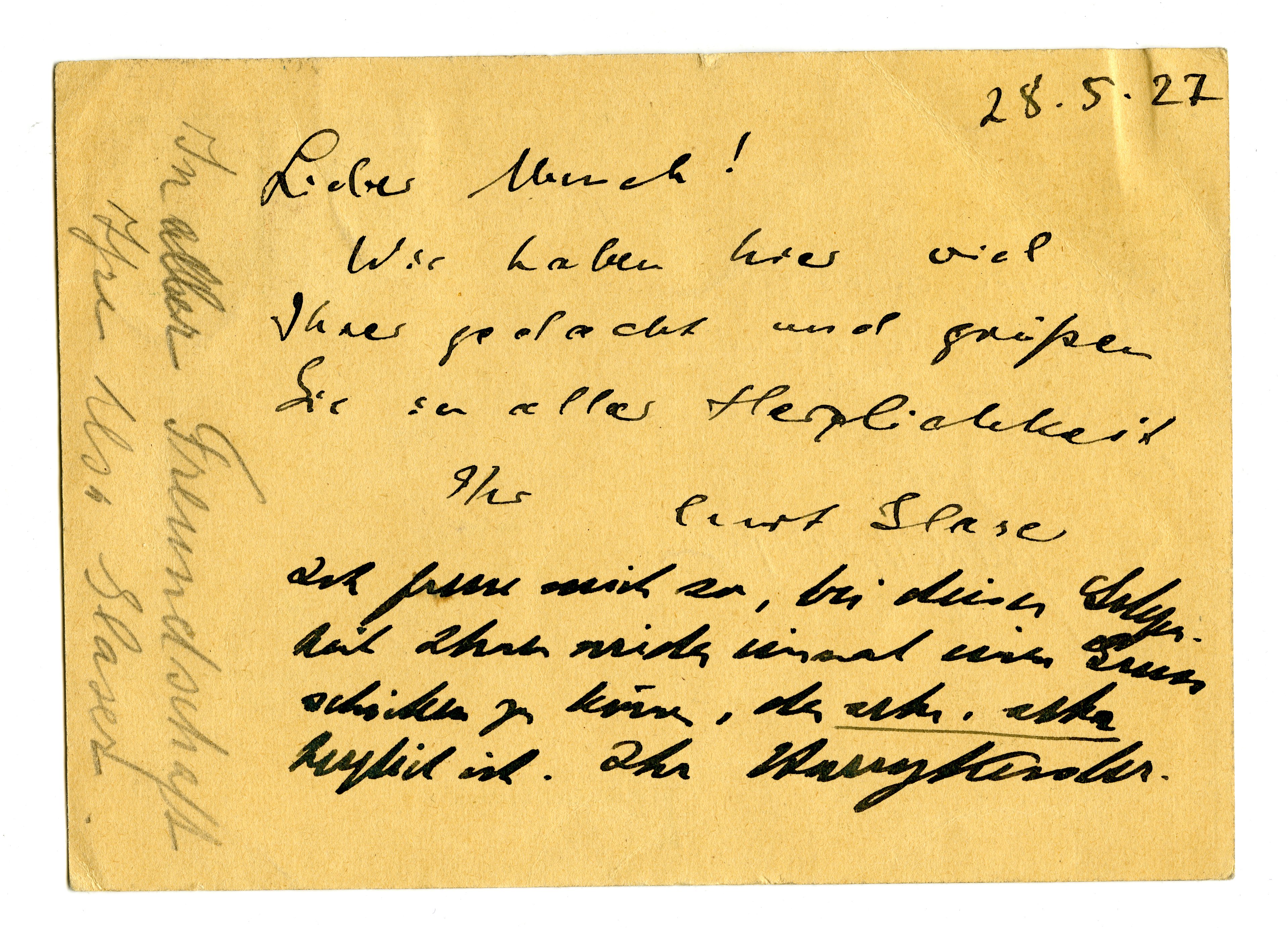 MM K 2365, Munchmuseet. Datert 28.05.1927. Brev fra Curt Glaser, Elsa Glaser, Harry Kessler, Zweigert.