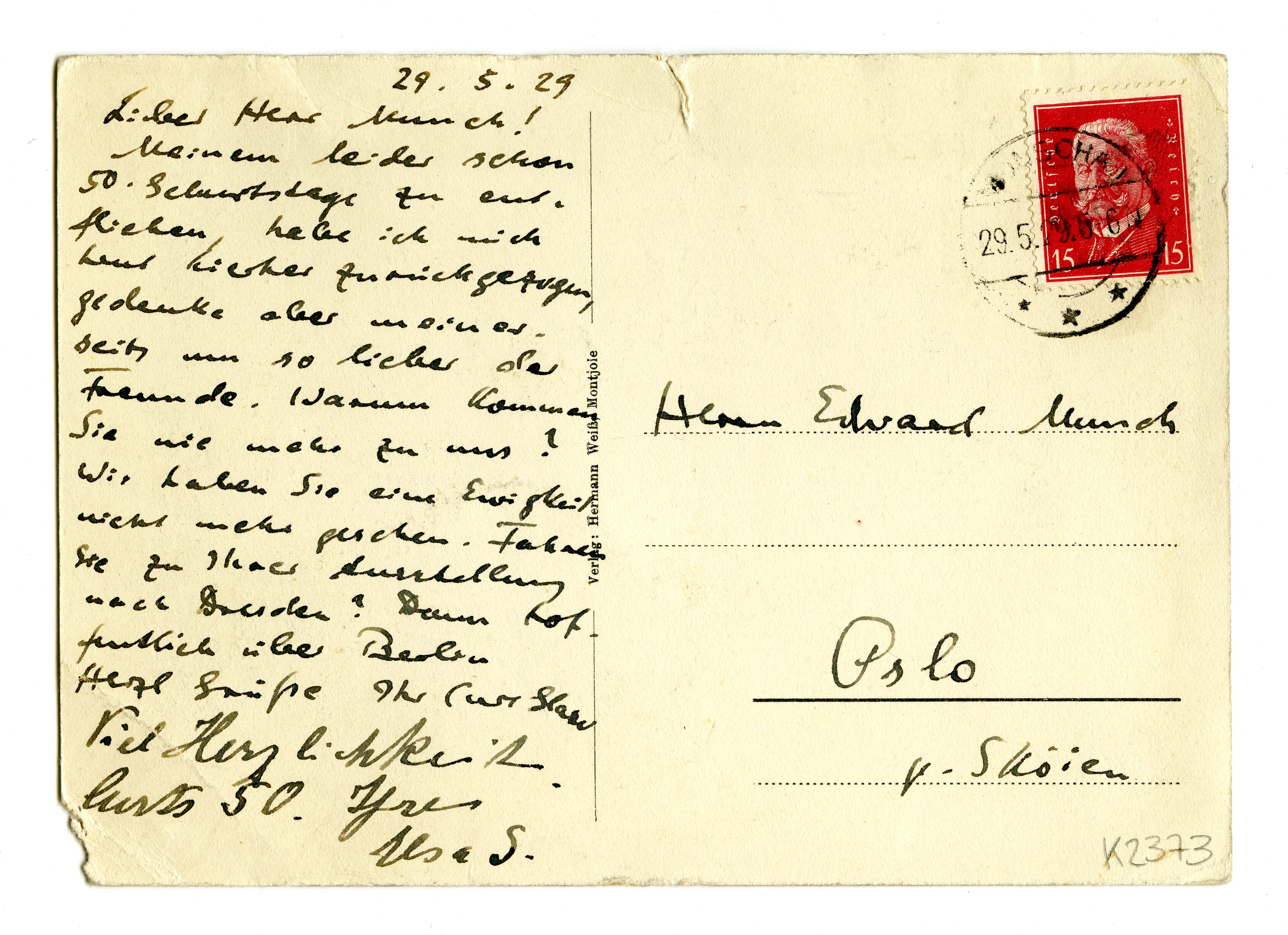 MM K 2373, Munchmuseet. Datert 29.05.1929. Brev fra Curt Glaser, Elsa Glaser.