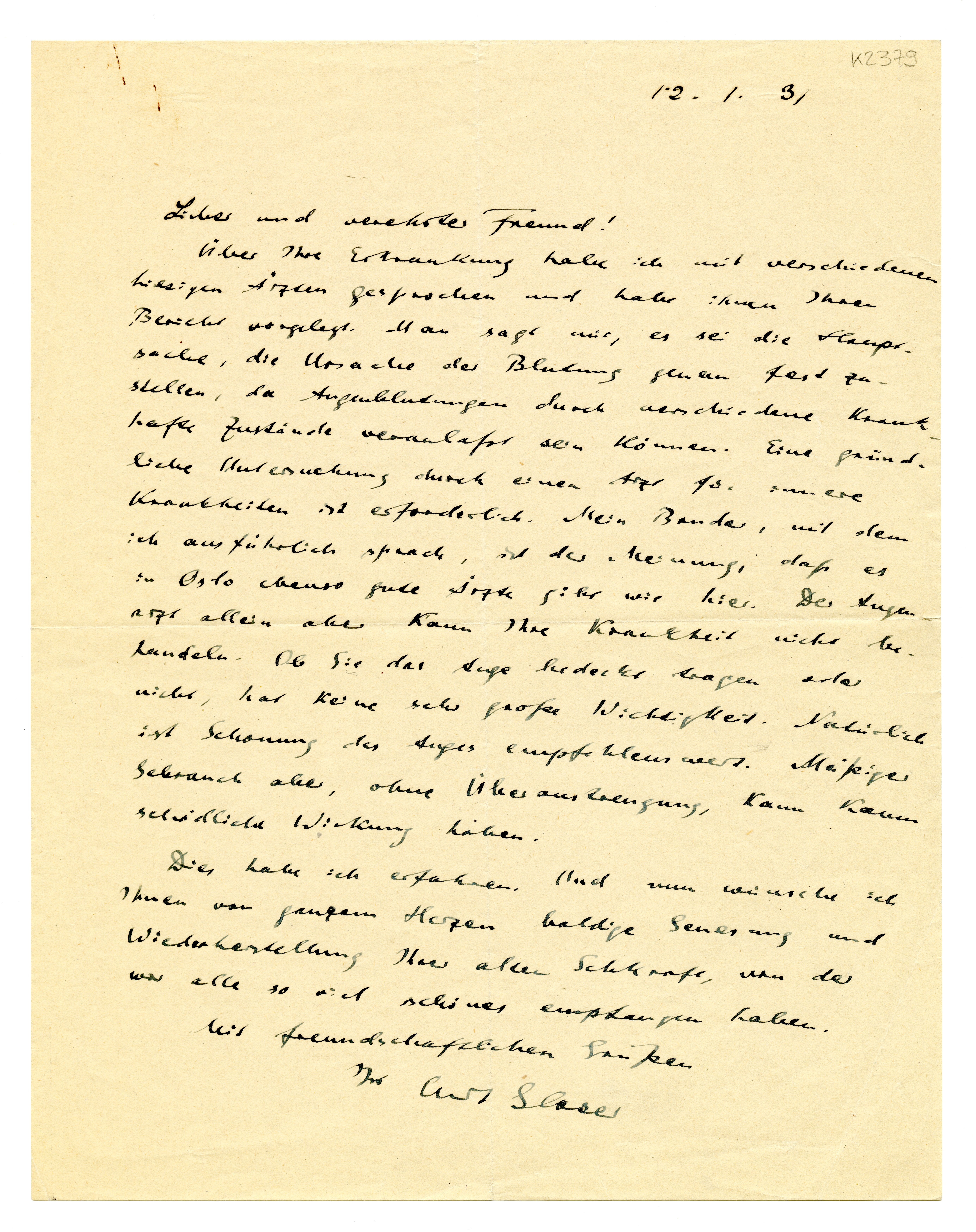 MM K 2379, Munchmuseet. Datert 12.01.1931. Brev fra Curt Glaser.