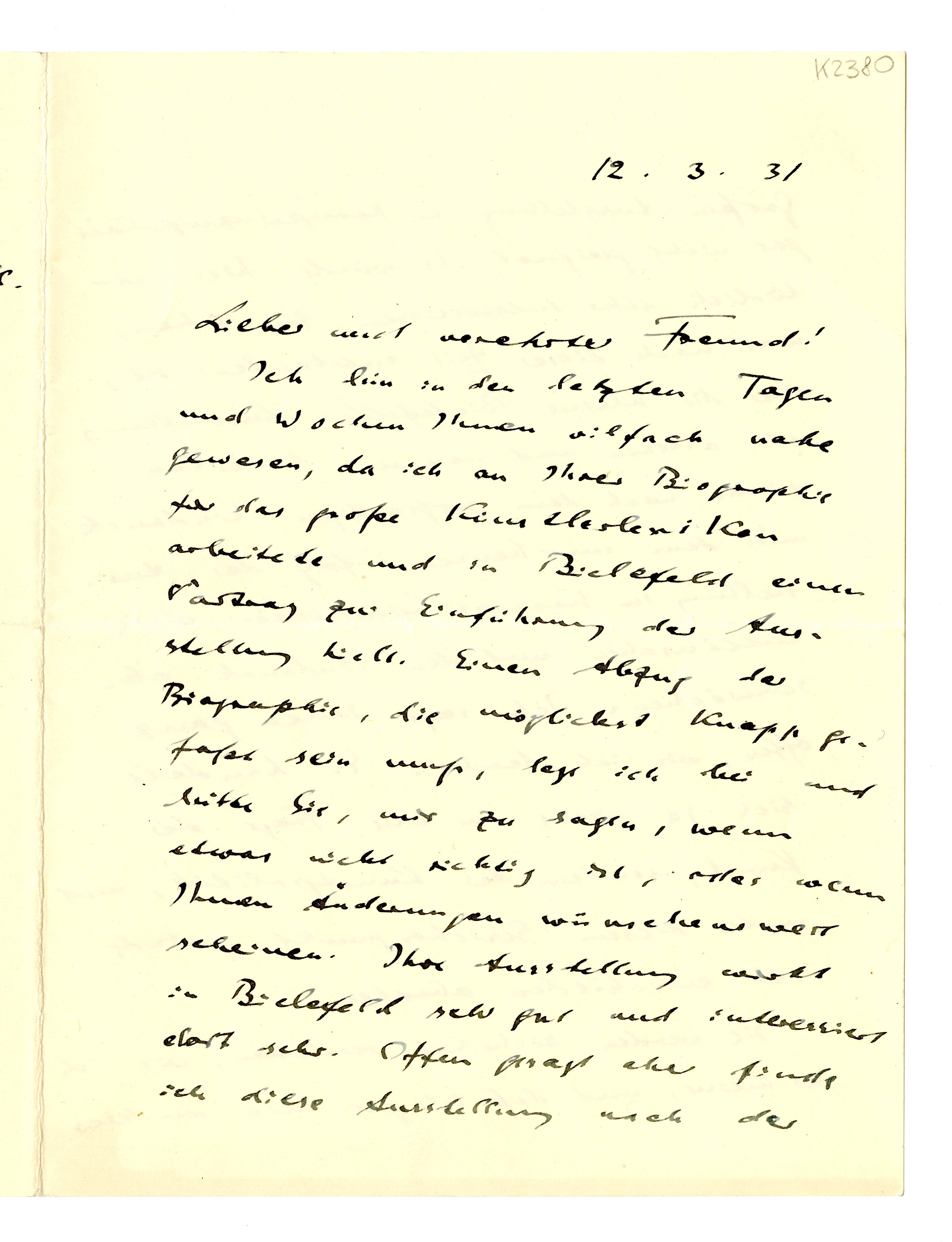 MM K 2380, Munchmuseet. Datert 12.03.1931. Brev fra Curt Glaser.