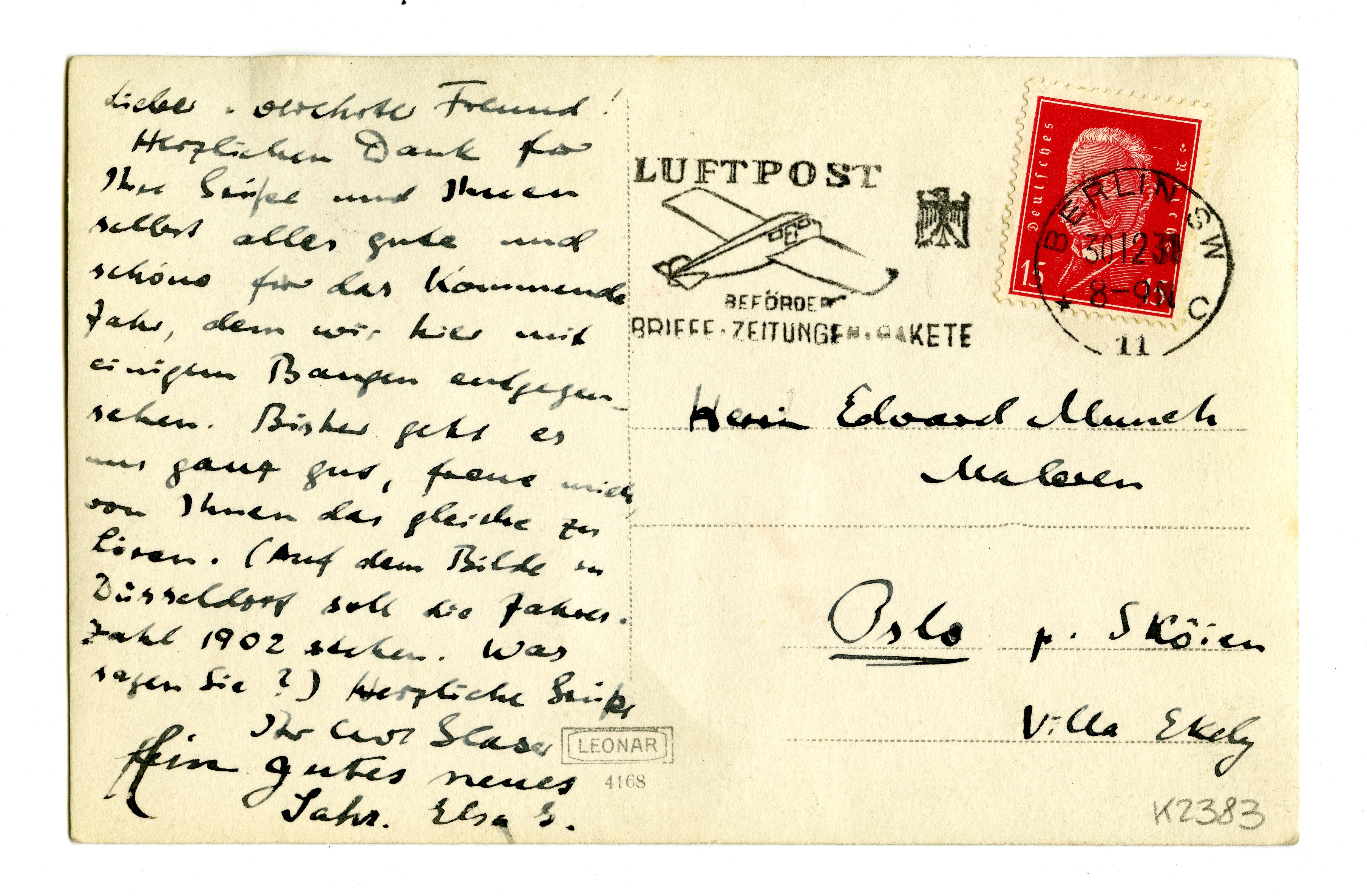 MM K 2383, Munchmuseet. Datert 30.12.1931. Brev fra Curt Glaser, Elsa Glaser.