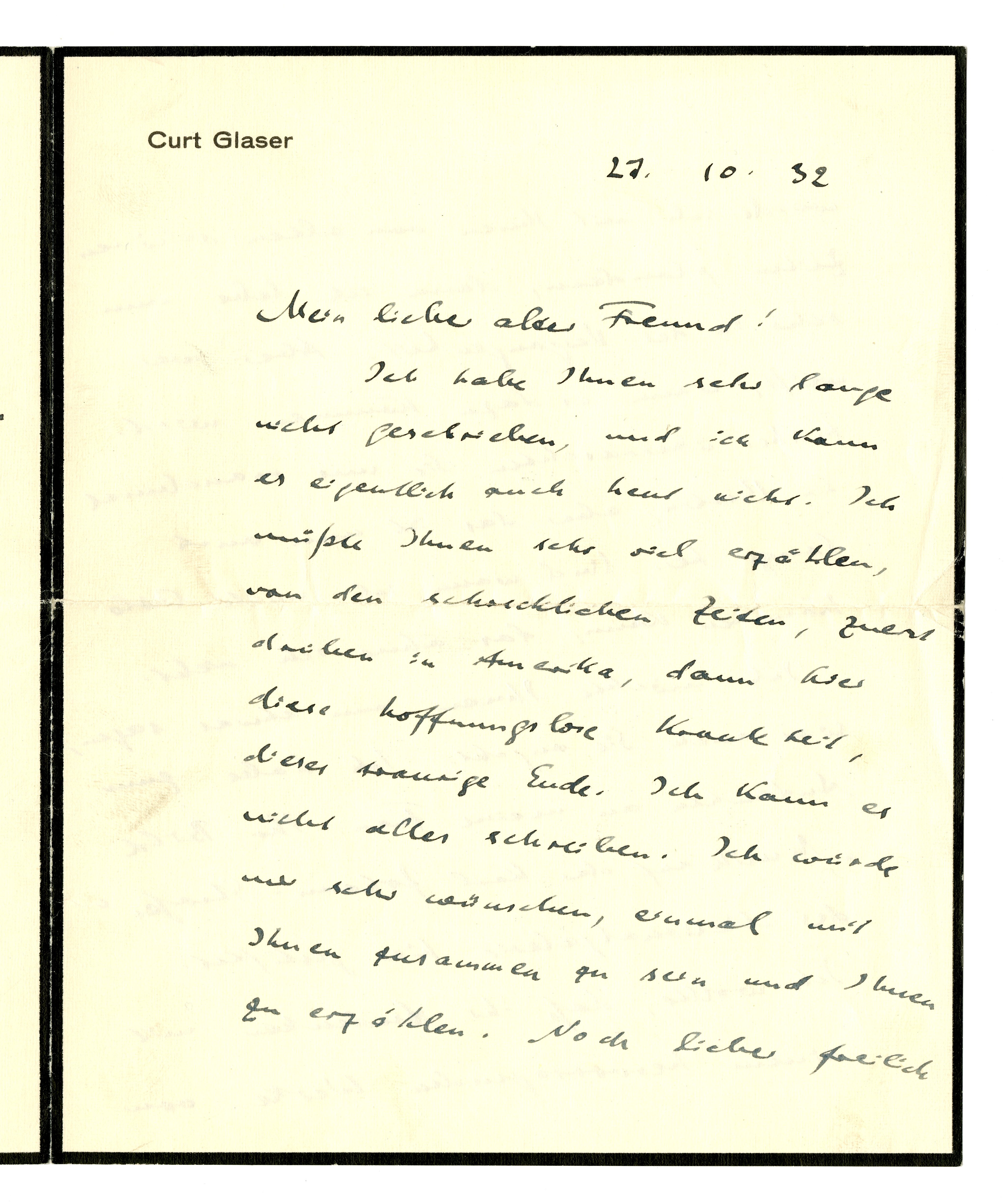 MM K 2385, Munchmuseet. Datert 27.10.1932. Brev fra Curt Glaser.