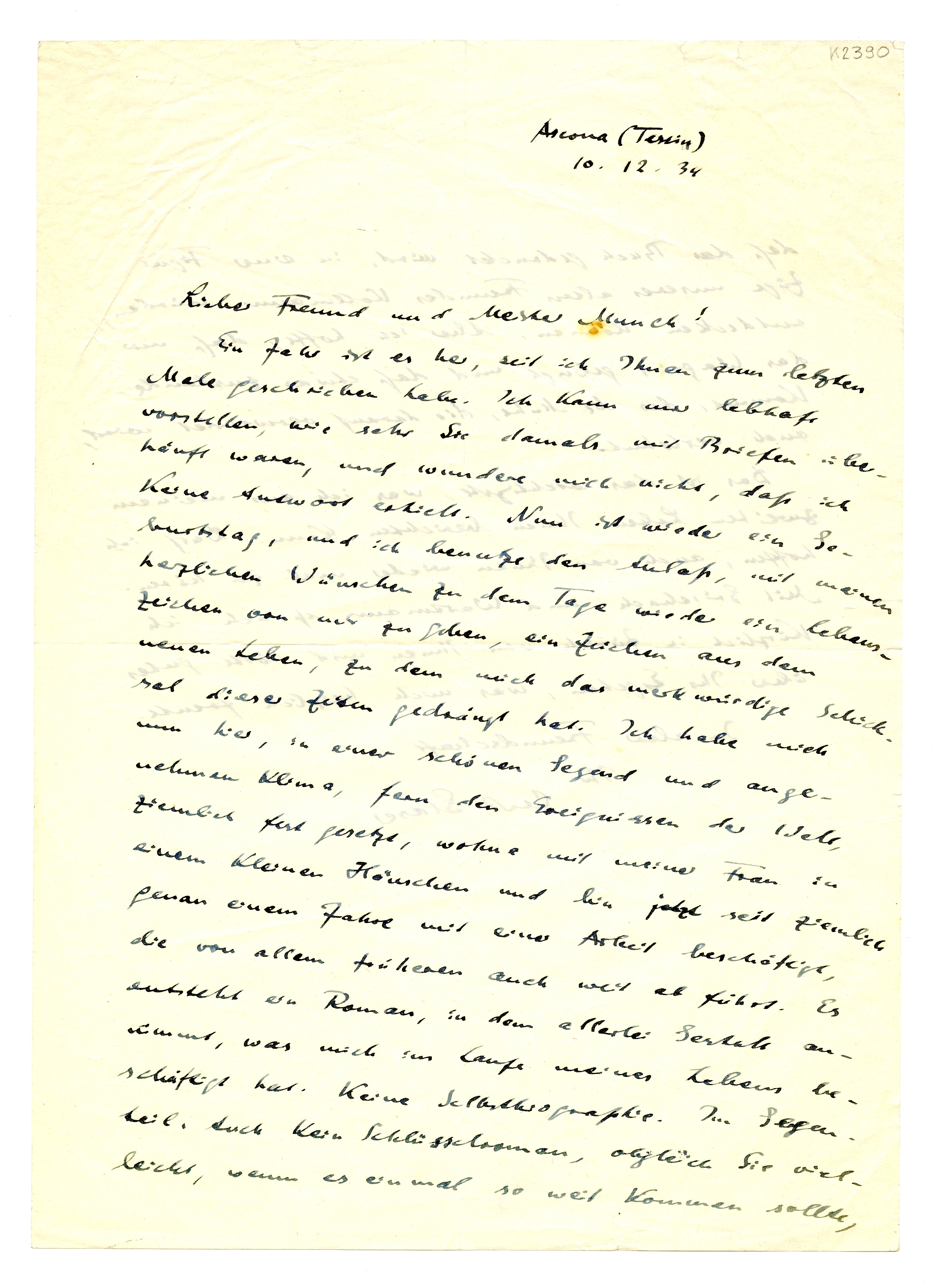 MM K 2390, Munchmuseet. Datert 10.12.1934. Brev fra Curt Glaser.