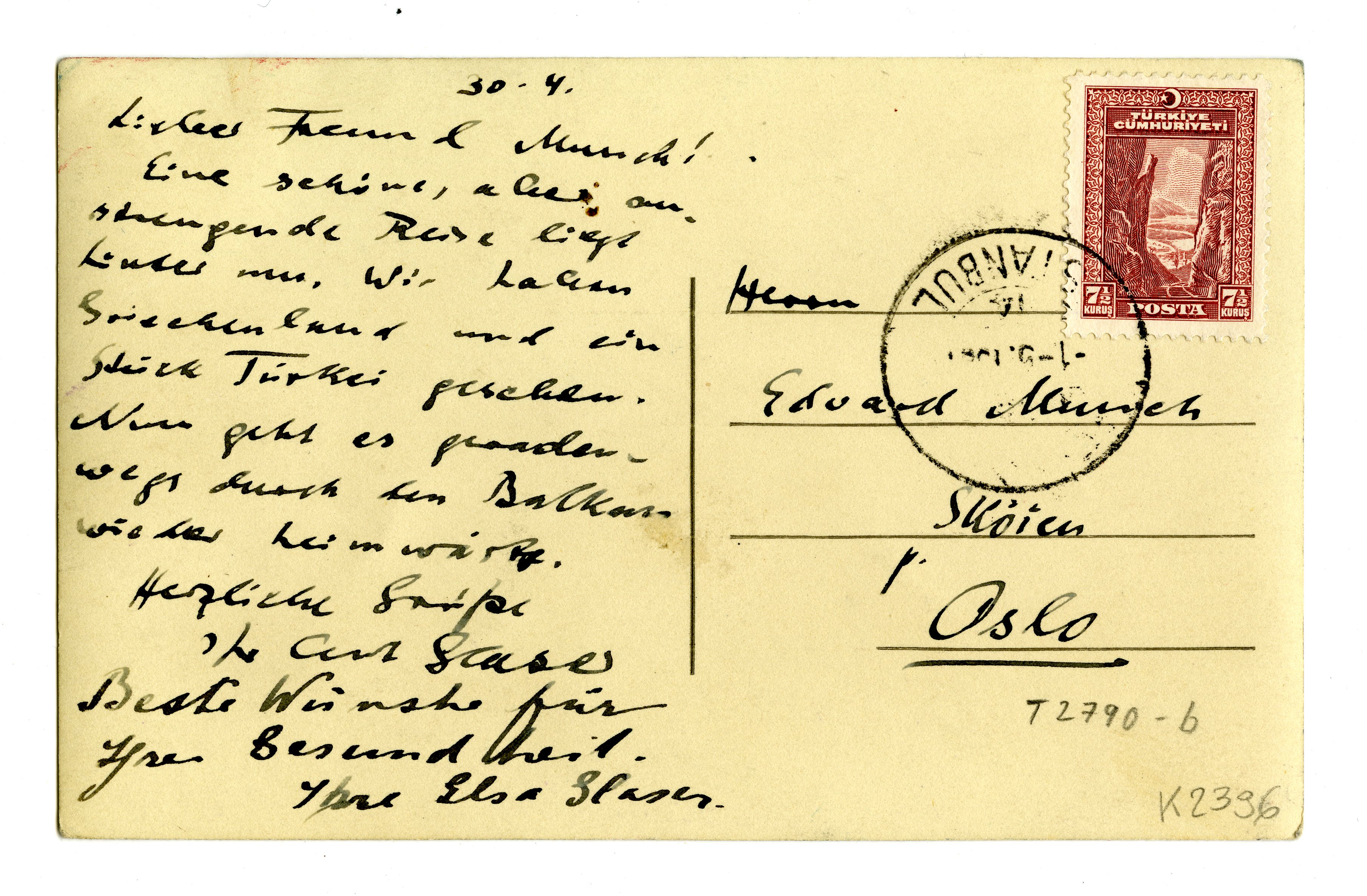 MM K 2396, Munchmuseet. Datert 30.04.[????]. Brev fra Curt Glaser, Elsa Glaser.