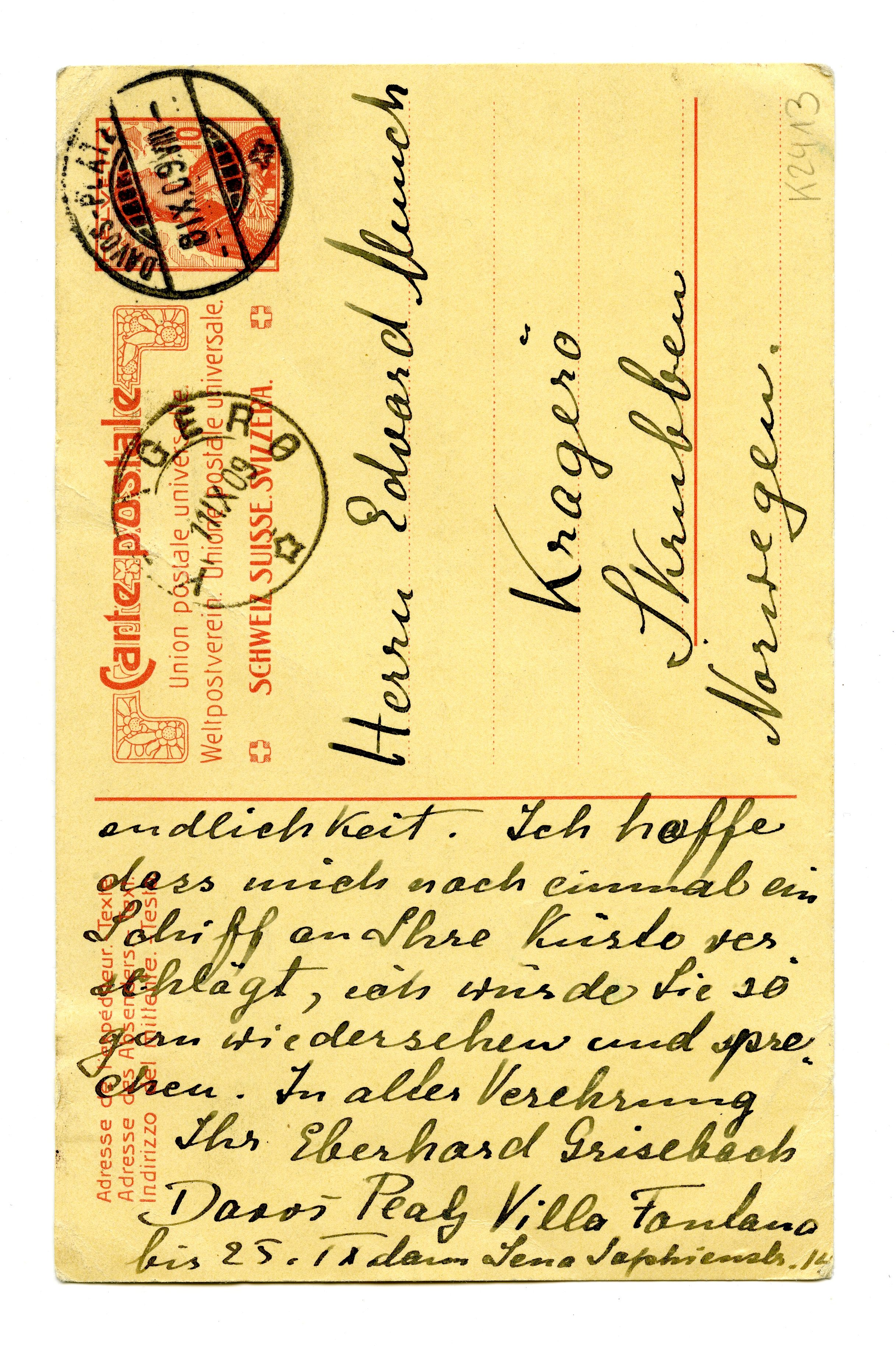 MM K 2413, Munchmuseet. Datert 08.09.1909. Brev fra Eberhard Grisebach.