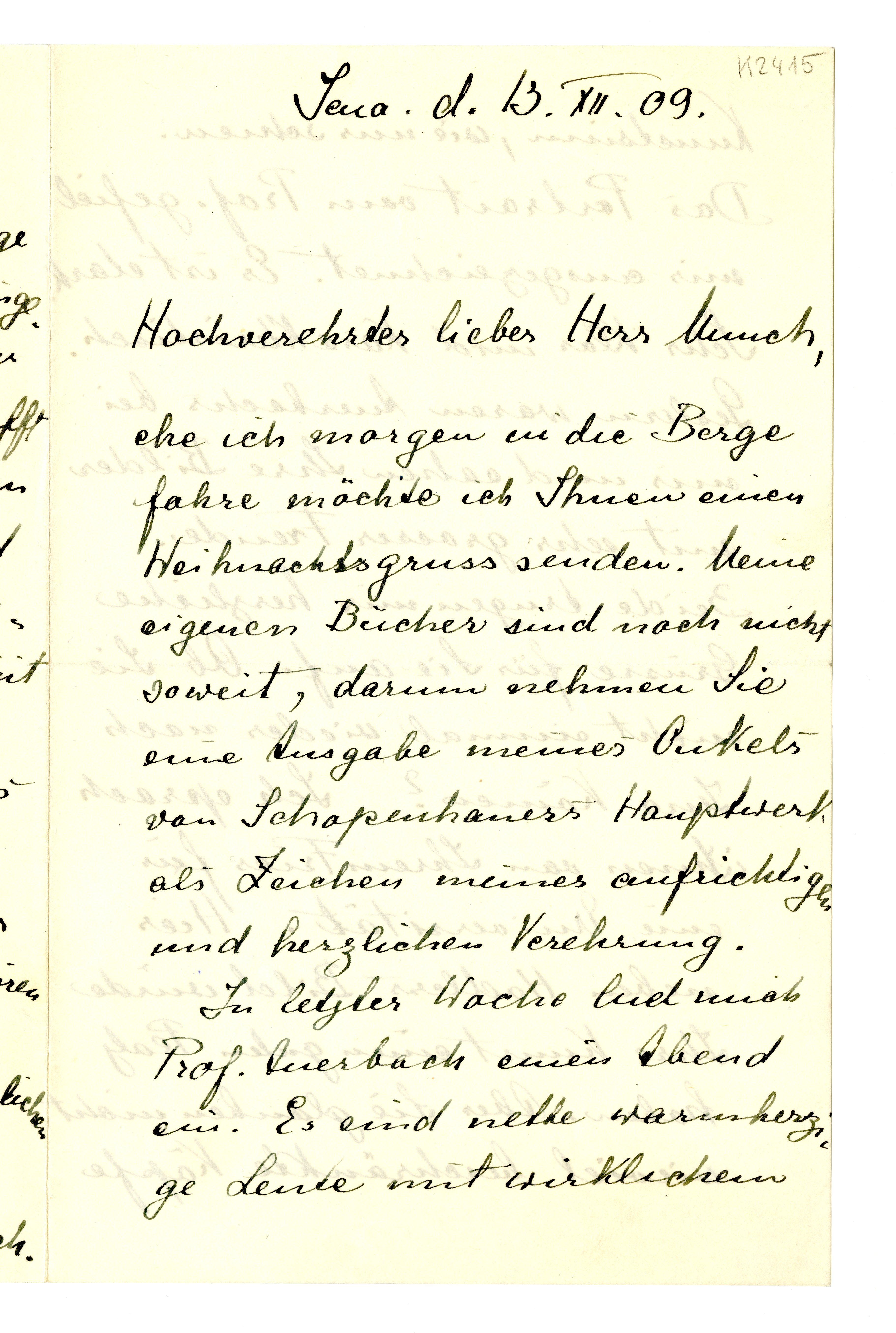 MM K 2415, Munchmuseet. Datert 13.12.1909. Brev fra Eberhard Grisebach.