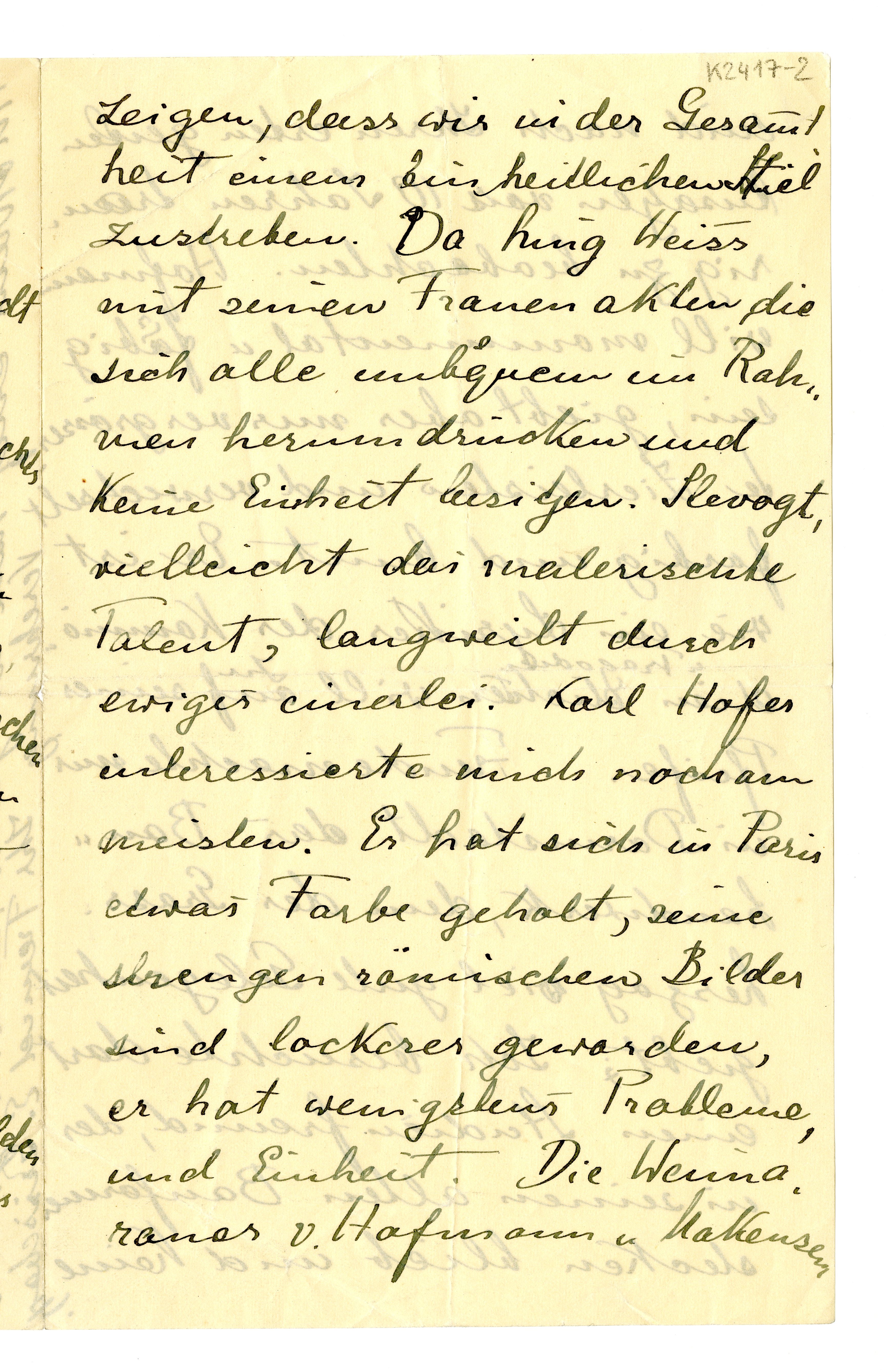 MM K 2417, Munchmuseet. Datert 28.08.1910. Brev fra Eberhard Grisebach.