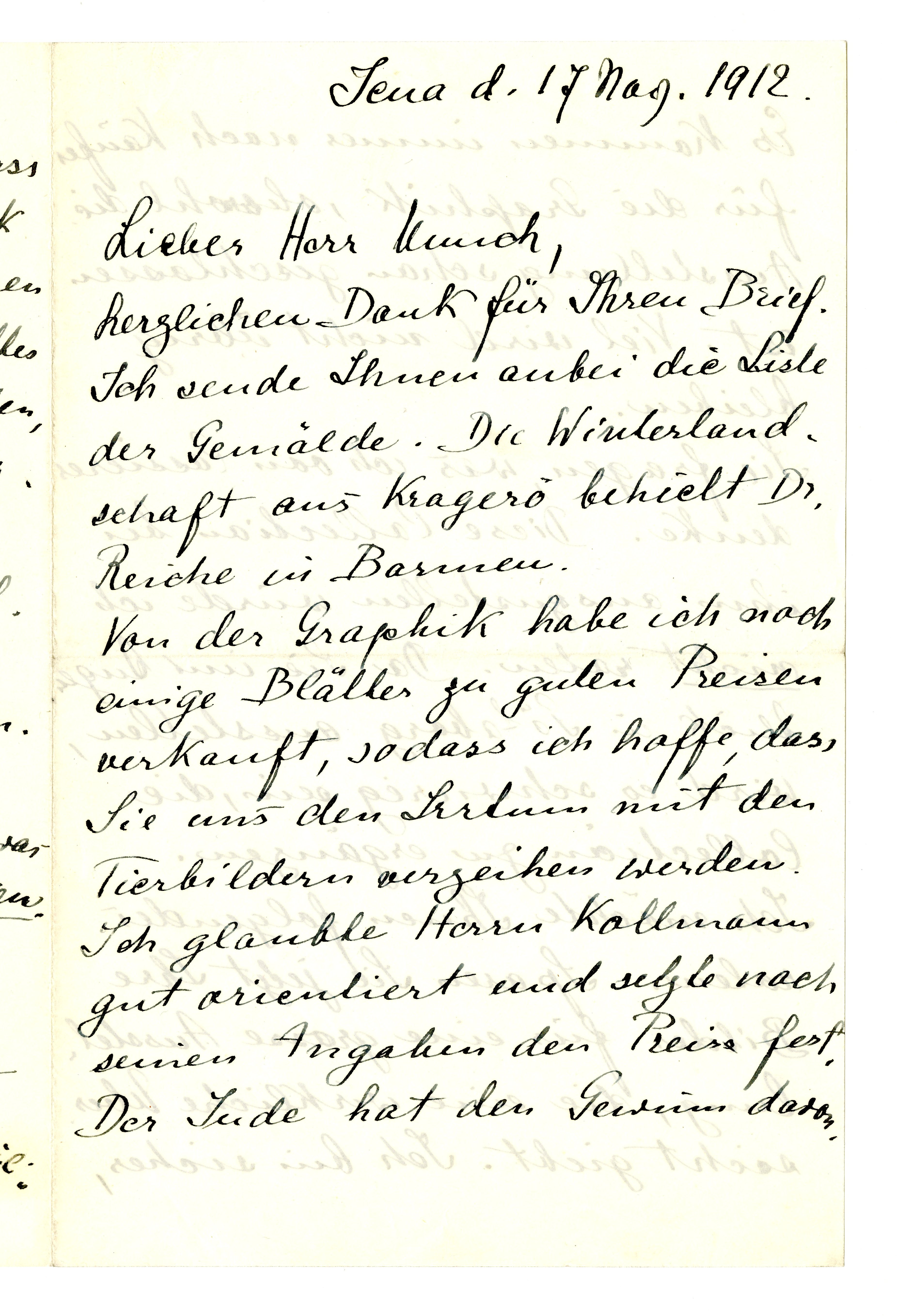 MM K 2425, Munchmuseet. Datert 17.11.1912. Brev fra Eberhard Grisebach.