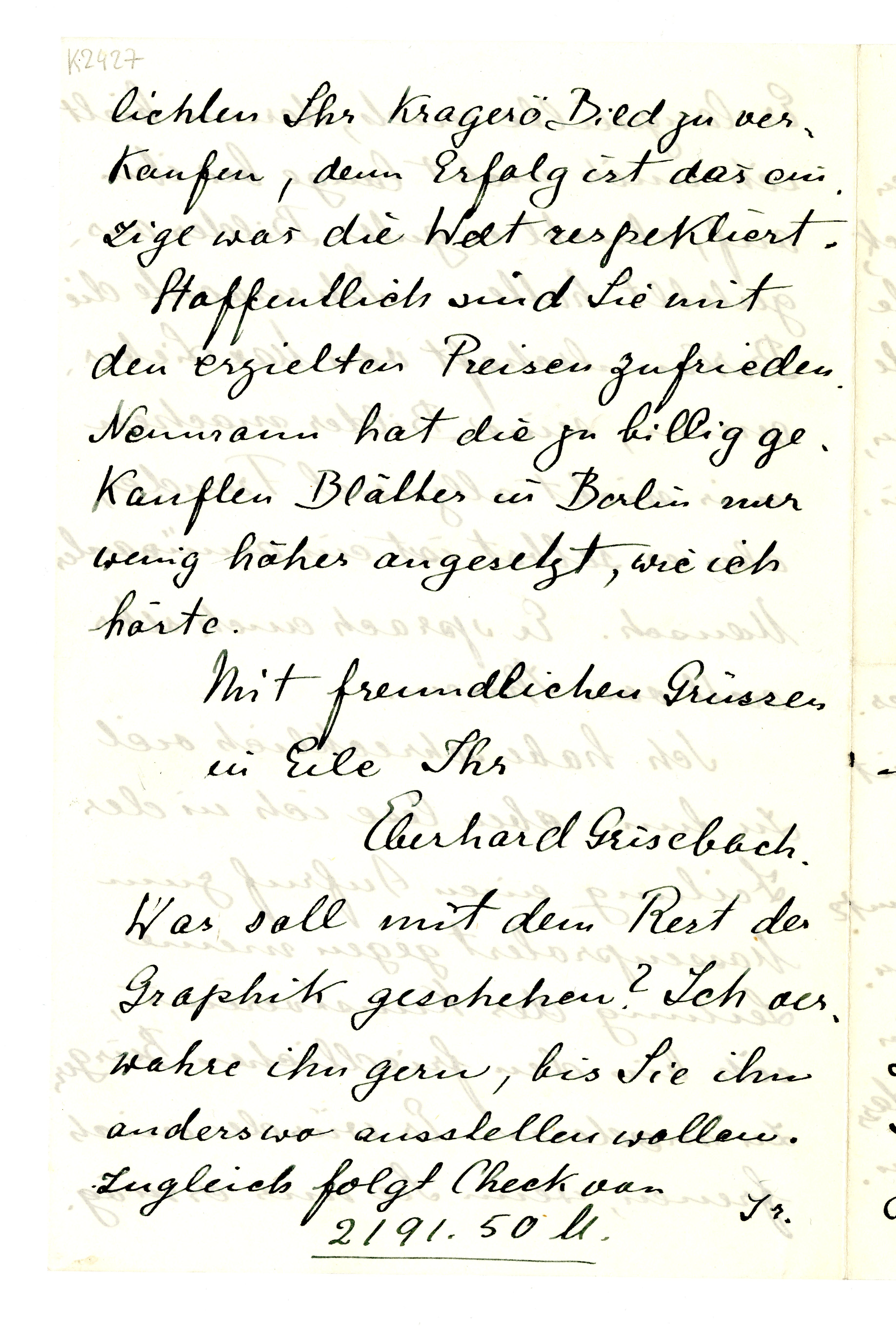 MM K 2427, Munchmuseet. Datert 22.01.1913. Brev fra Eberhard Grisebach.