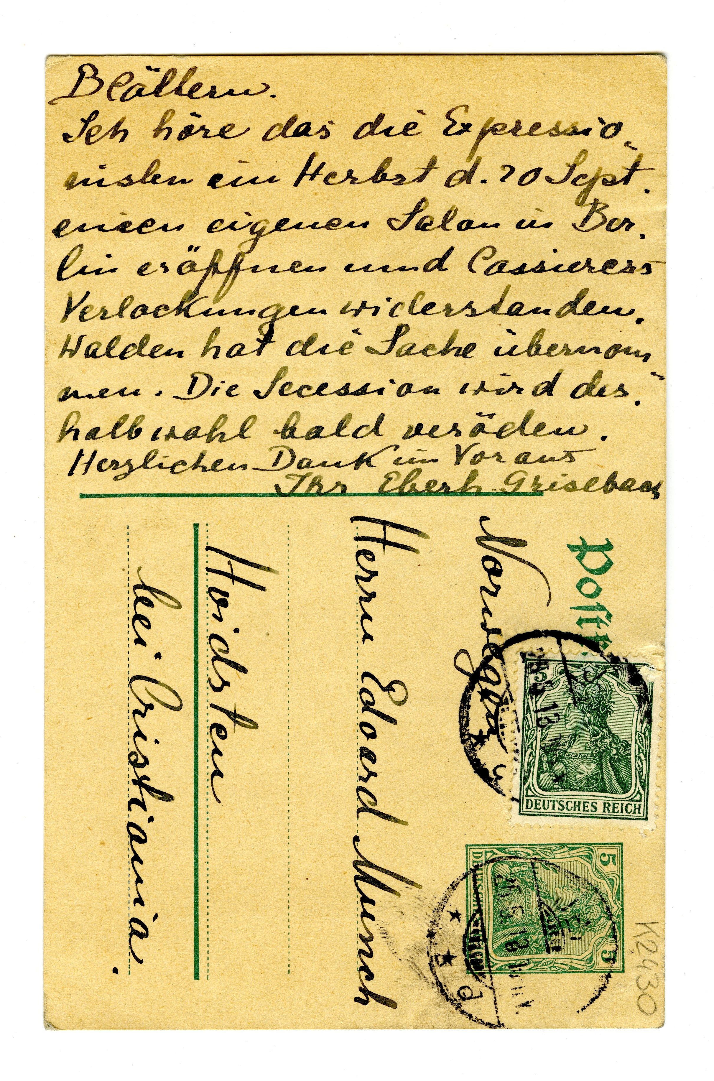 MM K 2430, Munchmuseet. Datert 23.05.1913. Brev fra Eberhard Grisebach.