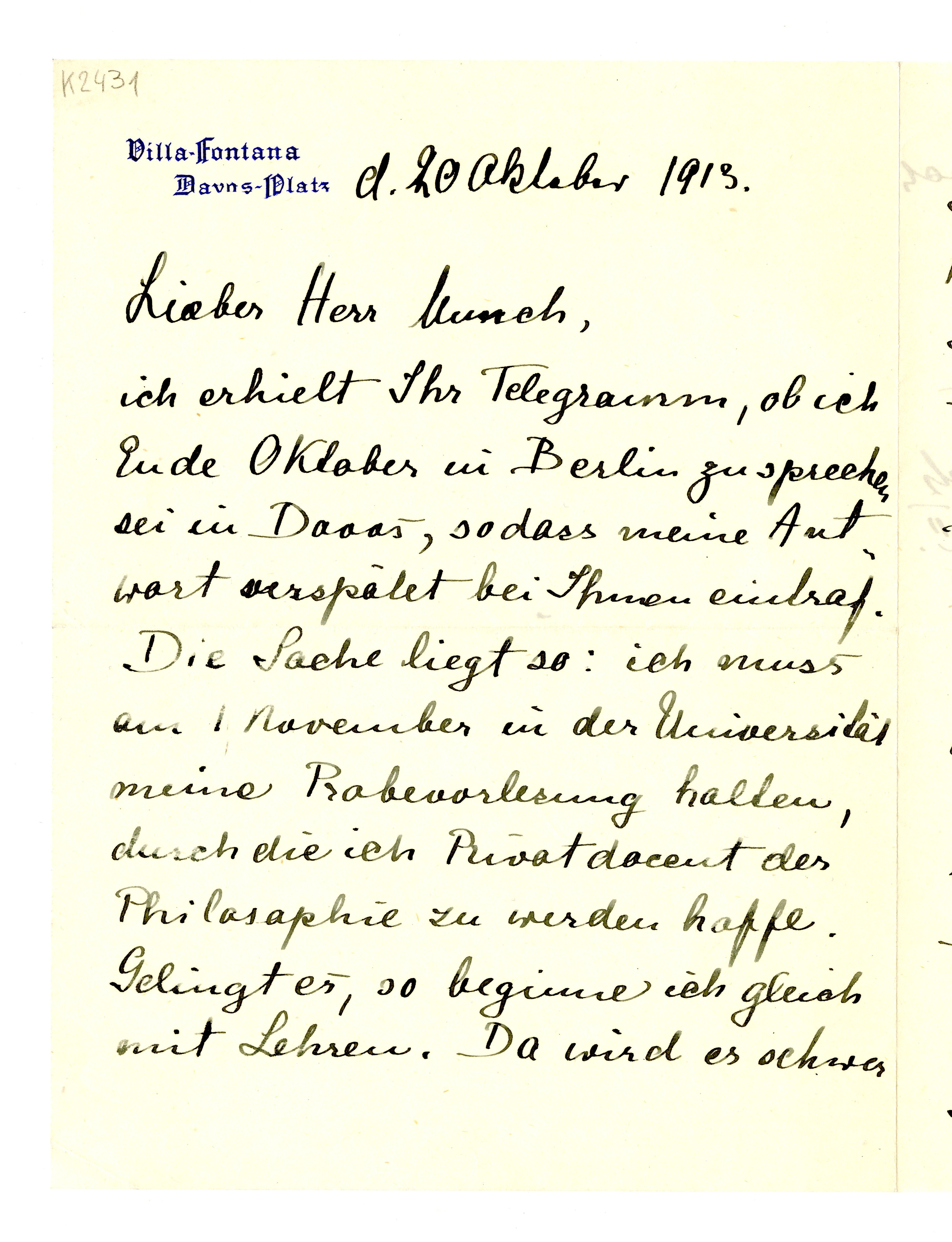 MM K 2431, Munchmuseet. Datert 20.10.1913. Brev fra Eberhard Grisebach.