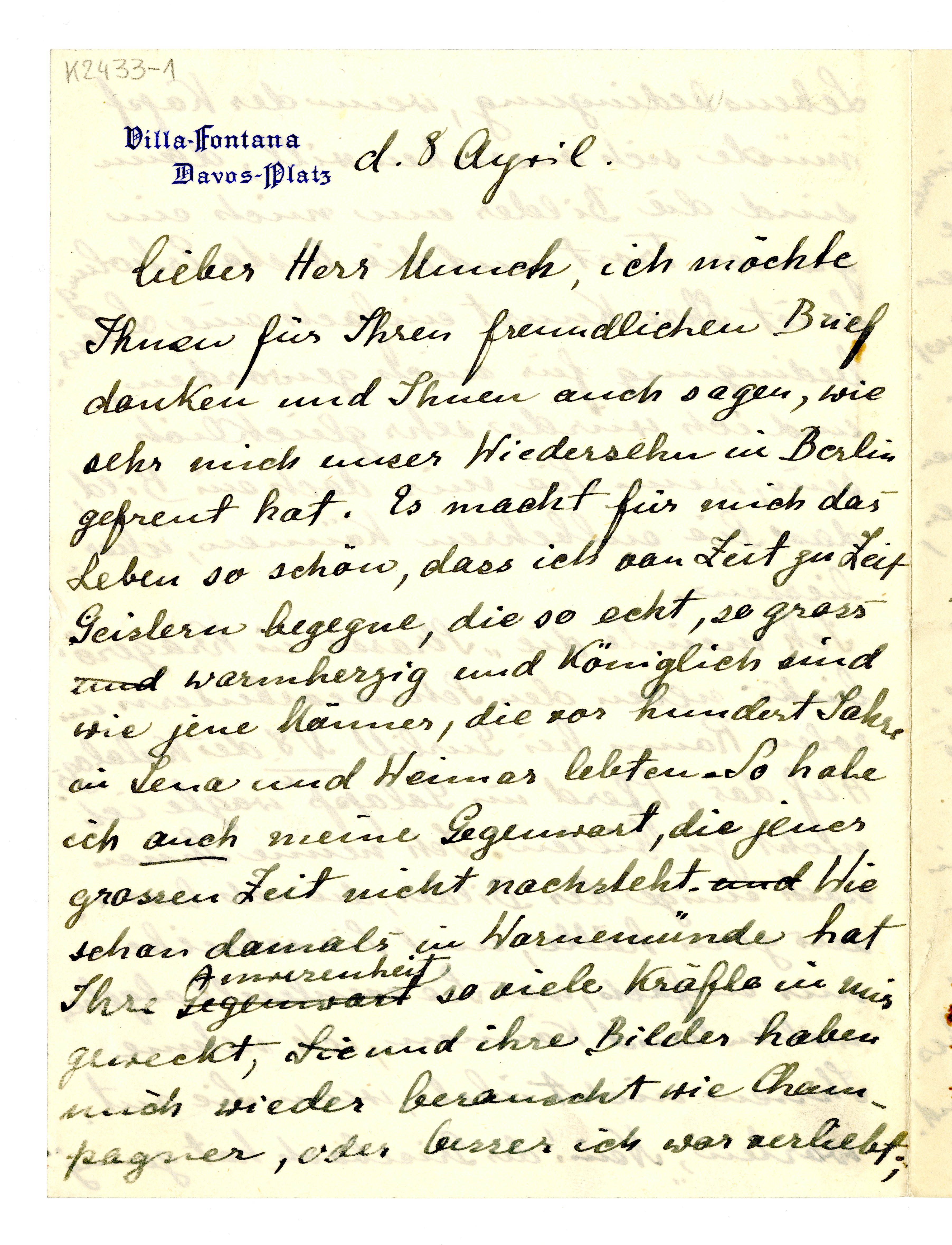 MM K 2433, Munchmuseet. Datert 08.04.[????]. Brev fra Eberhard Grisebach.