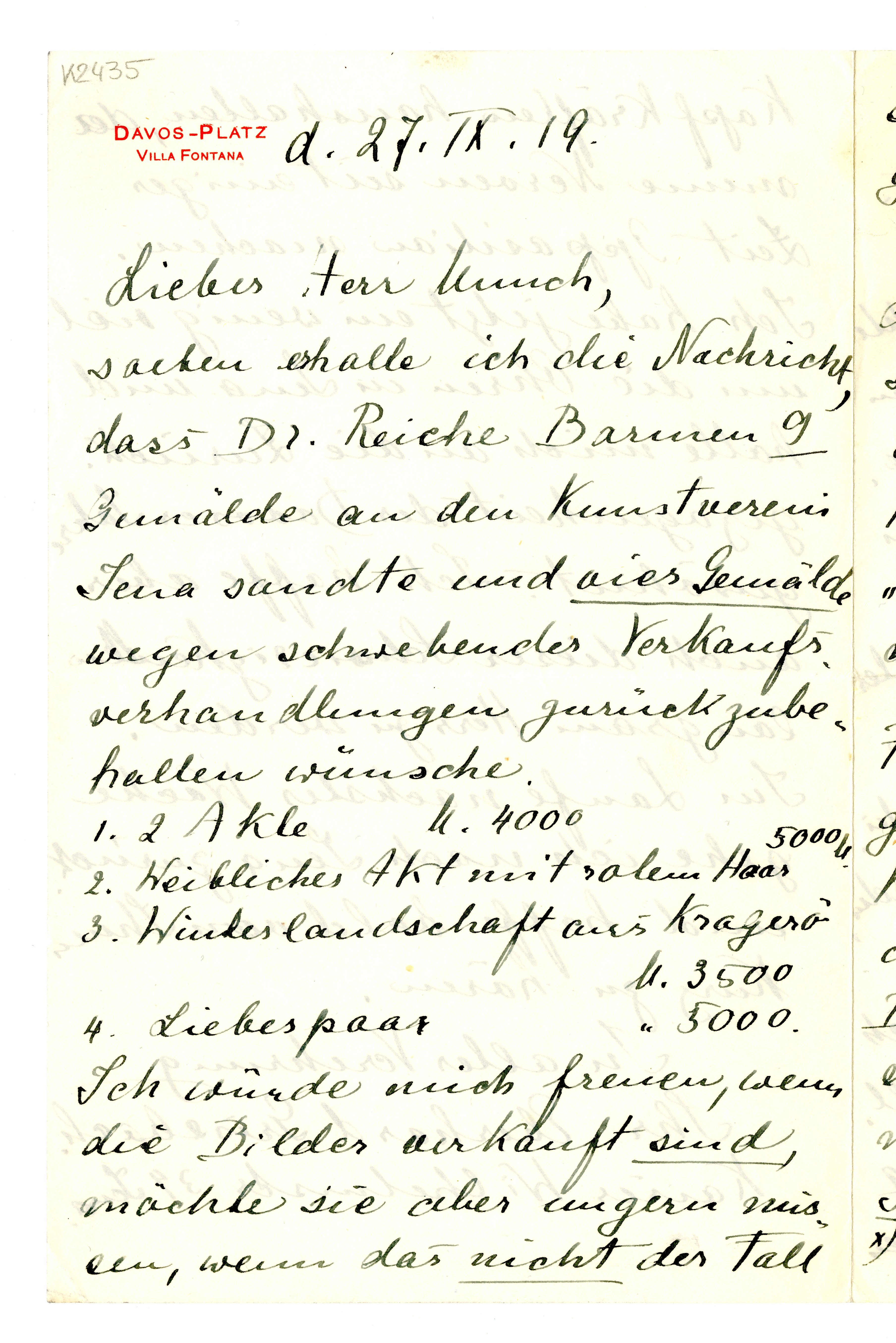 MM K 2435, Munchmuseet. Datert 27.11.1919. Brev fra Eberhard Grisebach.