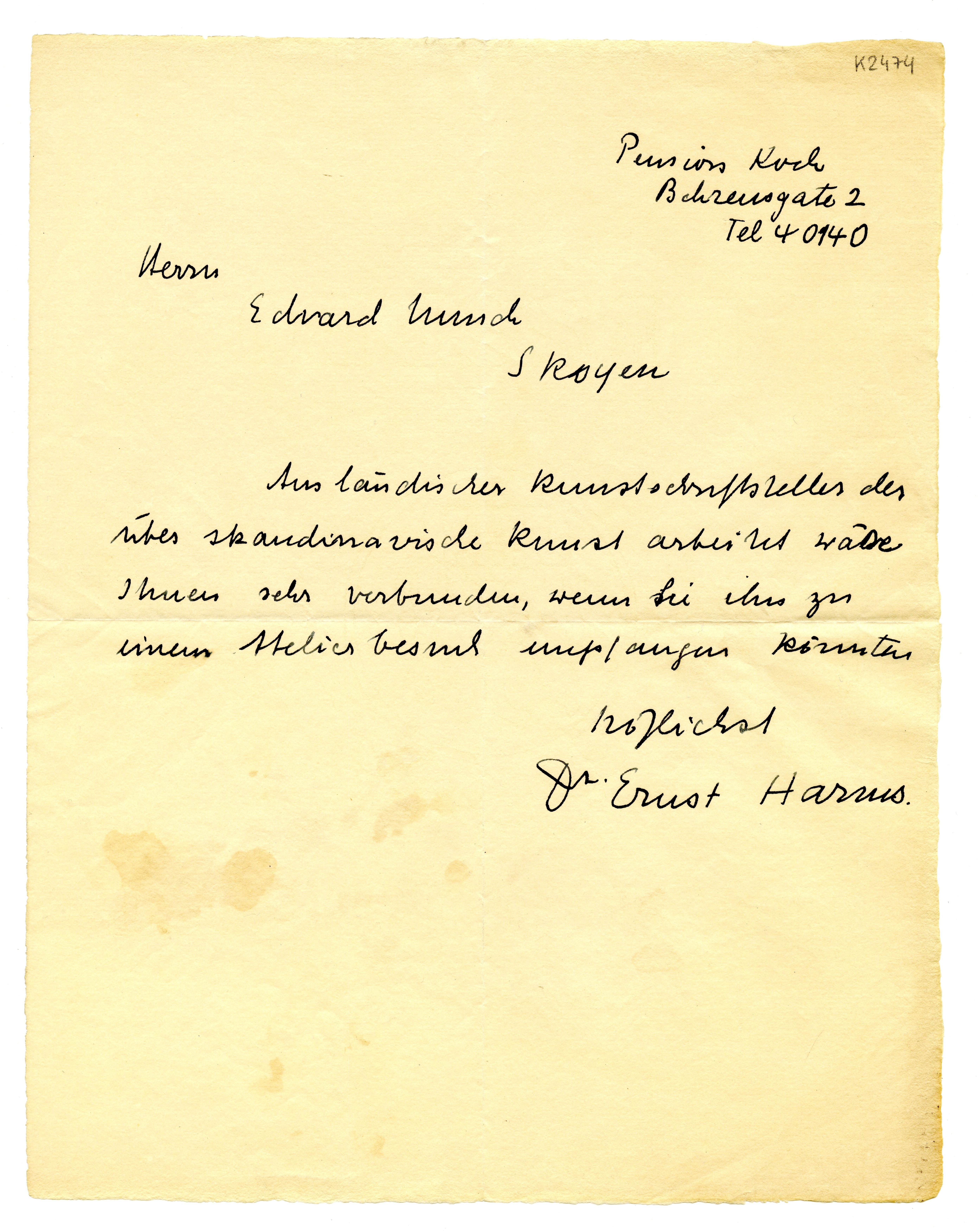 MM K 2474, Munchmuseet. Ikke datert. Brev fra Ernst Harms.