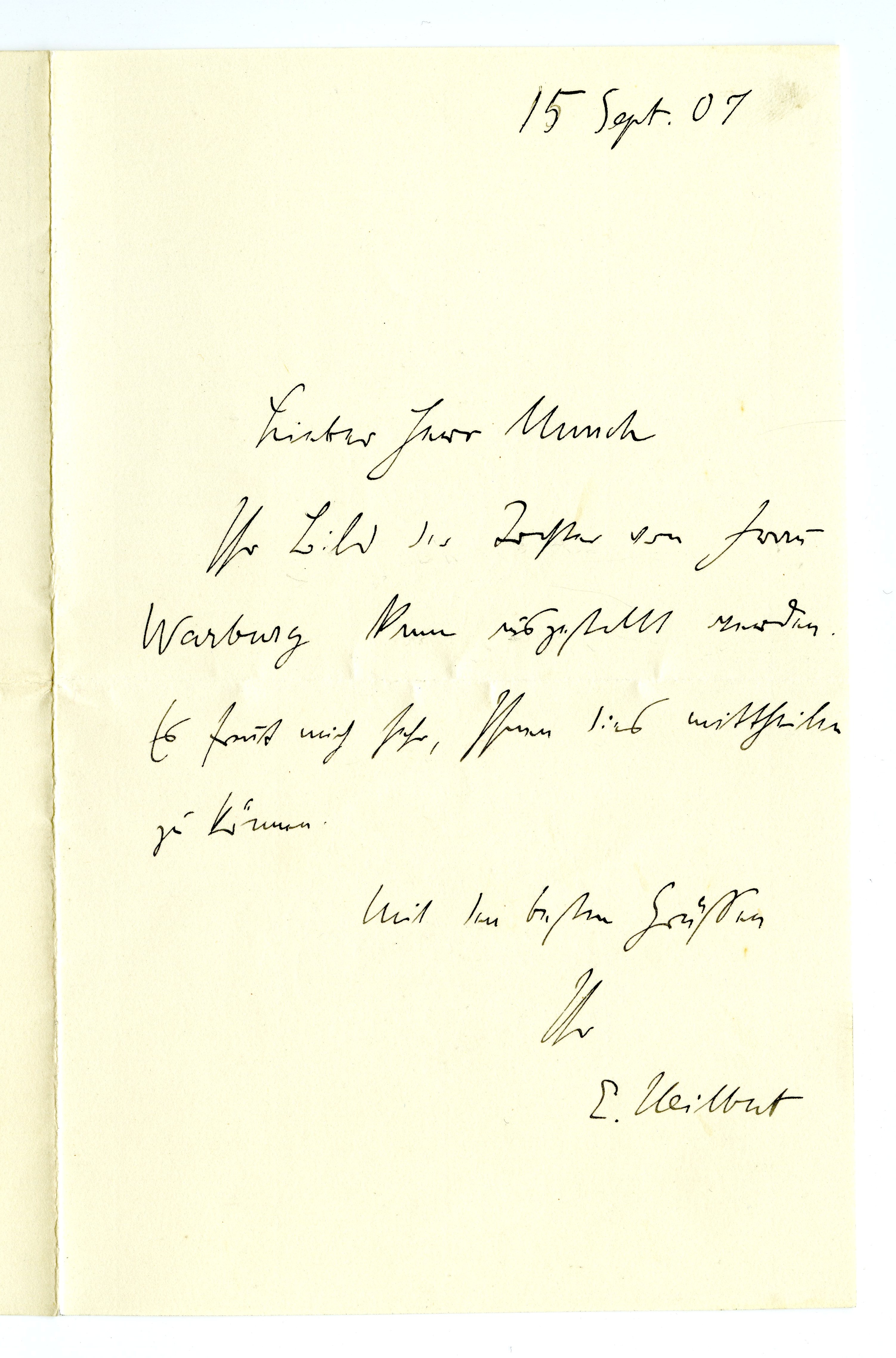 MM K 2482, Munchmuseet. Datert 15.09.1907. Brev fra Emil Heilbut.