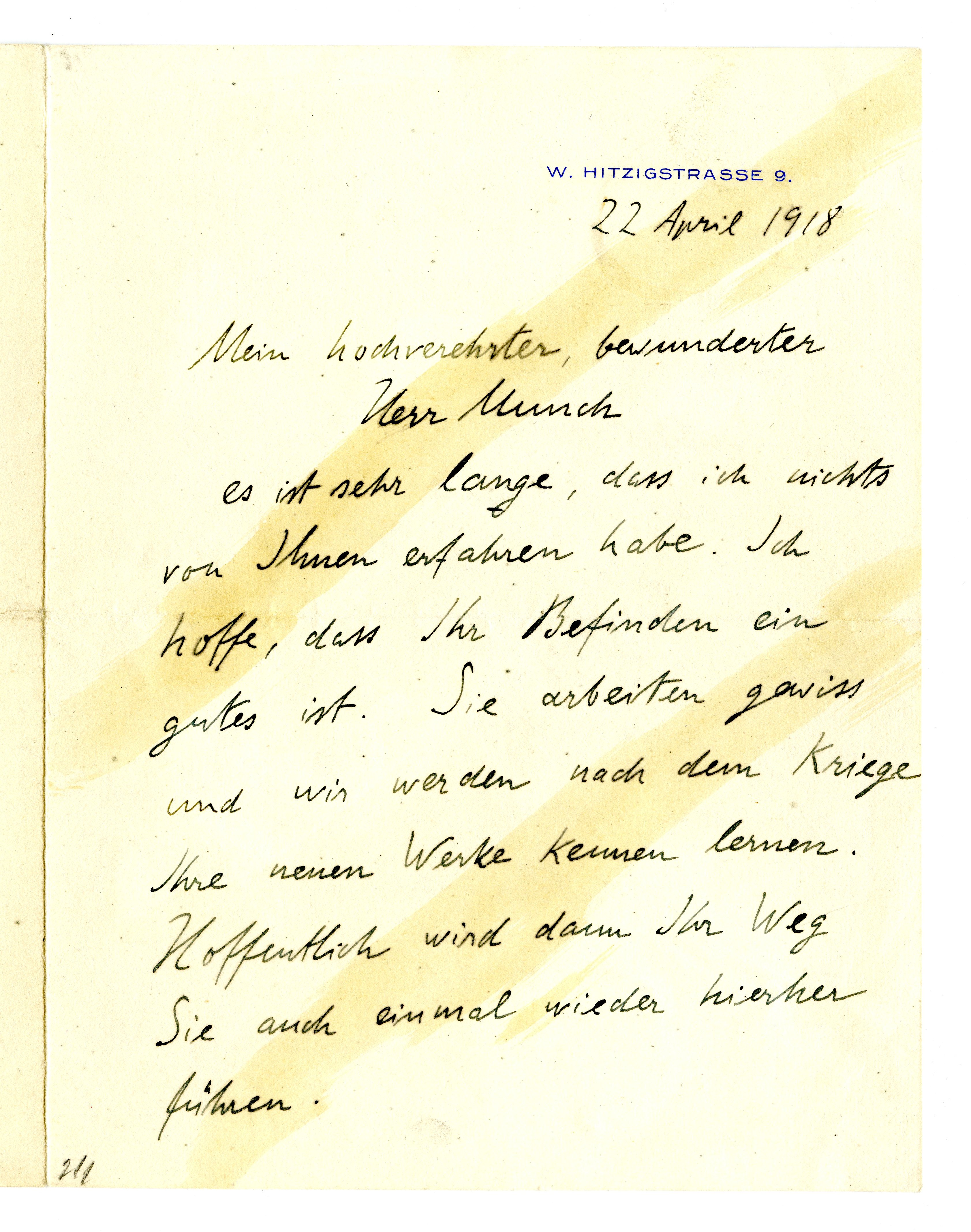 MM K 2484, Munchmuseet. Datert 22.04.1918. Brev fra Emil Heilbut.