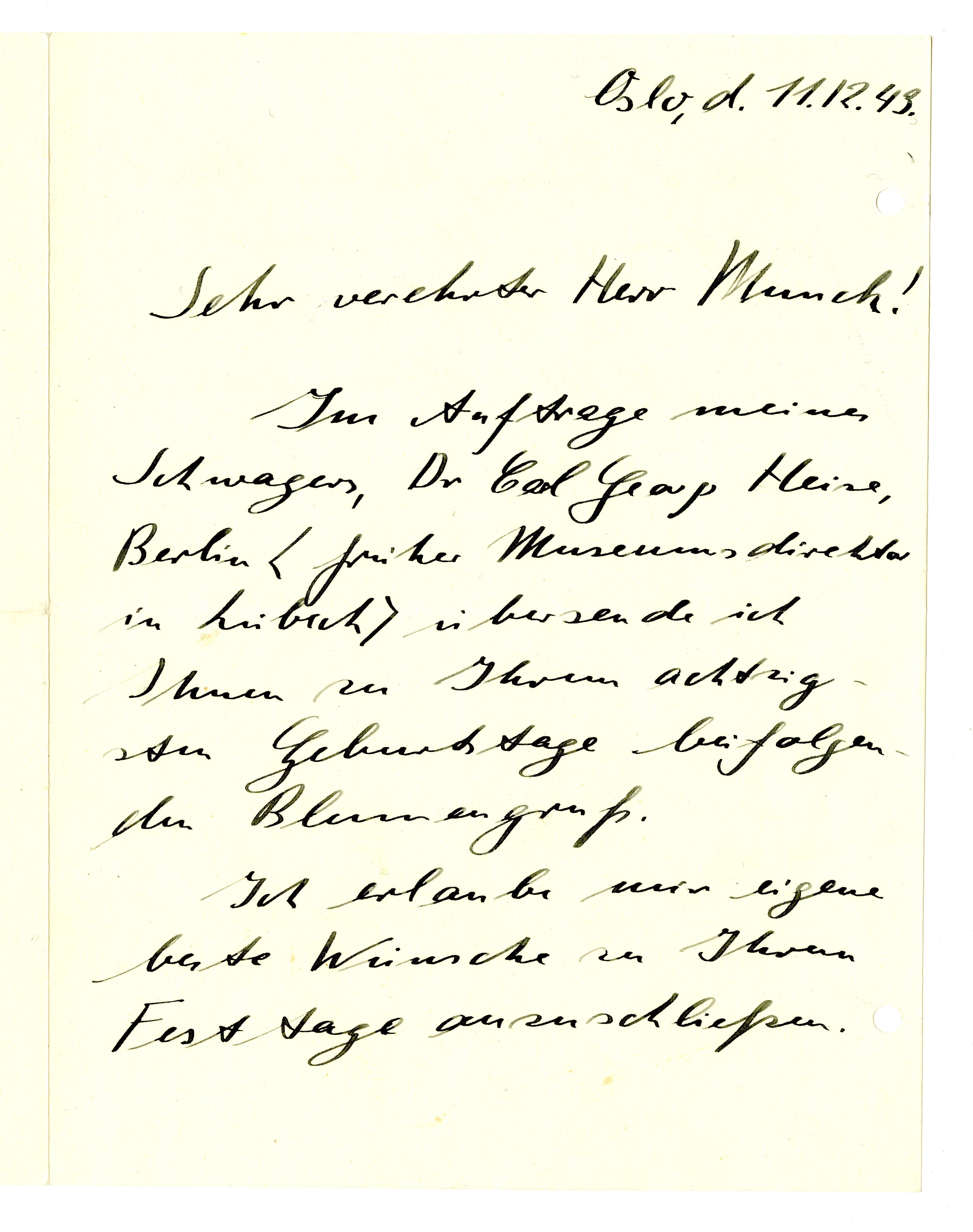 MM K 2486, Munchmuseet. Datert 11.12.1943. Brev fra Carl Georg Heise, H. M. Neumann.