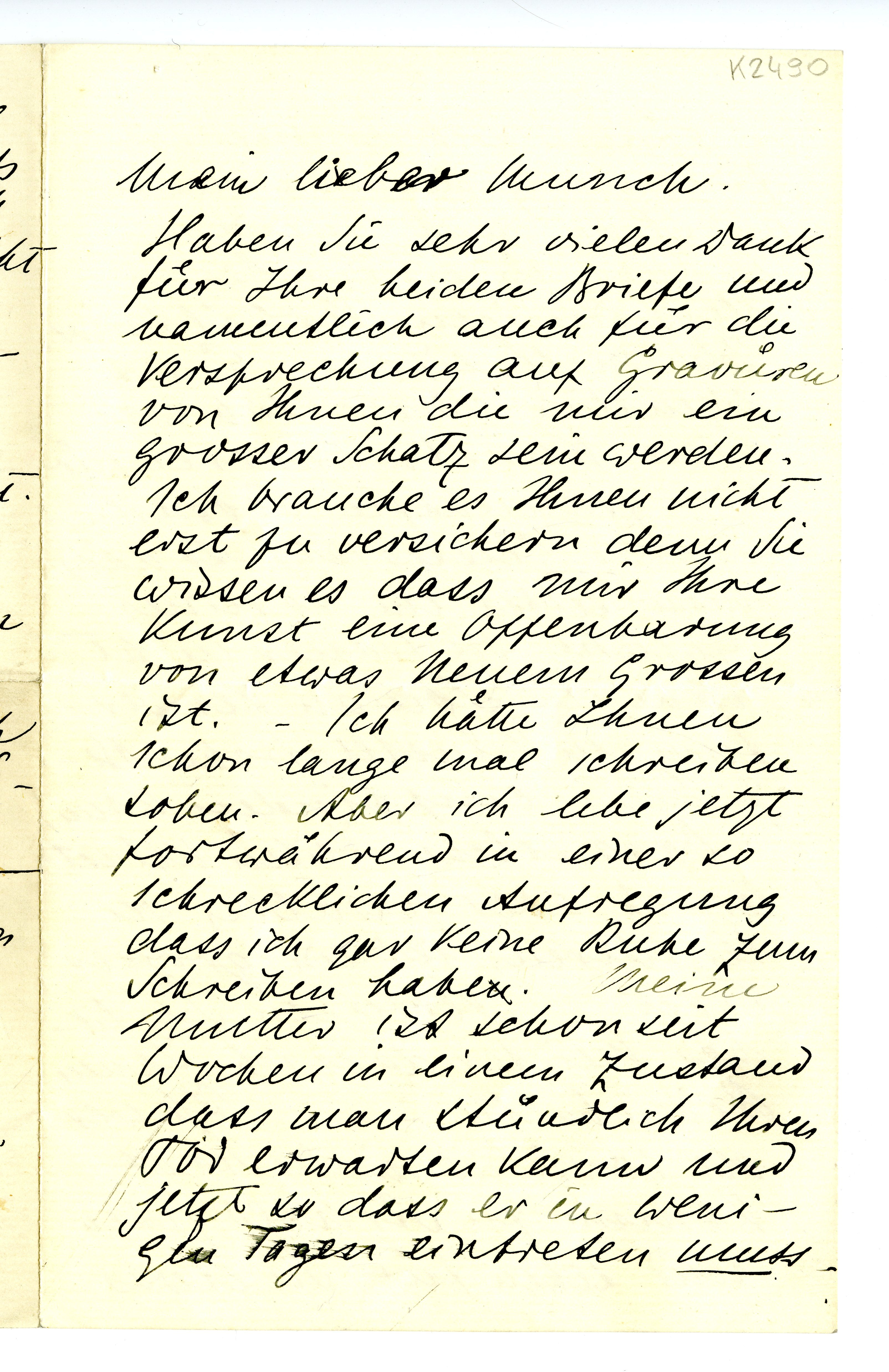 MM K 2490, Munchmuseet. Datert [??].06.1897. Brev fra Otto Hettner.