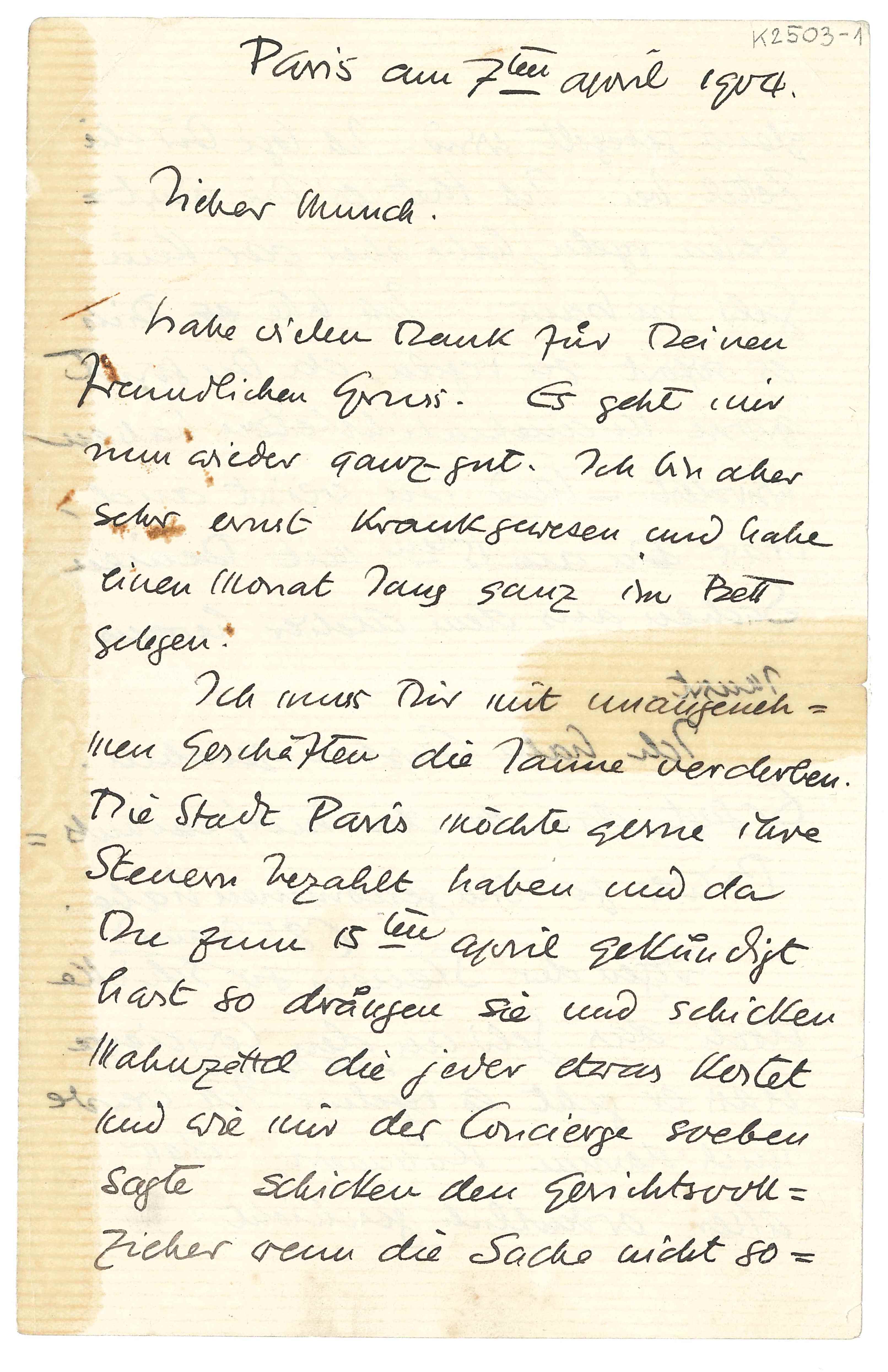 MM K 2503, Munchmuseet. Datert 07.04.1904. Brev fra Otto Hettner.