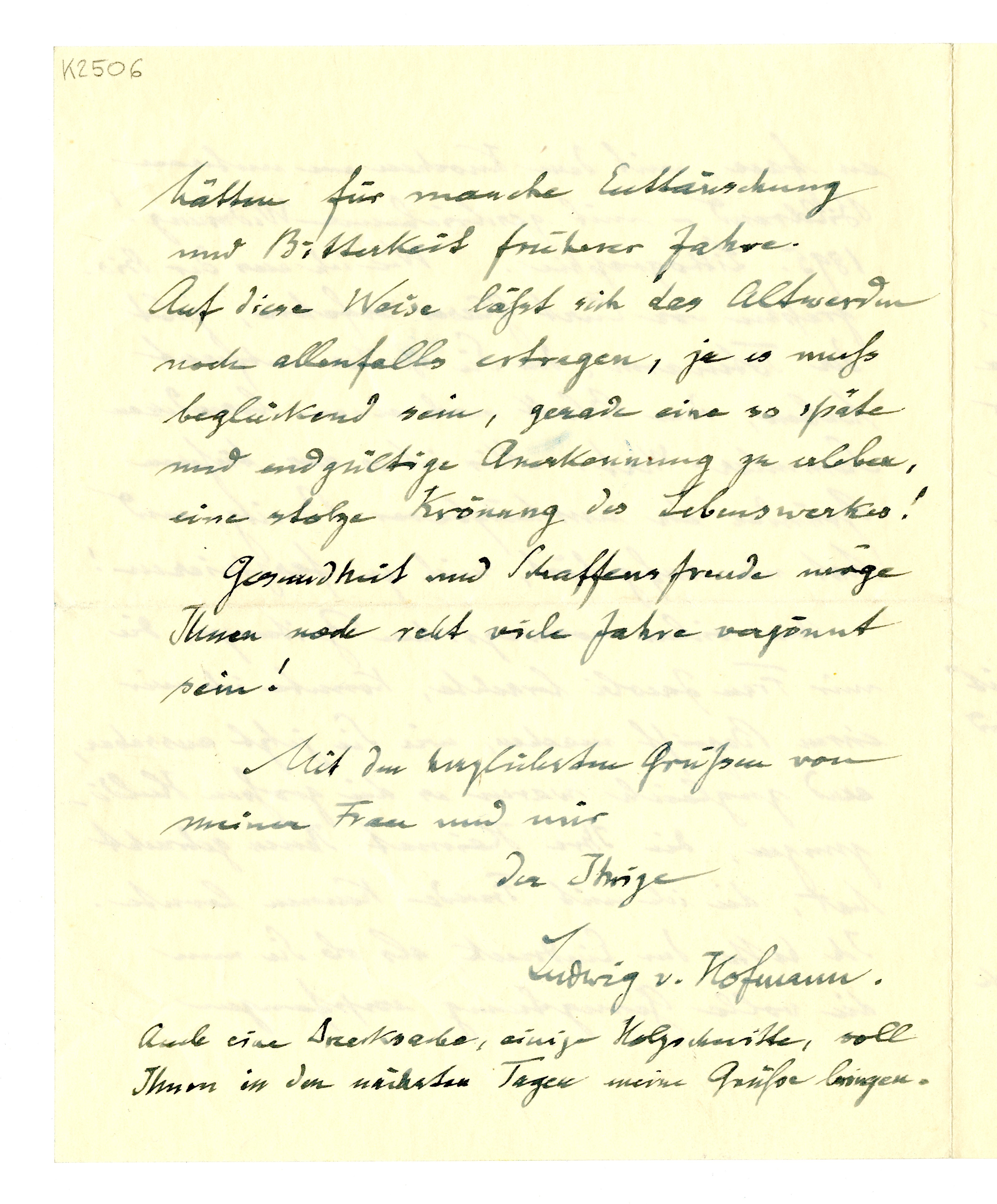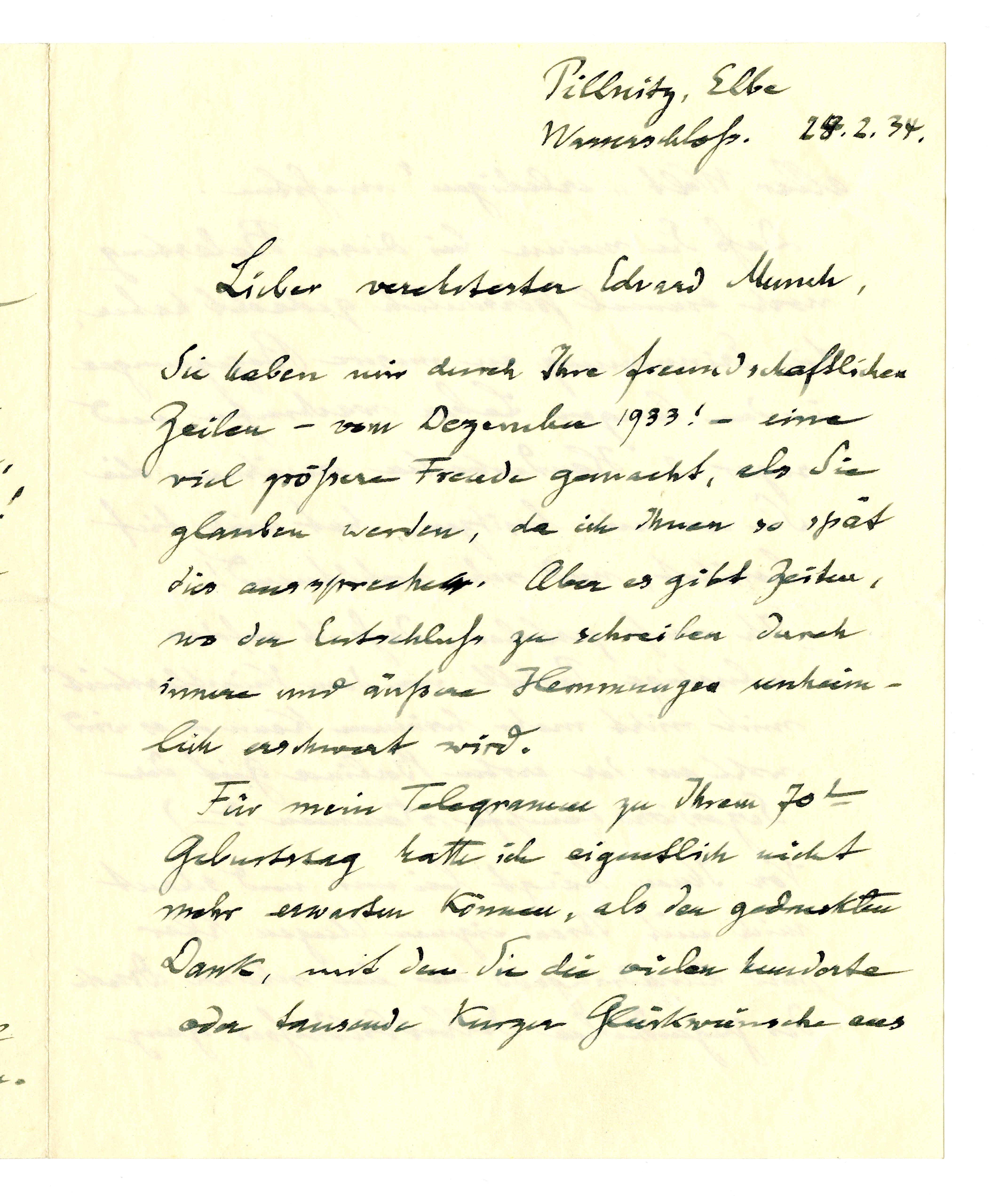 MM K 2506, Munchmuseet. Datert 24.02.1934. Brev fra Ludwig von Hofmann.
